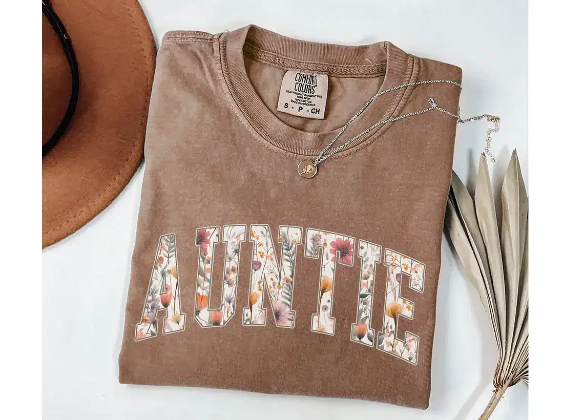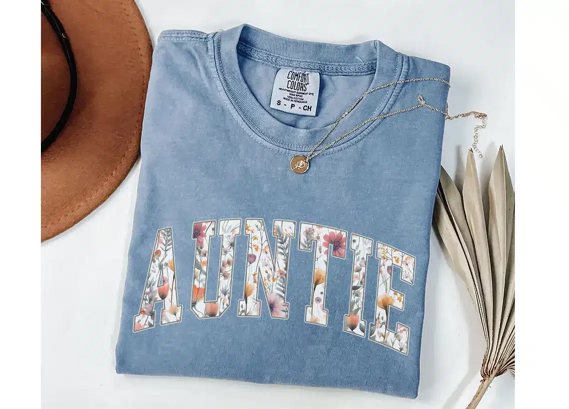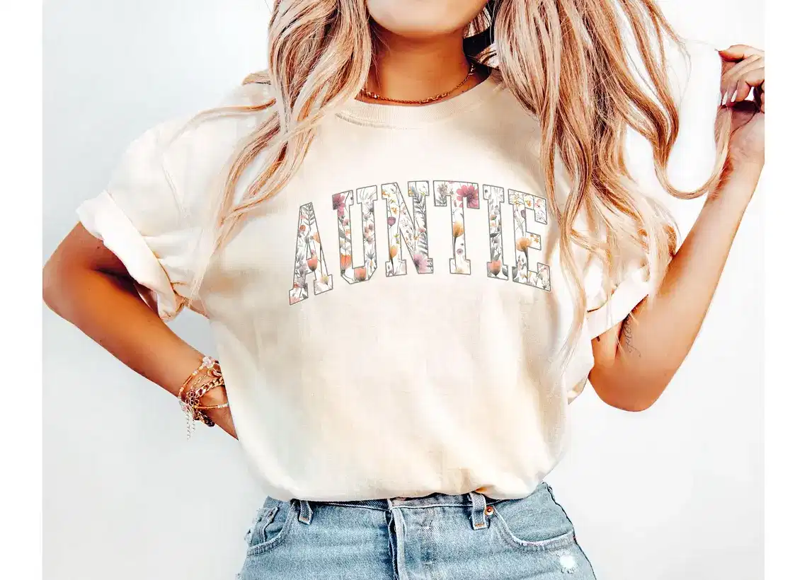 Auntie T-Shirt, Aunt Shirt, Floral Auntie, New Aunt Gift, Pregnancy Announcement, Gift for Aunt, Pregnancy Reveal to Aunt