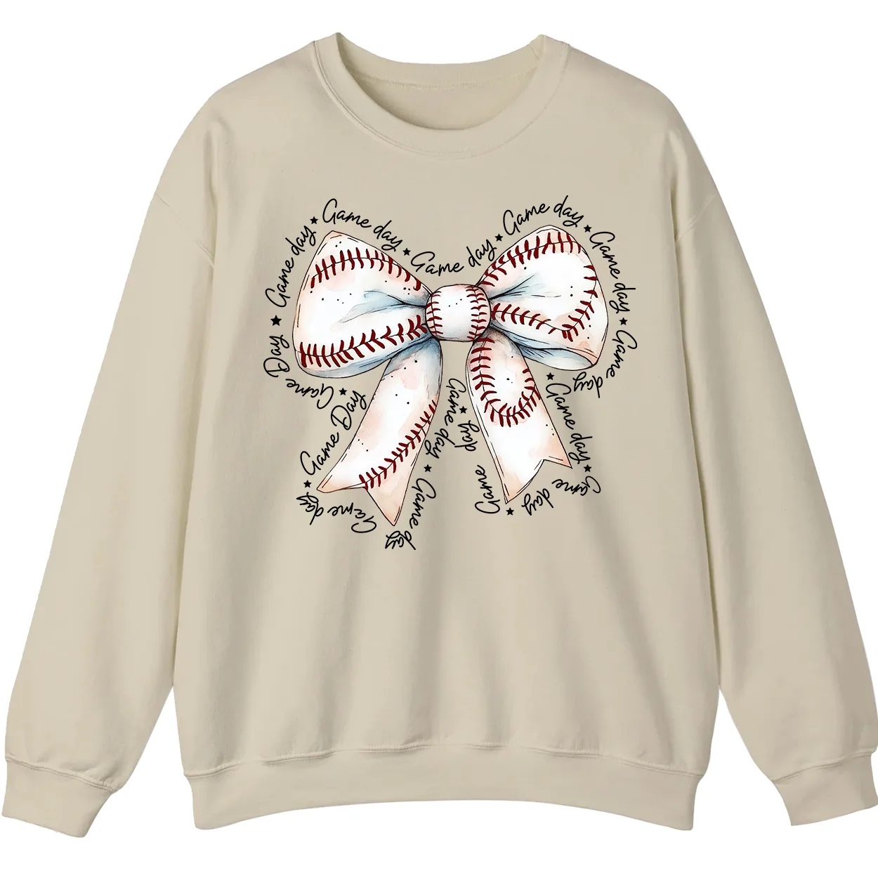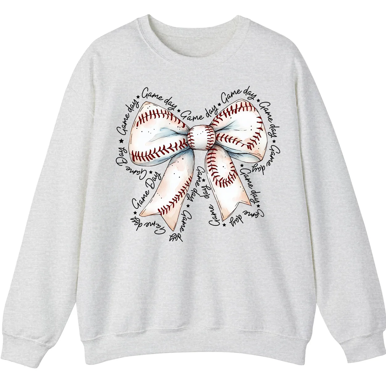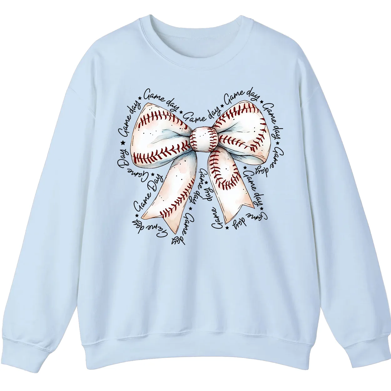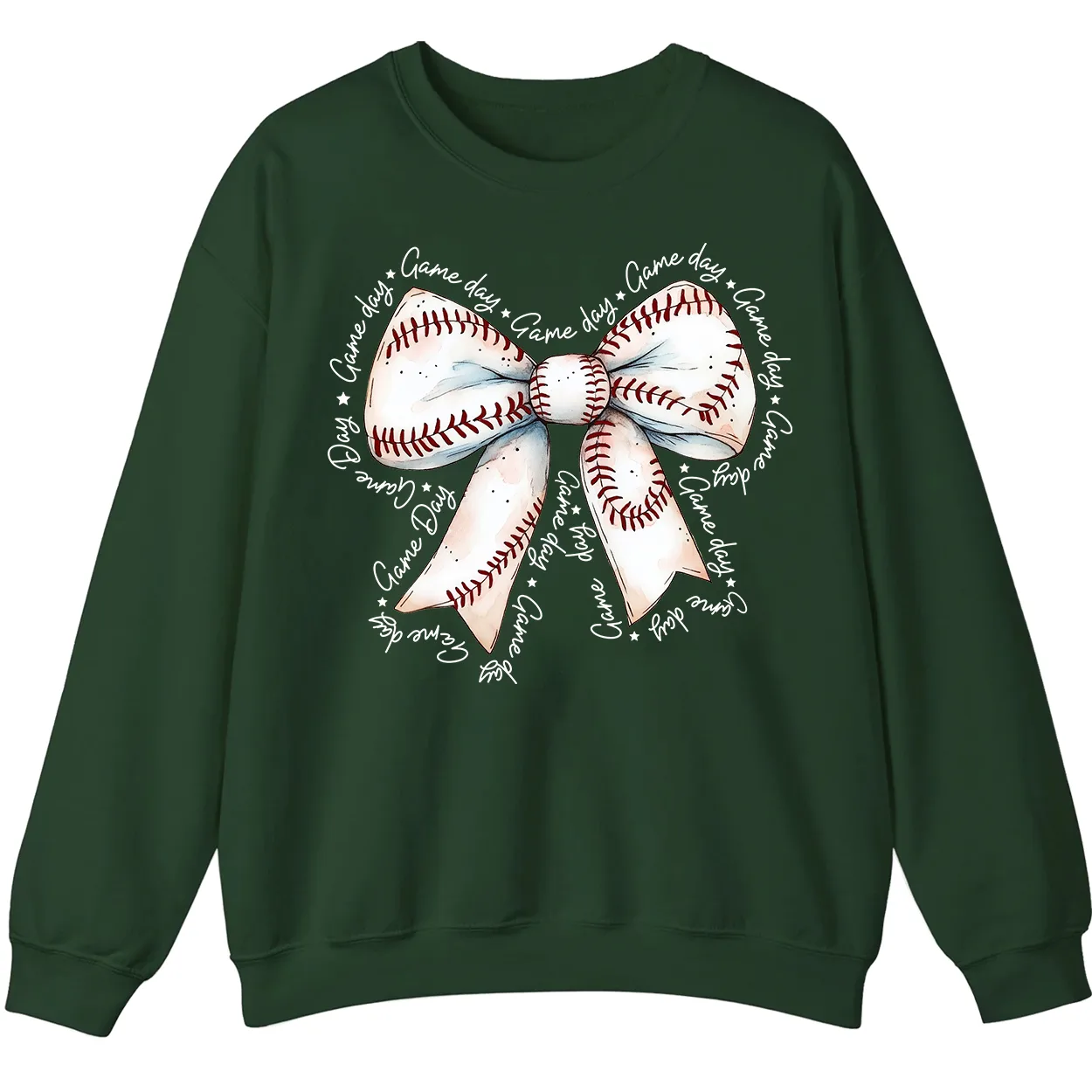 Baseball Bow Game Day Sweatshirt, Sports Lover Crewneck, Watercolor Softball Bow Pullover, Cute Game Day Women’s Shirt