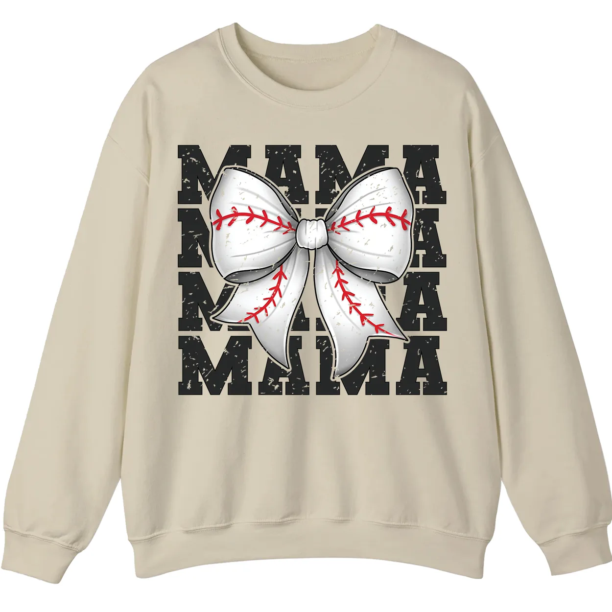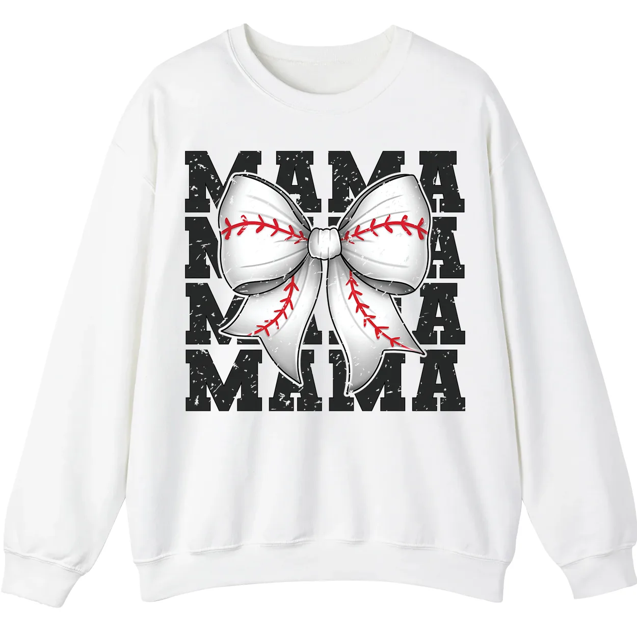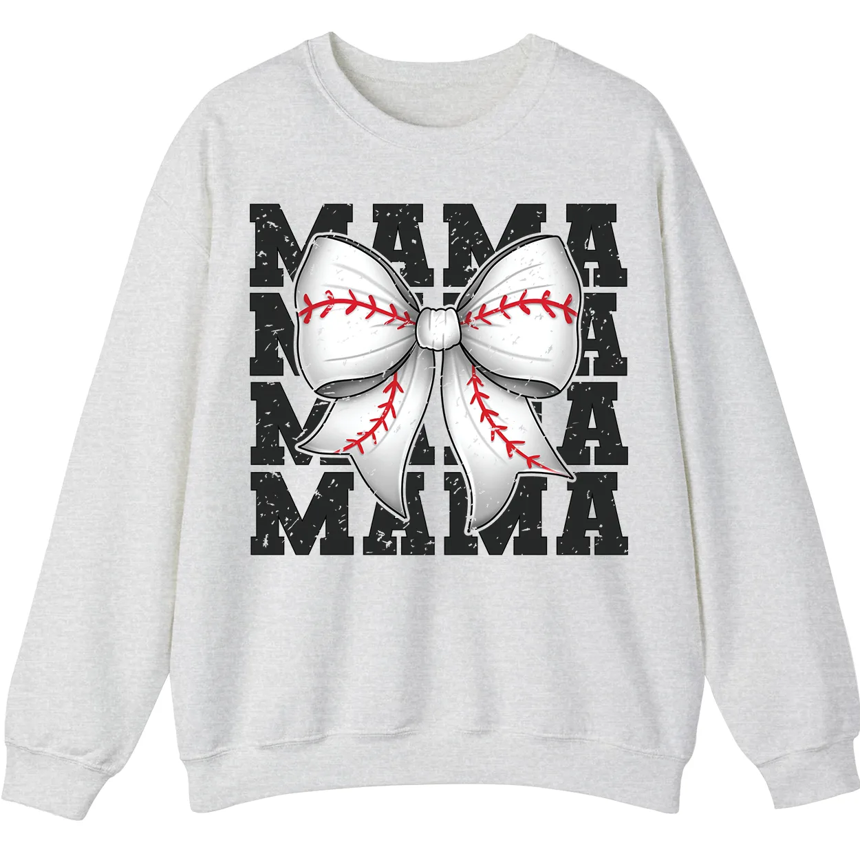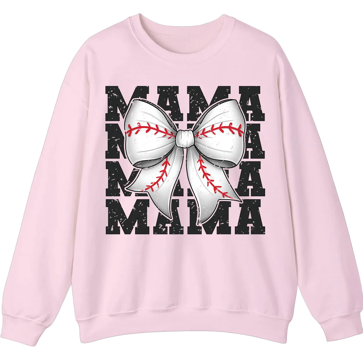 Baseball Bow Mama Repeat Graphic Crewneck Sweatshirt
