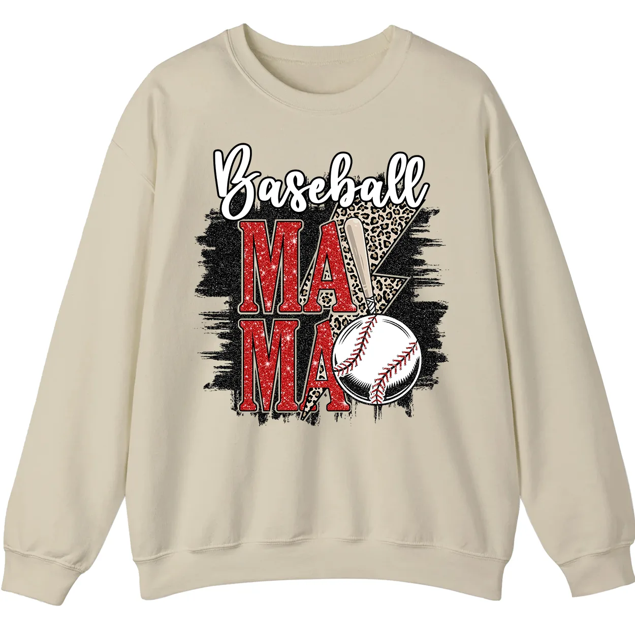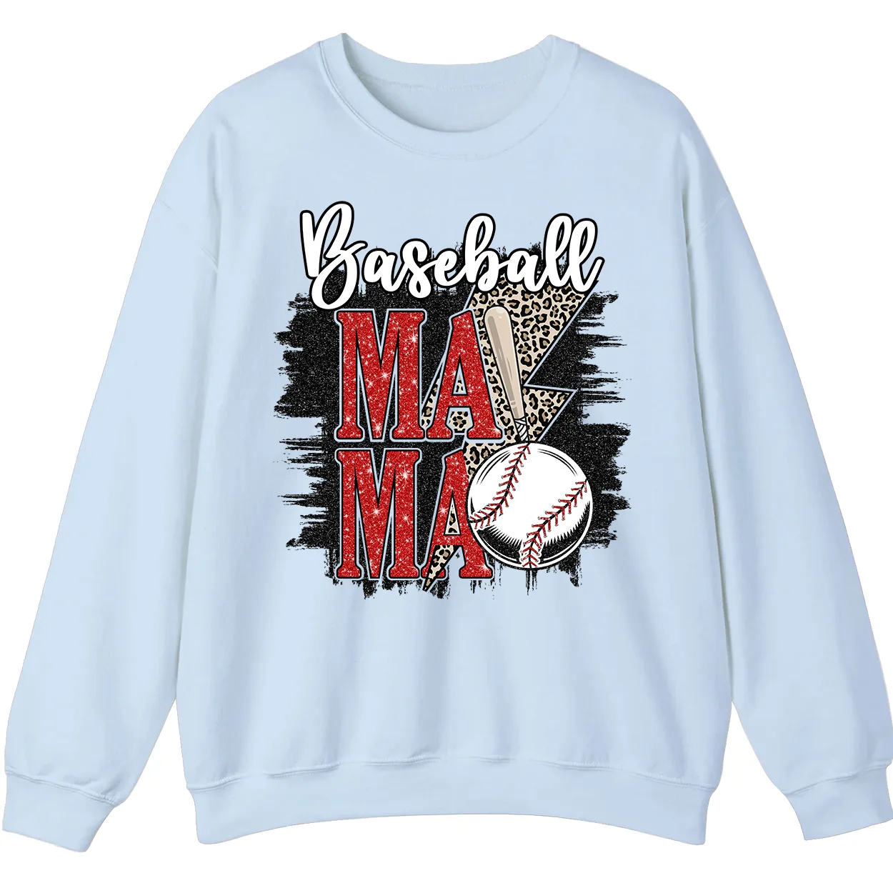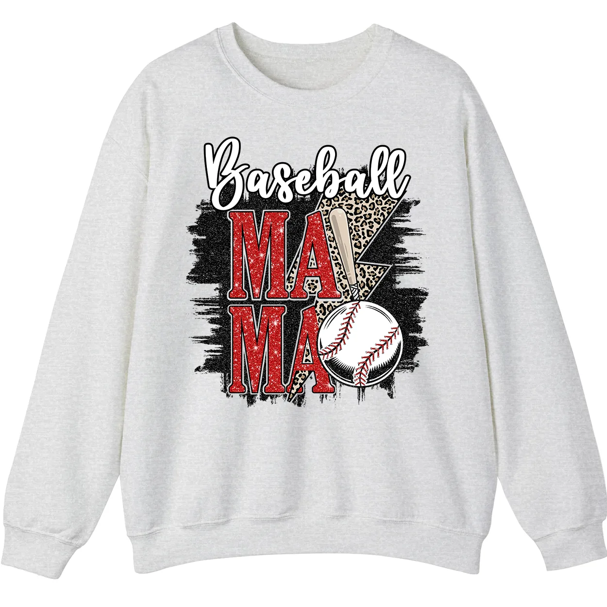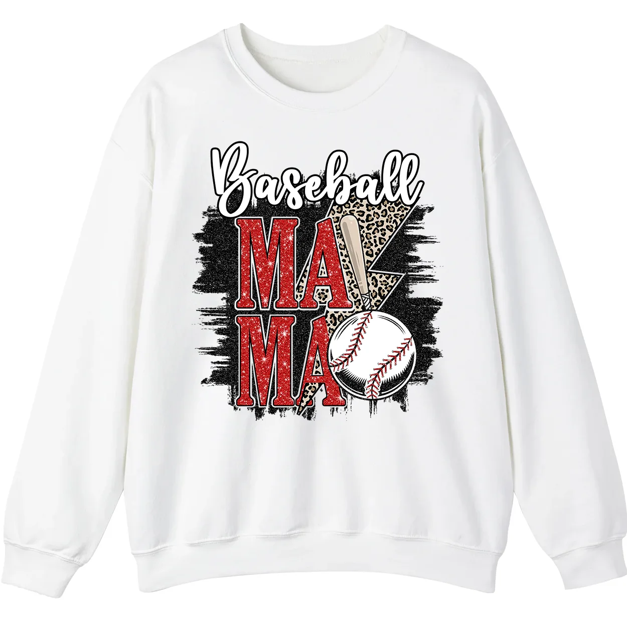 Baseball Mama Red Glitter Leopard Lightning Sweatshirt, Game Day Sports Mom Pullover, Distressed Grunge Design Crewneck