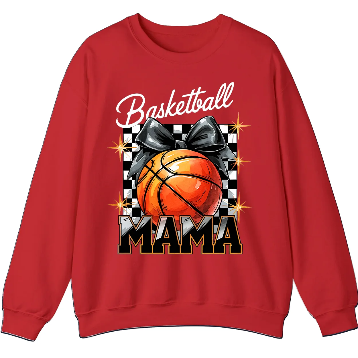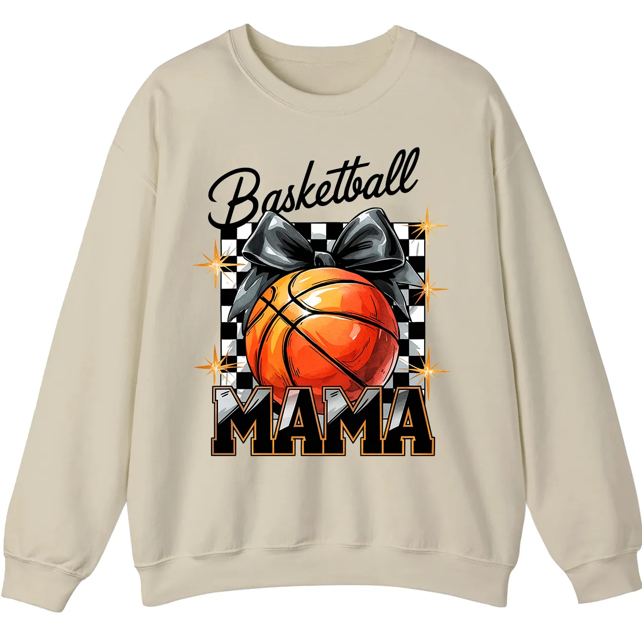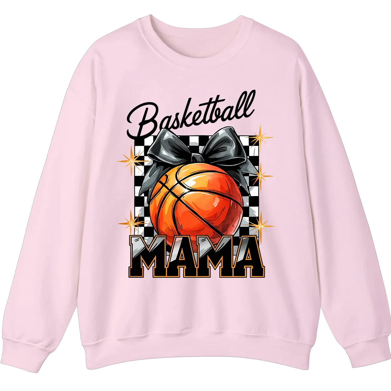 Basketball Mama Checkerboard Bow Crewneck Sweatshirt