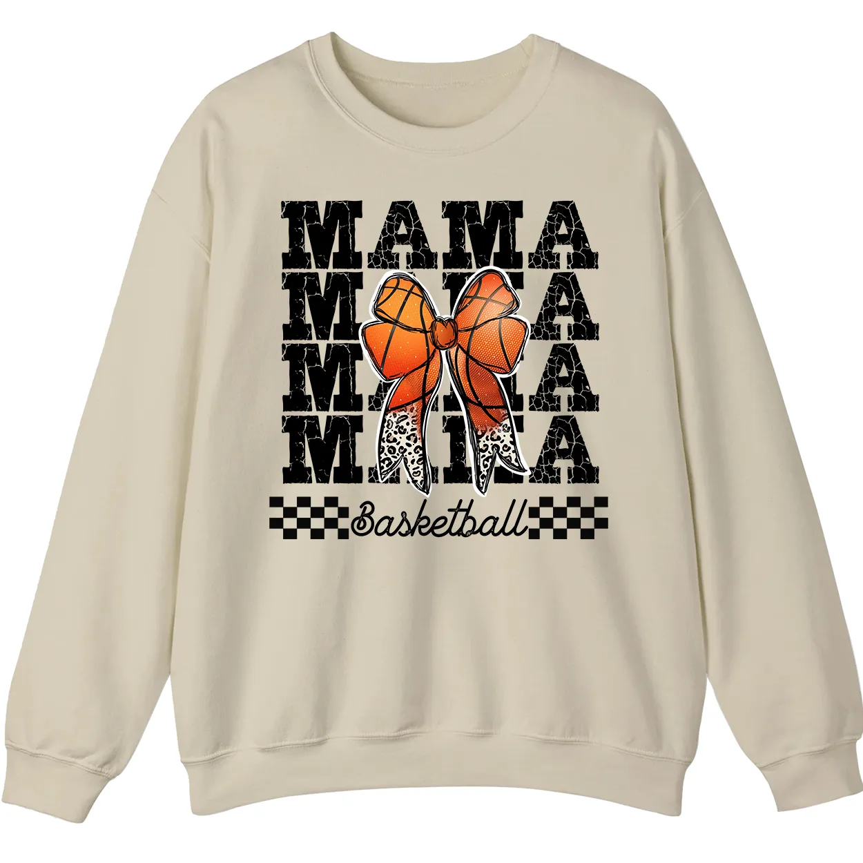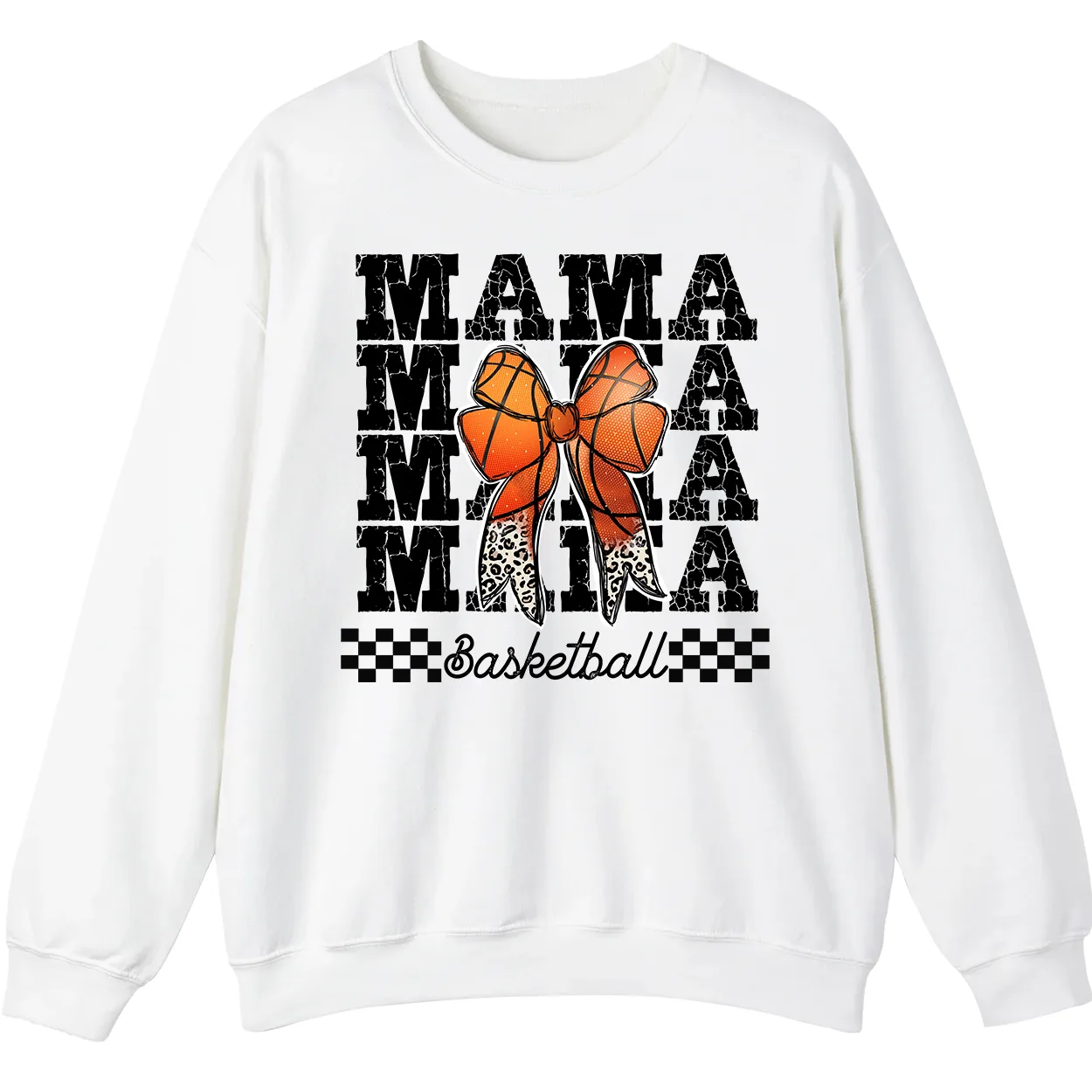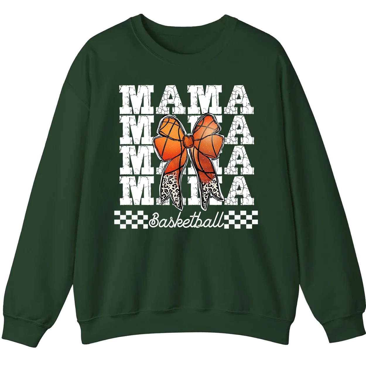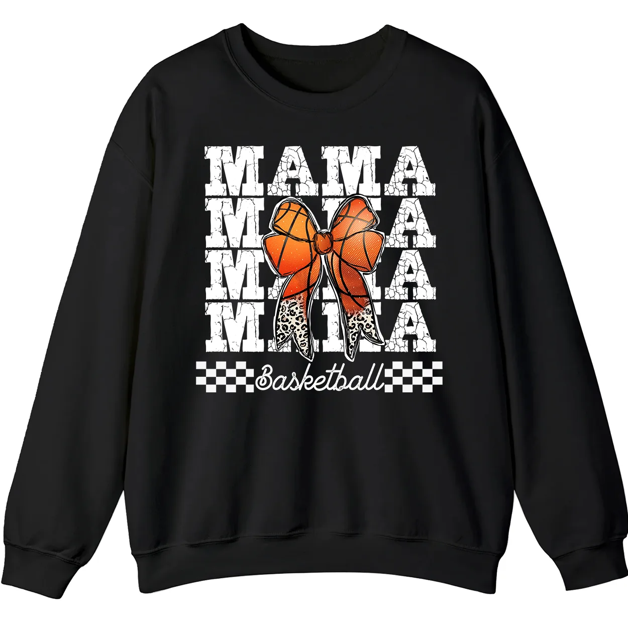 Basketball Mama Leopard Print Bow Crewneck Sweatshirt