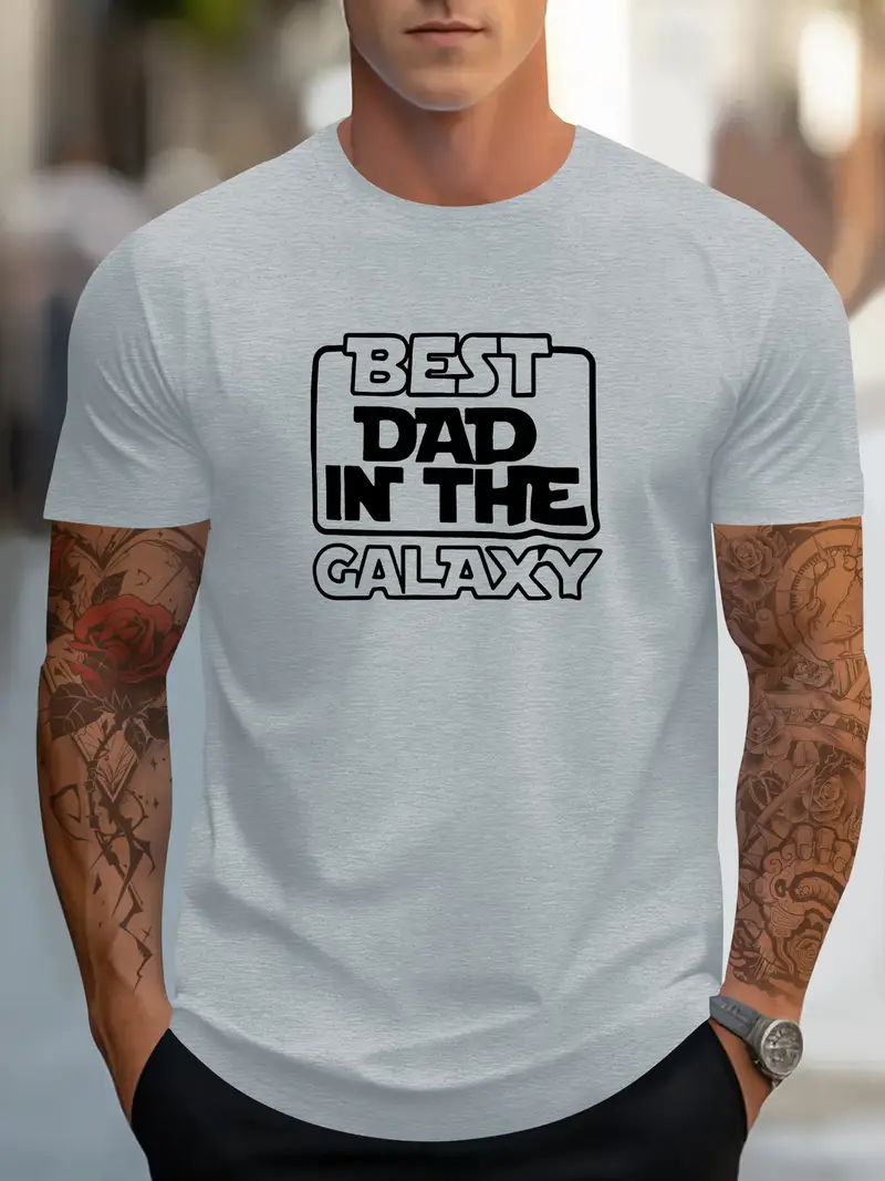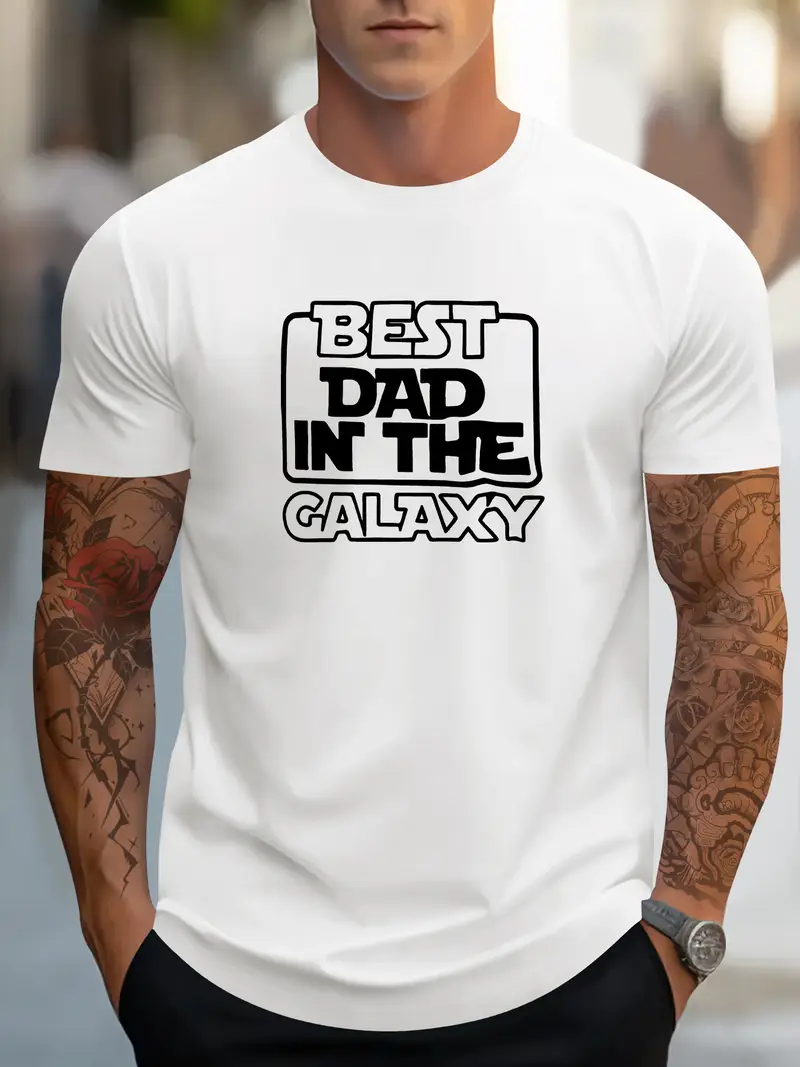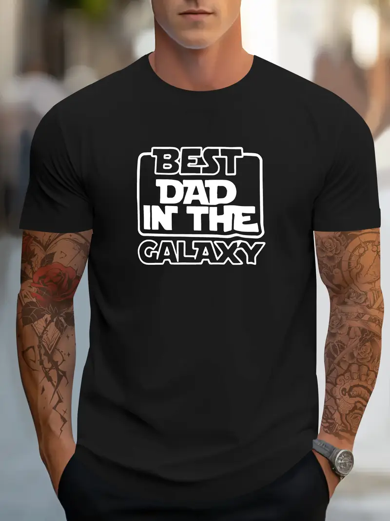 Best Dad In The Galaxy Printed, Men’s Short Sleeved T-shirts, Fashion Comfortable Casual Tops For Summer & Spring Daily Wear