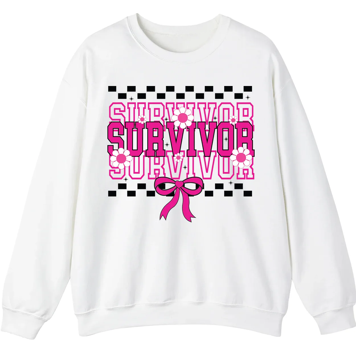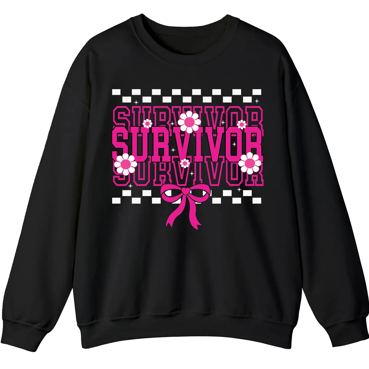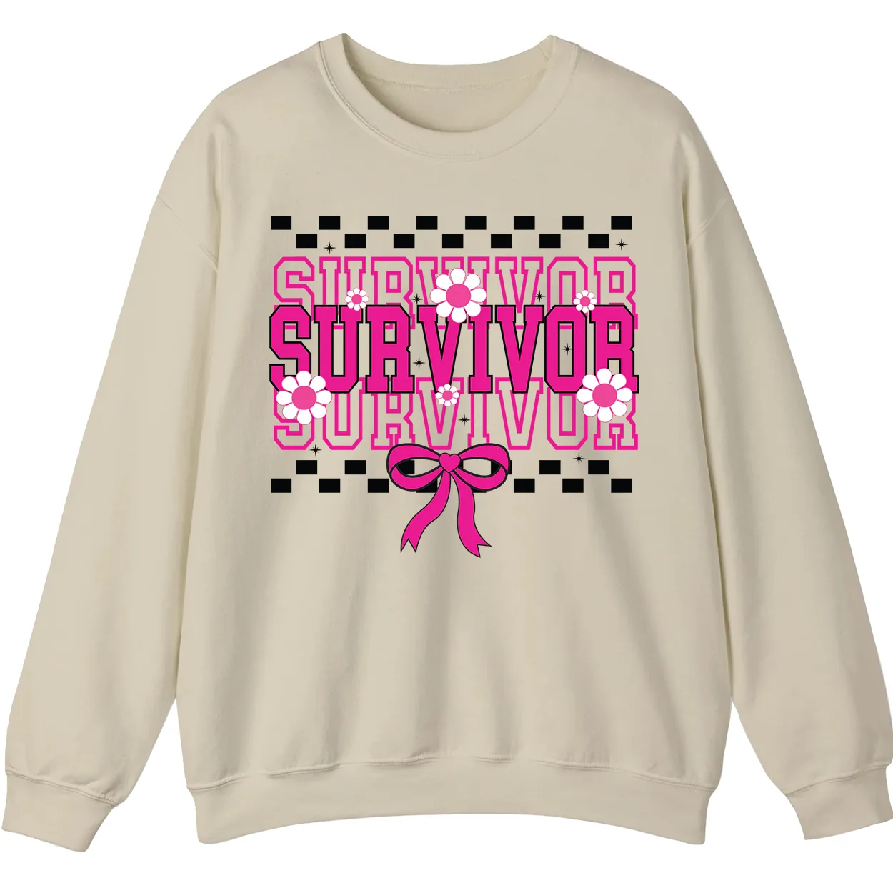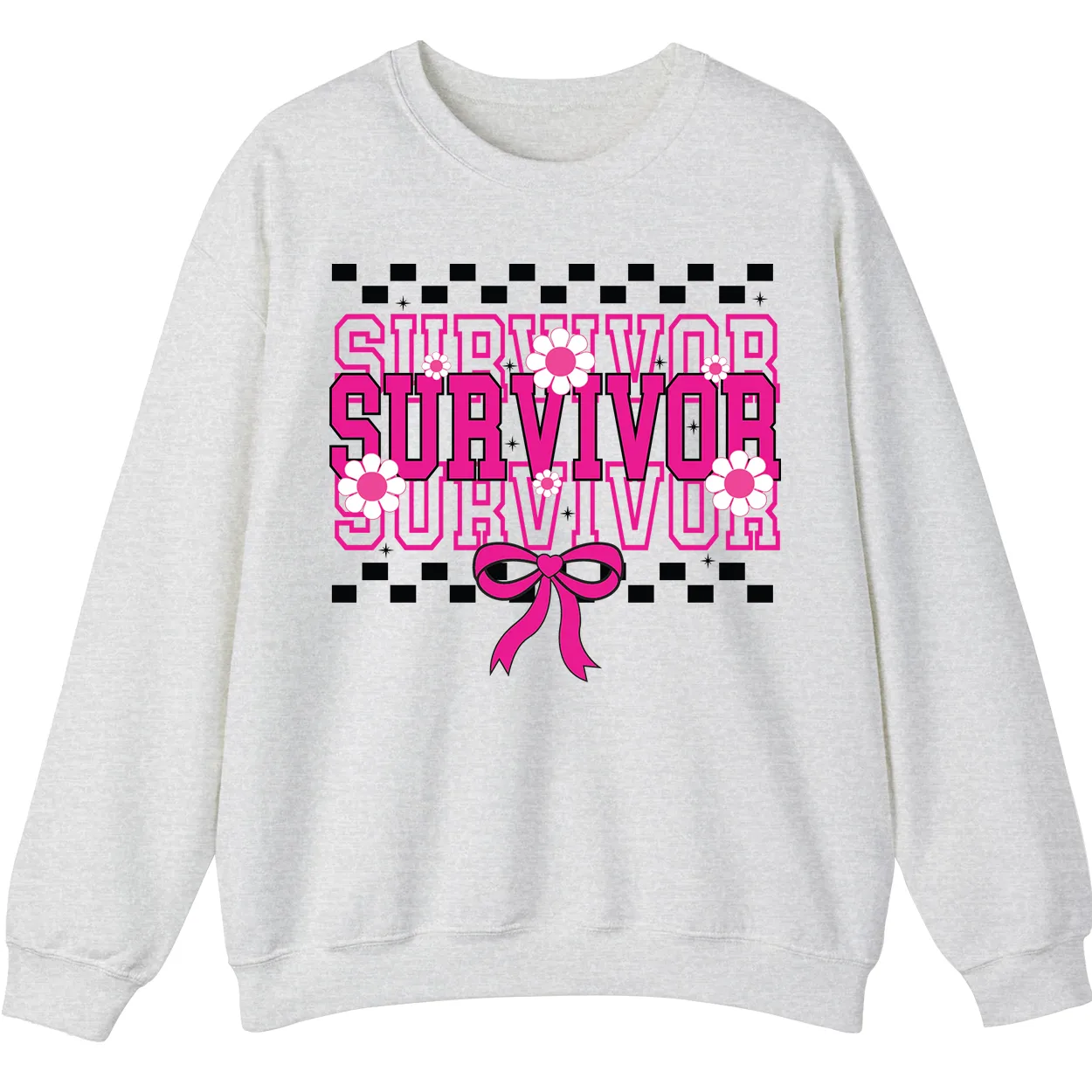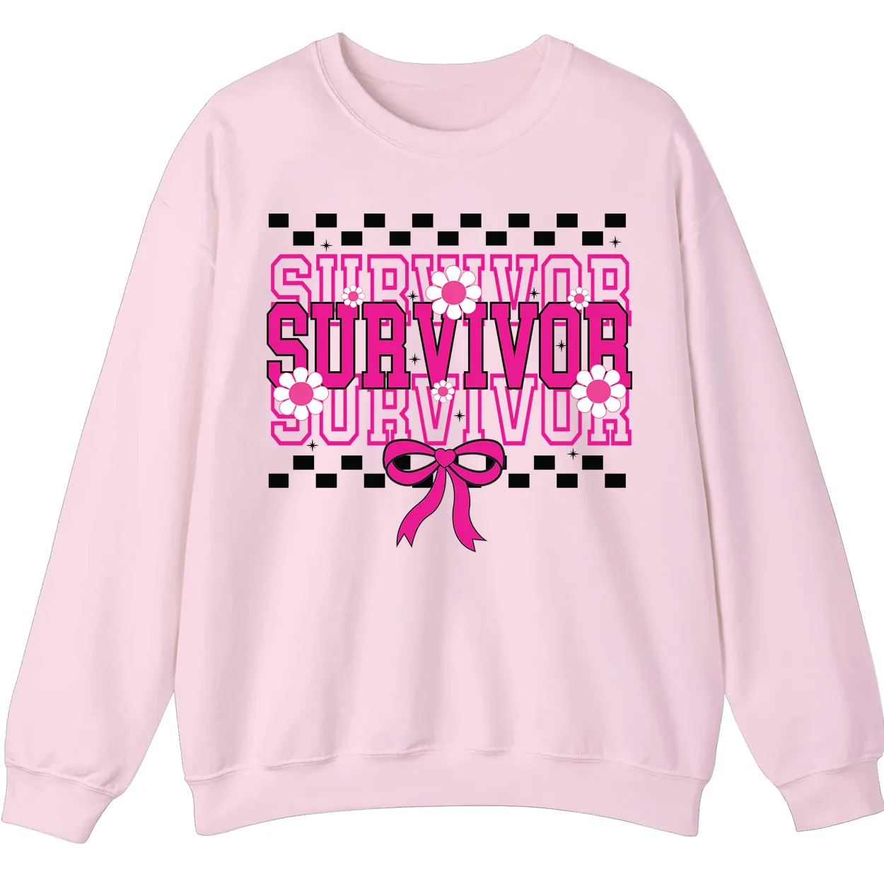 Breast Cancer Survivor Awareness Pink Ribbon Checkered Crewneck