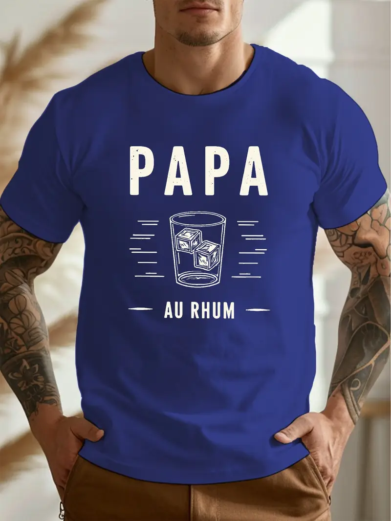 Casual Crew Neck Short Sleeve T-Shirt – Papa Au Rhum Rum Daddy Print Graphic Tee, Lightweight Summer Top with Geometric Design, Relaxed Fit T-Shirt