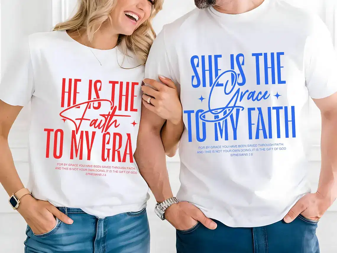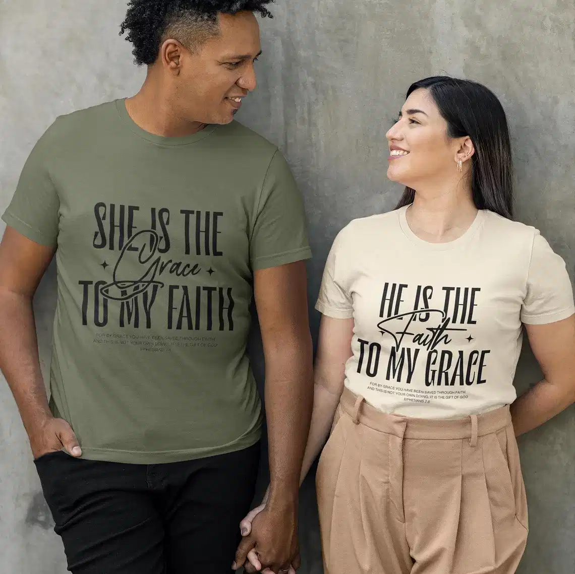Christian Couple T-shirt, Matching T-shirts for Him & Her, Cozy Couples Apparel, Gift for Christian Partners, Gospel Shirt