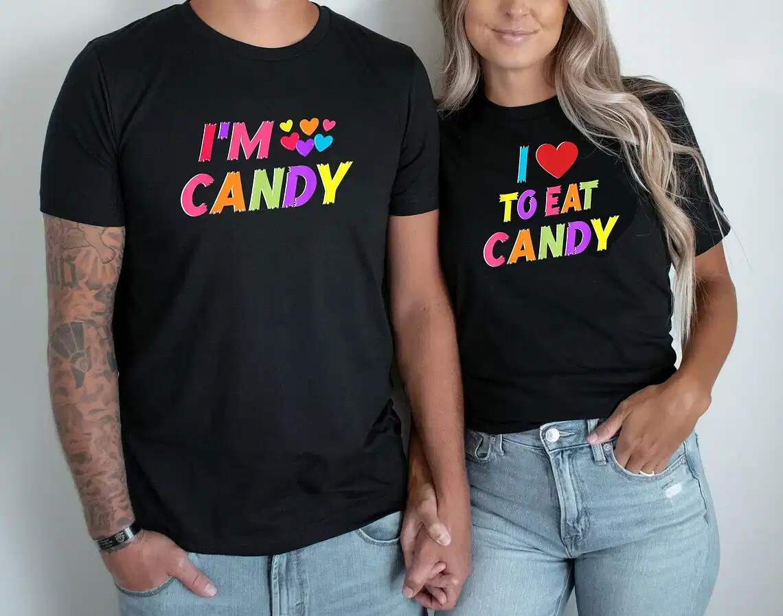 Couple Matching T-Shirt With I Candy and I To Eat Candy Print Design, The Best Family Matching Gift