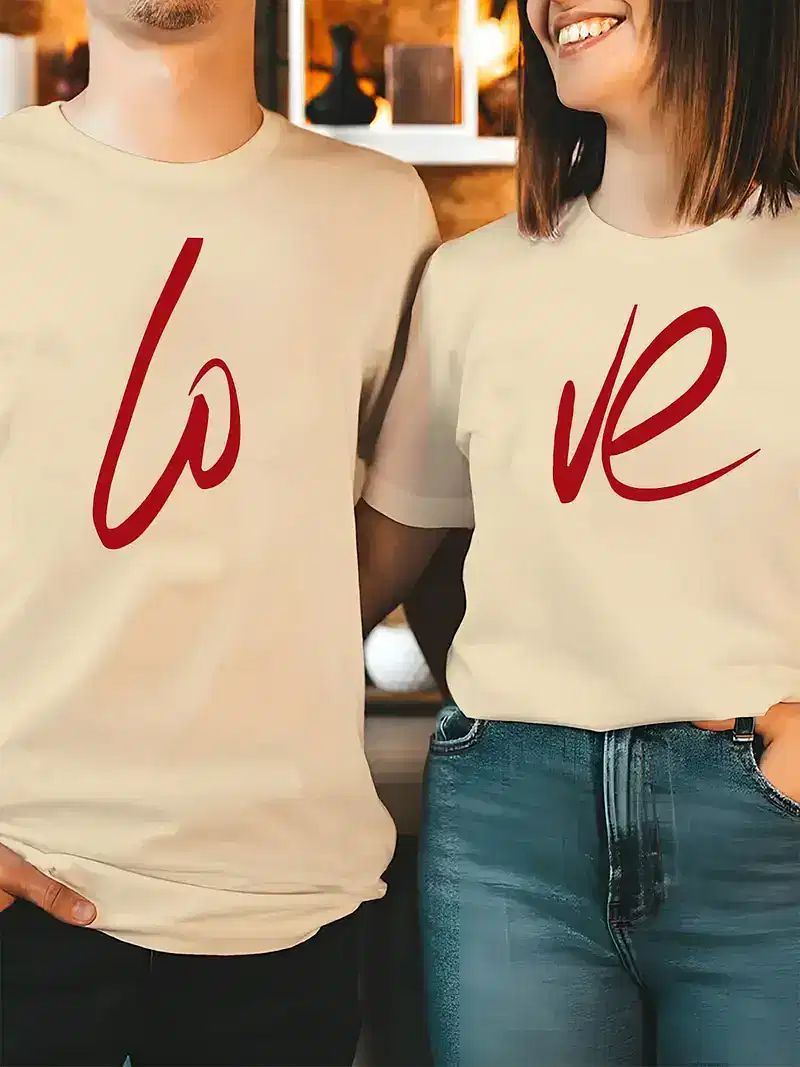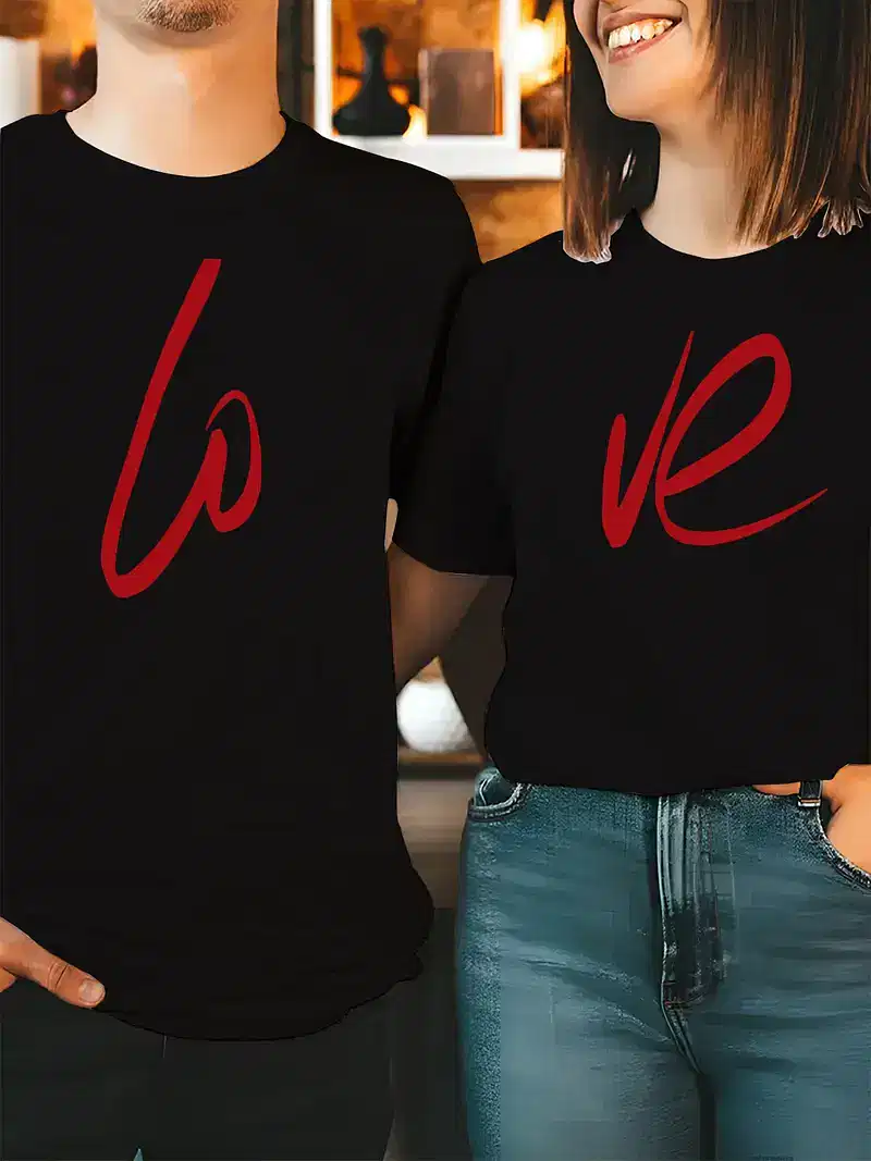 Couple Matching T-Shirt With Love Print Design For Summer, Father’s Day T-Shirt, The Best Family Matching Gift