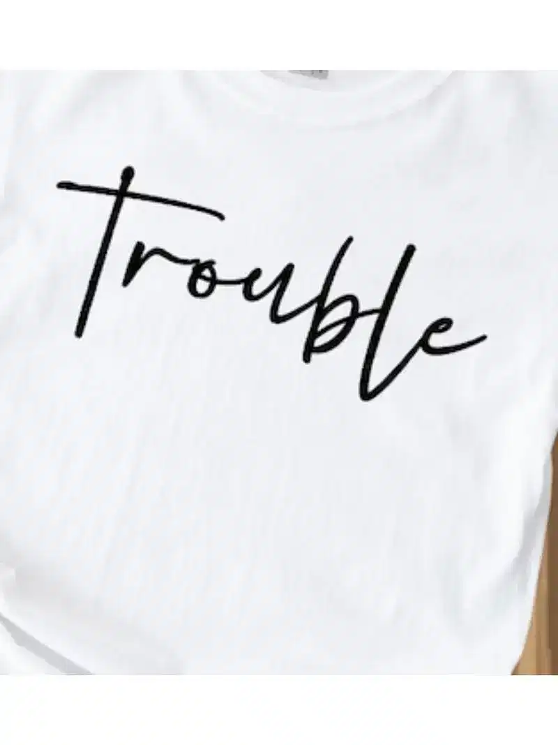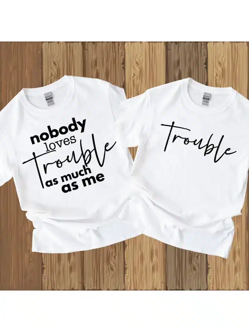 Couple Matching T-Shirt With Nobody Loves Trouble As Much As Me and Trouble Print Design, The Best Family Matching Gift