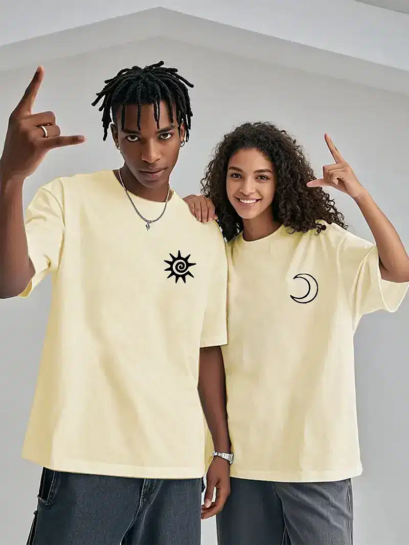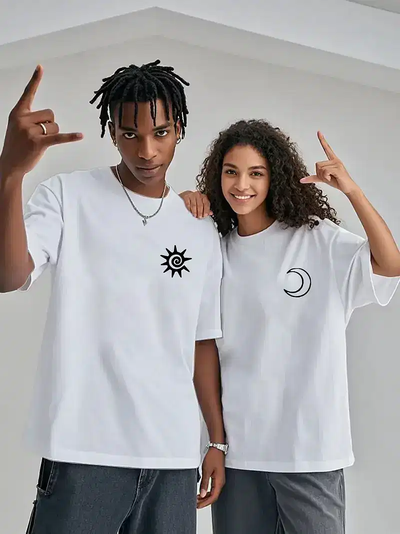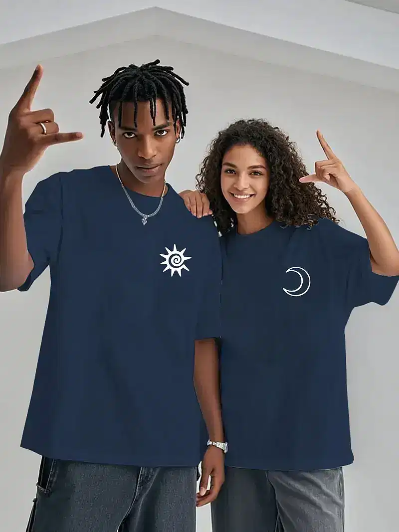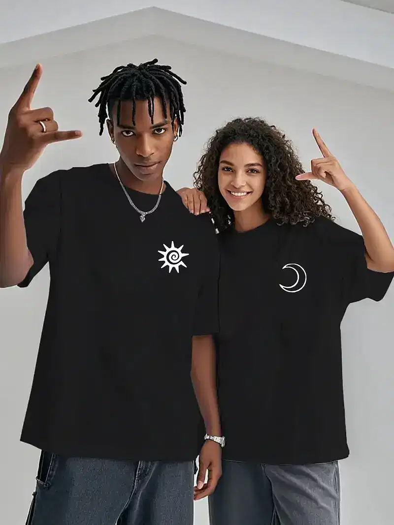 Couple Matching T-Shirt With Romantic Sun and Moon Print Design, The Best Family Matching Gift