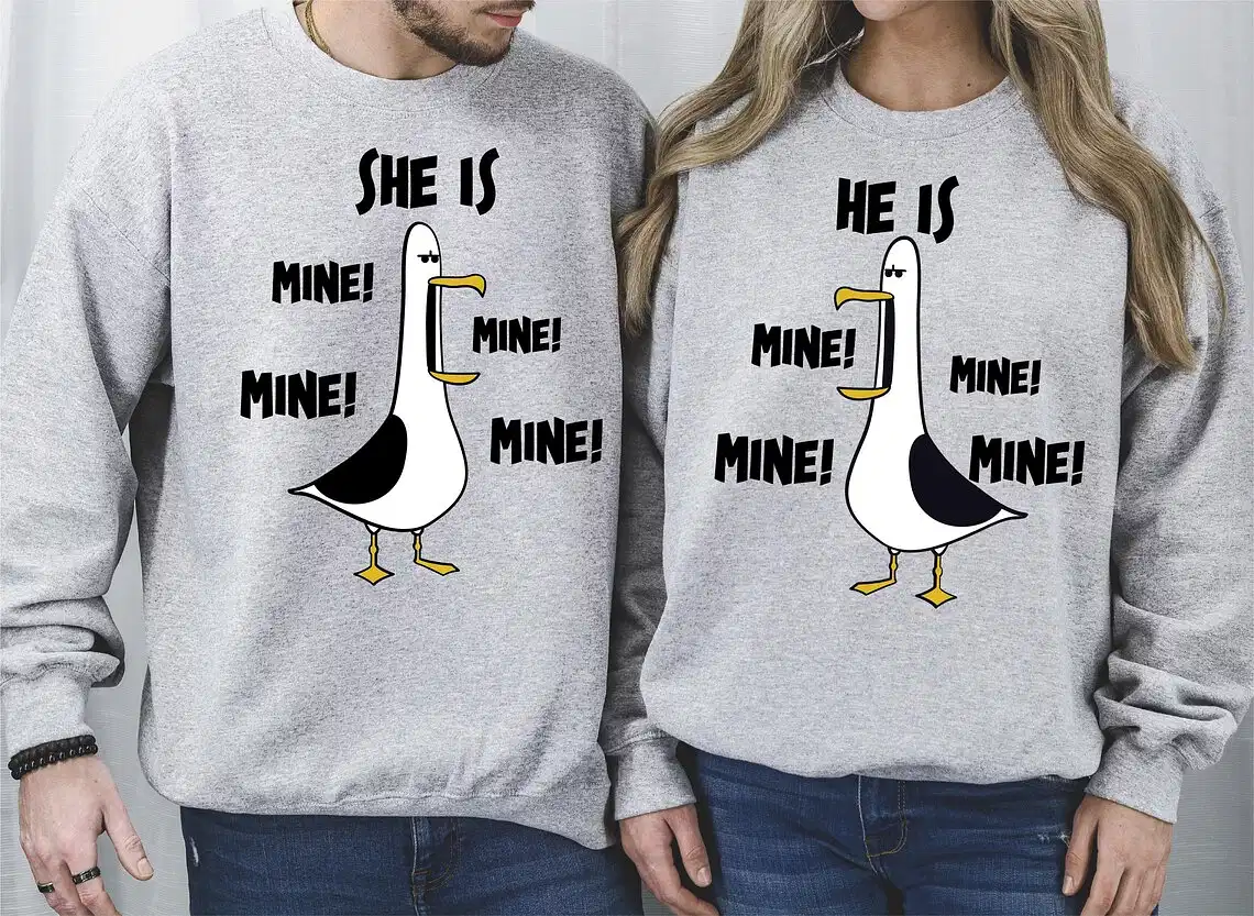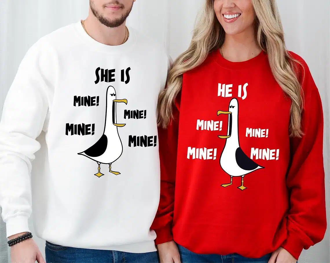 Couples Matching Sweatshirt With She Is Mine and He Is Mine Print Design, The Best Family Matching Gift