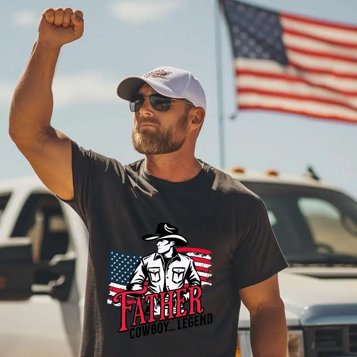 Cowboy Father’s Day T-shirt ? Western Theme Gift for Dads ? 4th of July USA Shirt ? Father’s Day Gift for Men