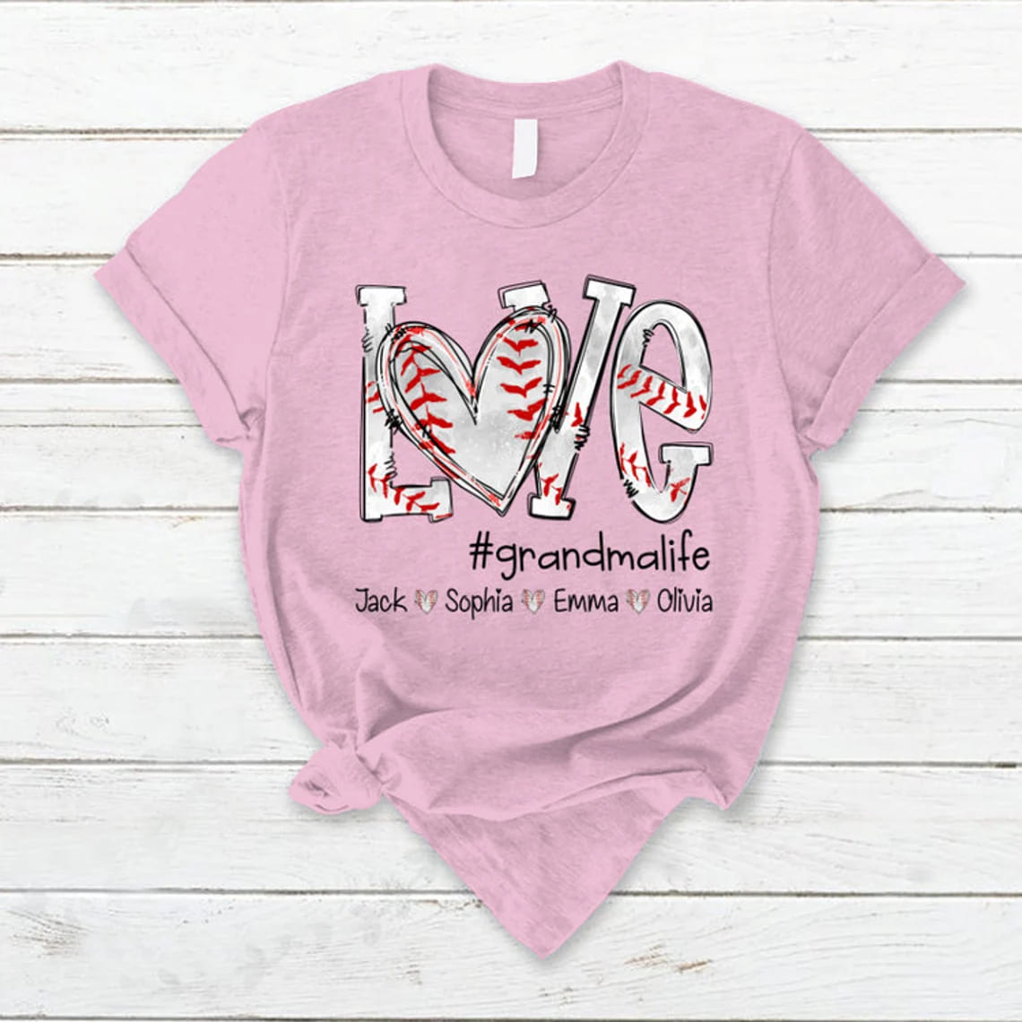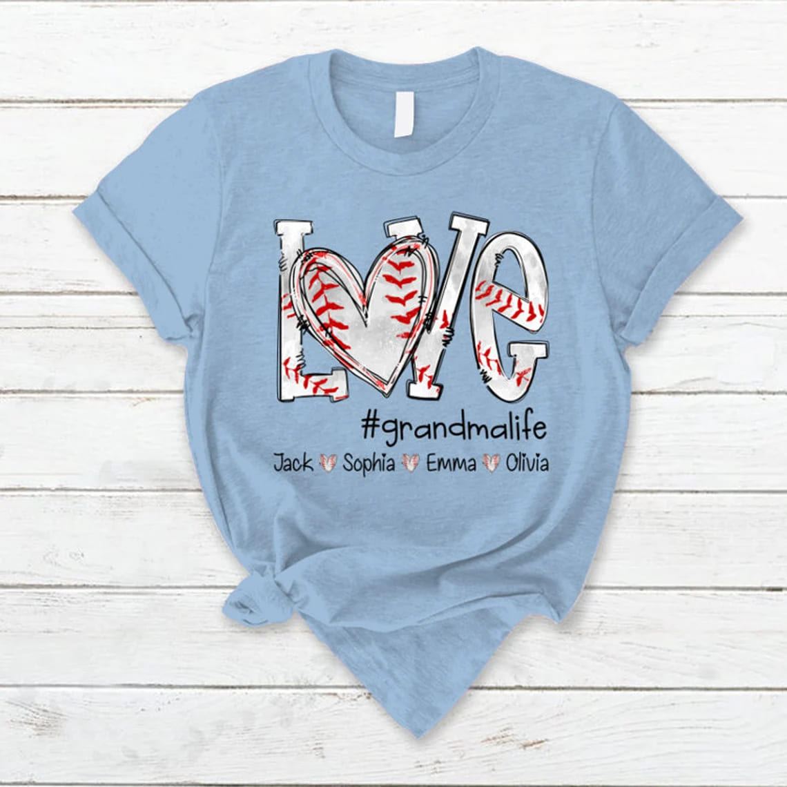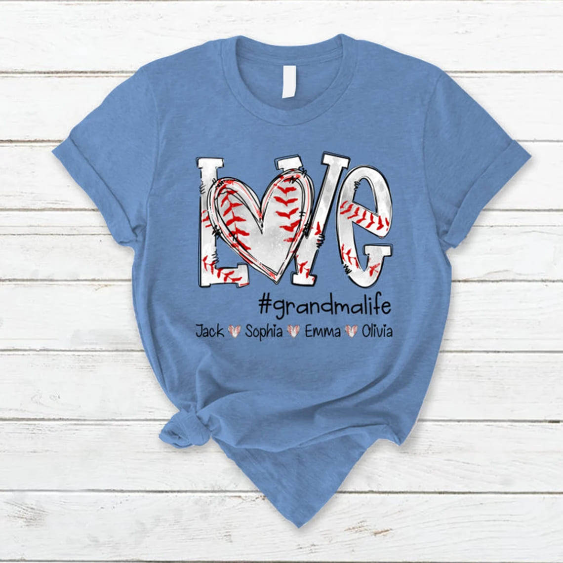 Custom Baseball Grandma T-Shirt, Personalized Baseball Grandma Tee Shirt, Baseball Mimi Shirt With Kid Names, Gift for Lover Baseball
