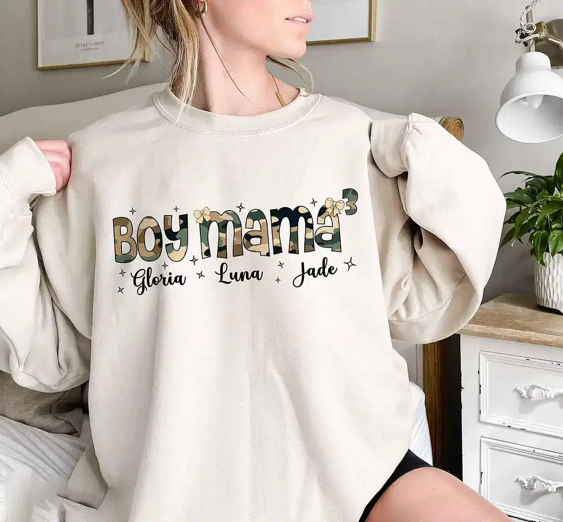 Custom Boy Mama Camo, Camo Coquette Bow Sweatshirt, Boy Mom Name Kids Crewneck, The Best Mother’s Day Gift