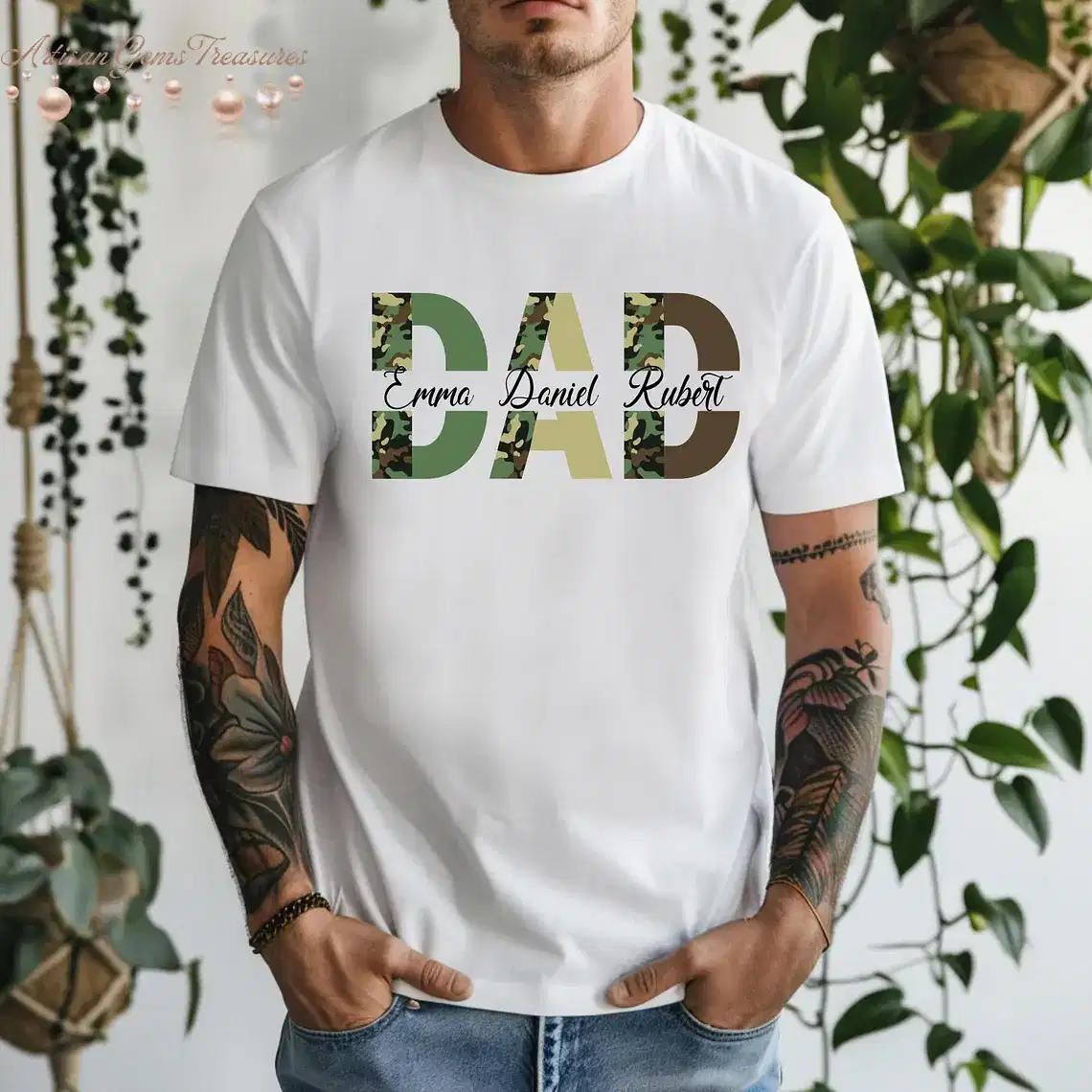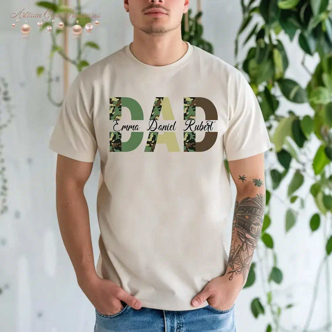 Custom Dad Shirt with Kids’ Names, Camo Print Personalized Father’s Day Gift, Hunting Shirt for Dad, The Best Father’s Day Gift