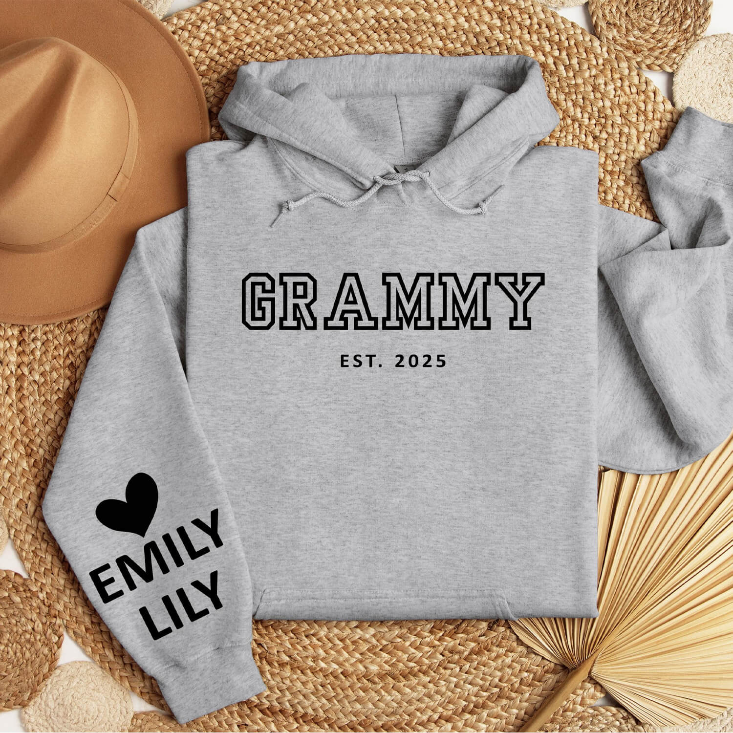 Custom Grammy Hoodie with Grandkids Names on Sleeve , Gift For Grammy – The Best Mother’s Day Gift