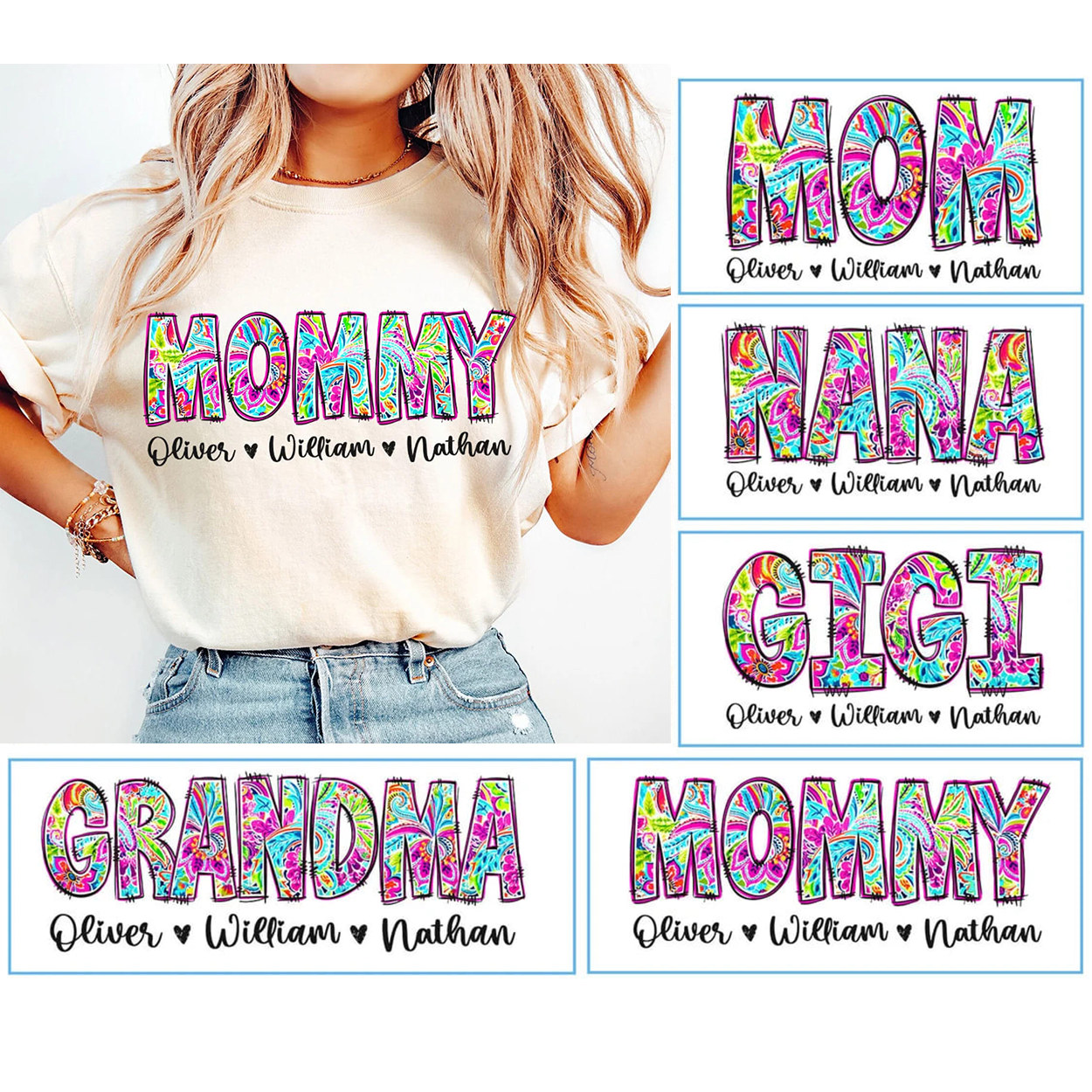 Custom Grandma, Floral Boho Mommy, Personalized Gigi, Floral Mama T-Shirt – The Best Mother’s Day Gift