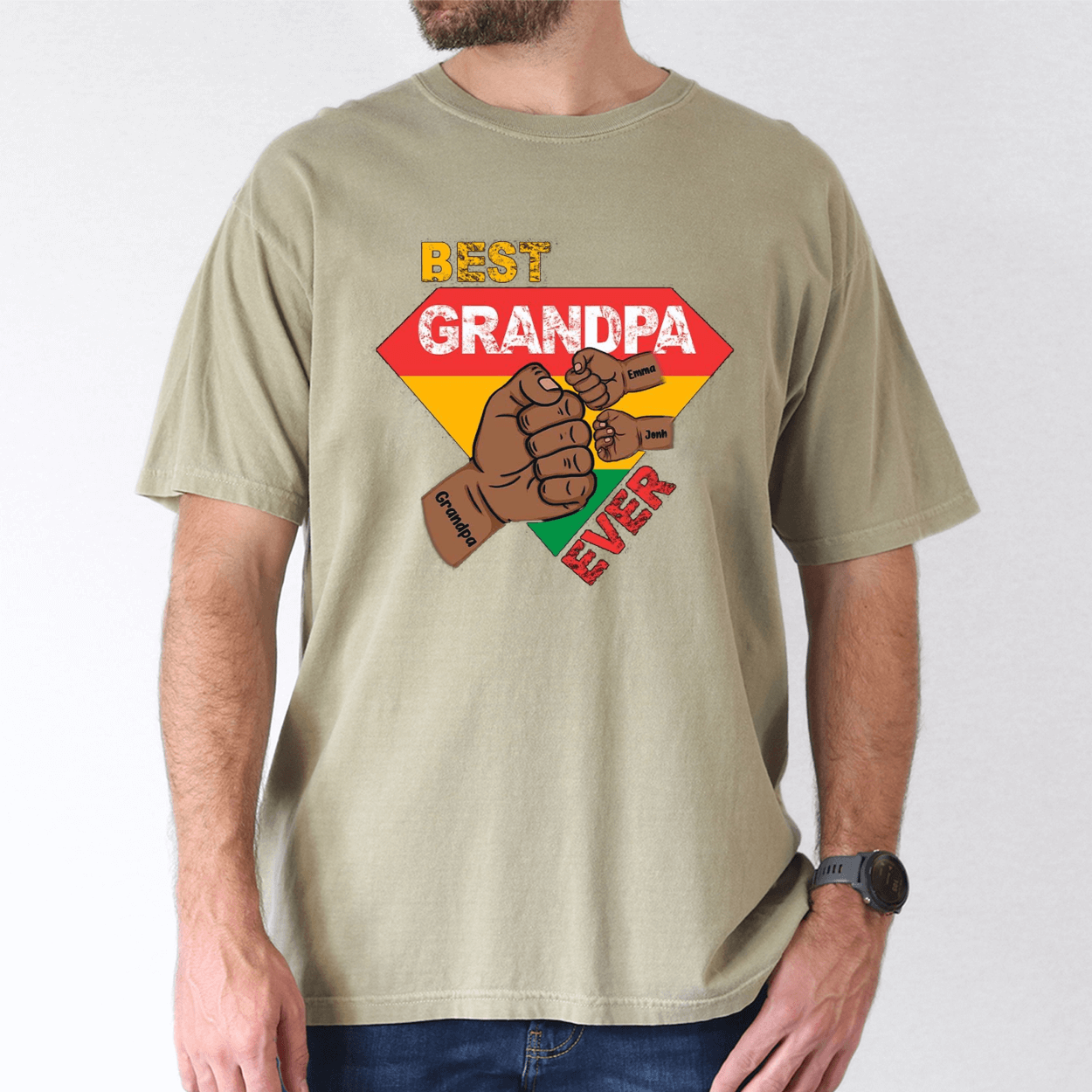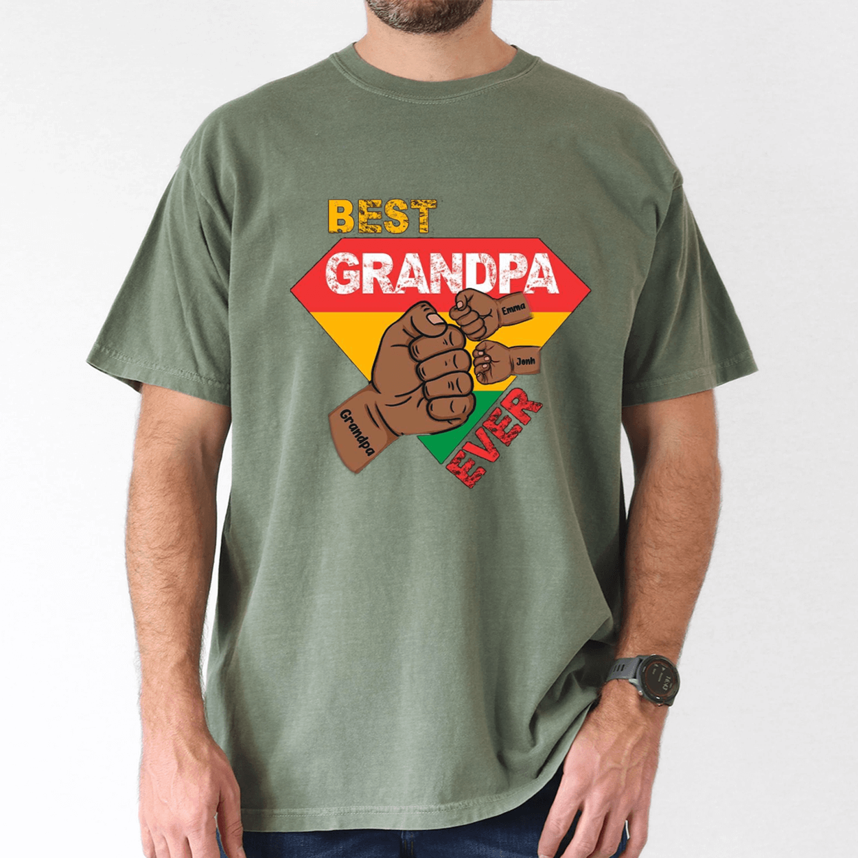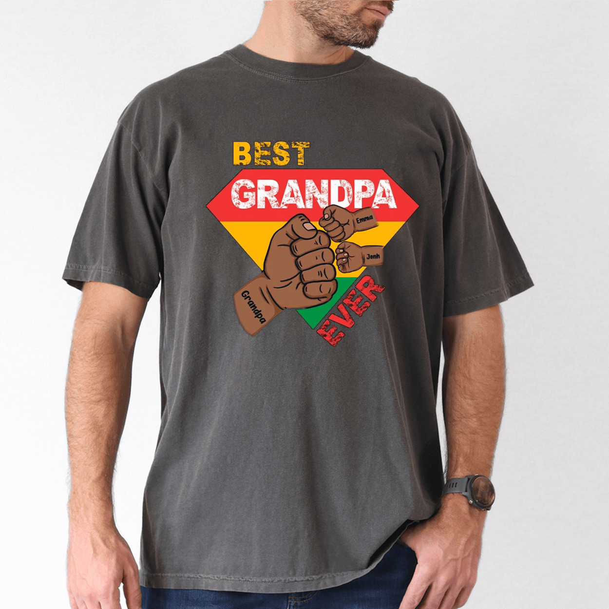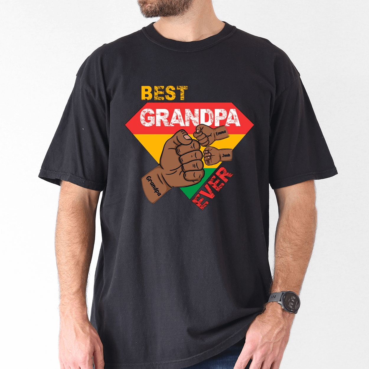 Custom Grandpa Gift, Black Grandpa with Fist Bump and Grandkids Names T-Shirt – The Best Father’s Day Gift