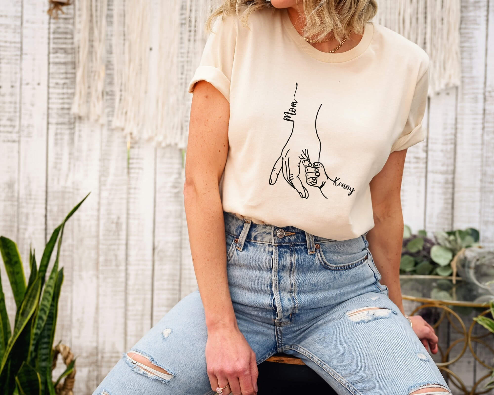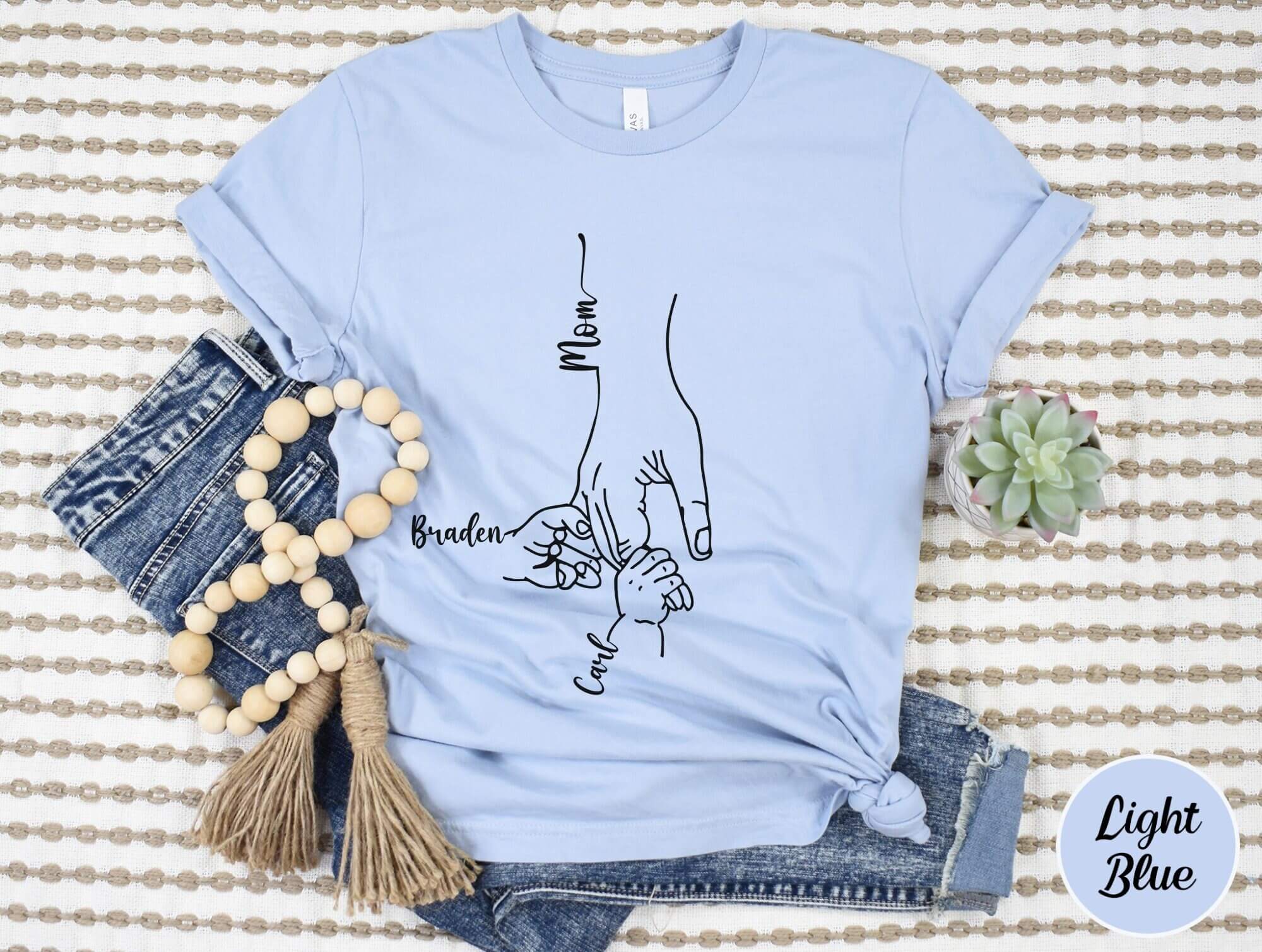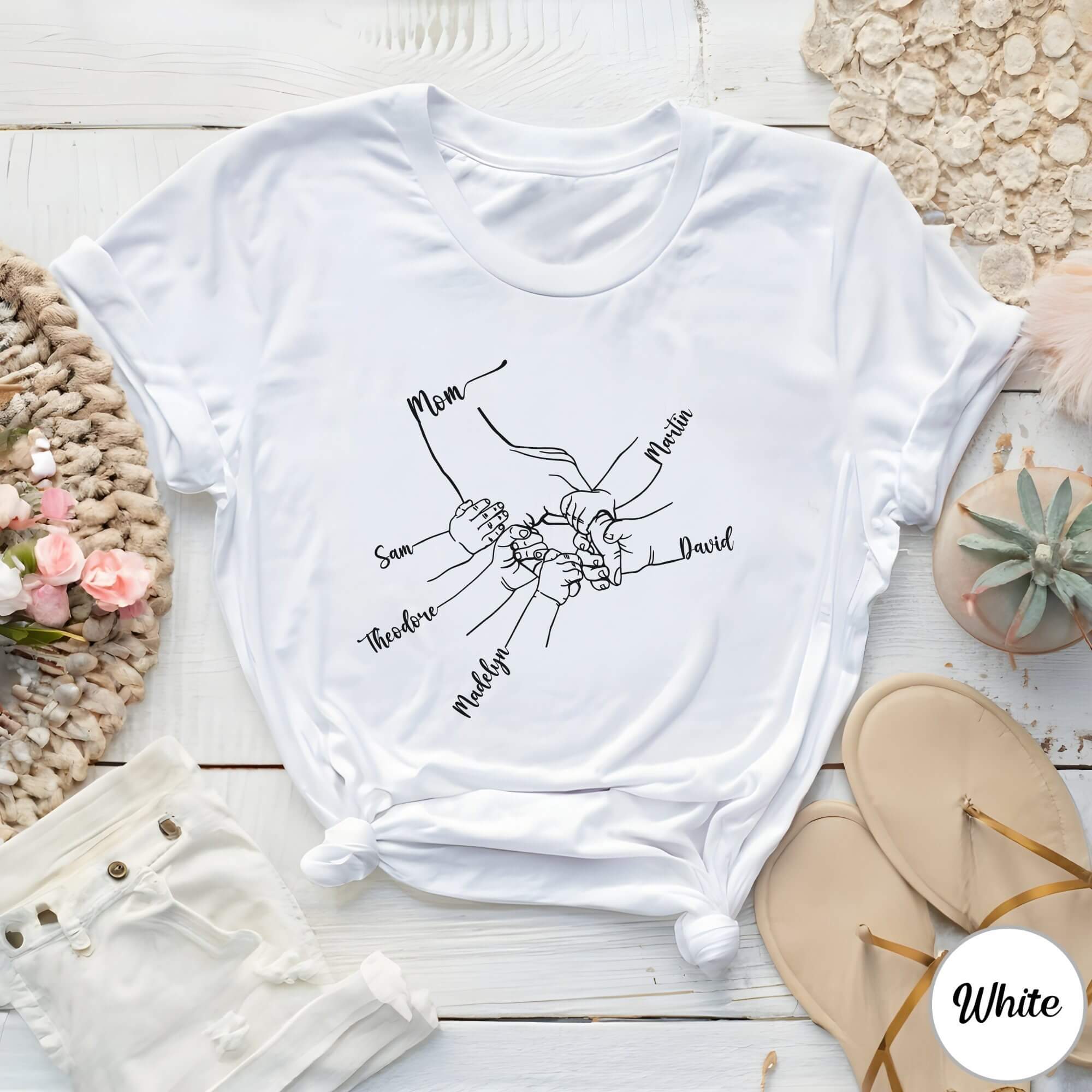 Custom Mom Shirt from Children – Personalized Mom & Kids Hands Shirt with Kids’ Names – Mother’s Day Gift