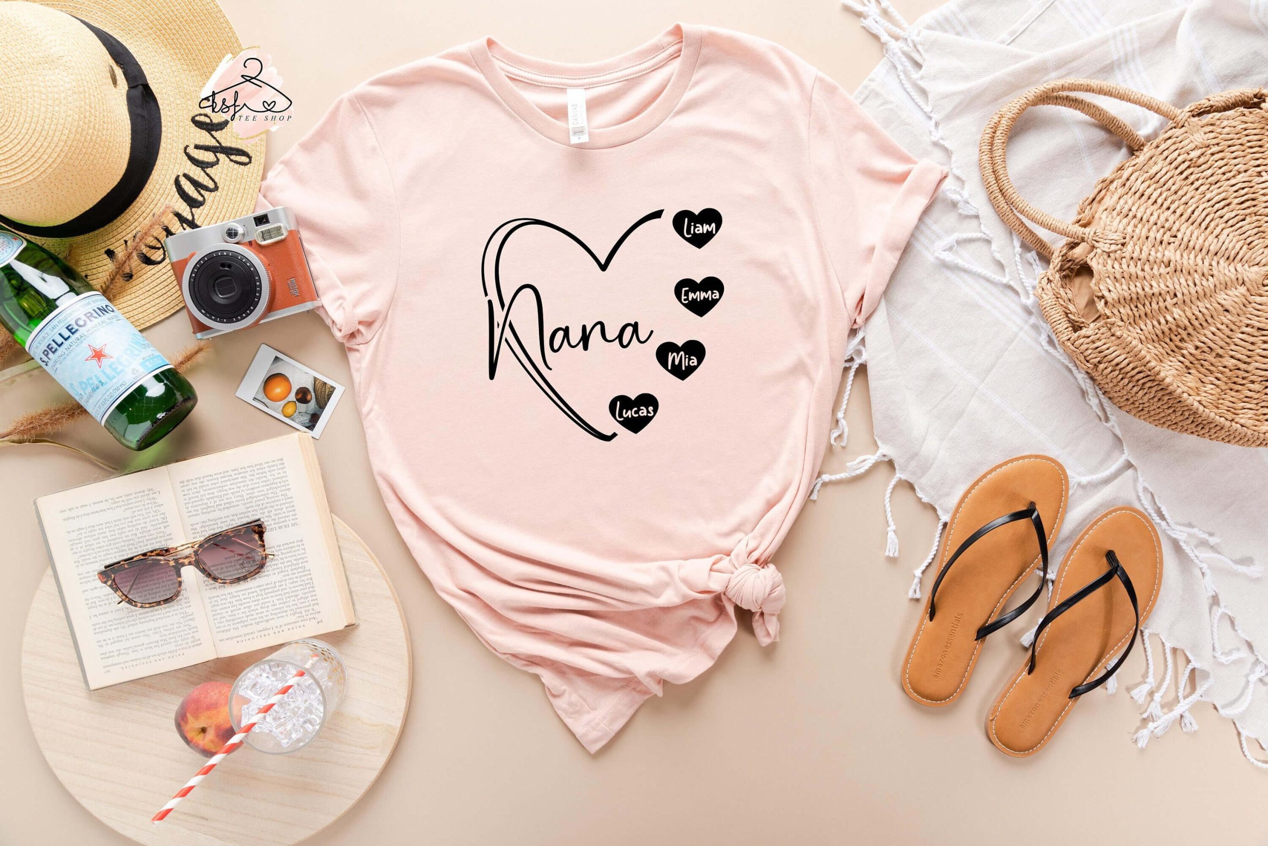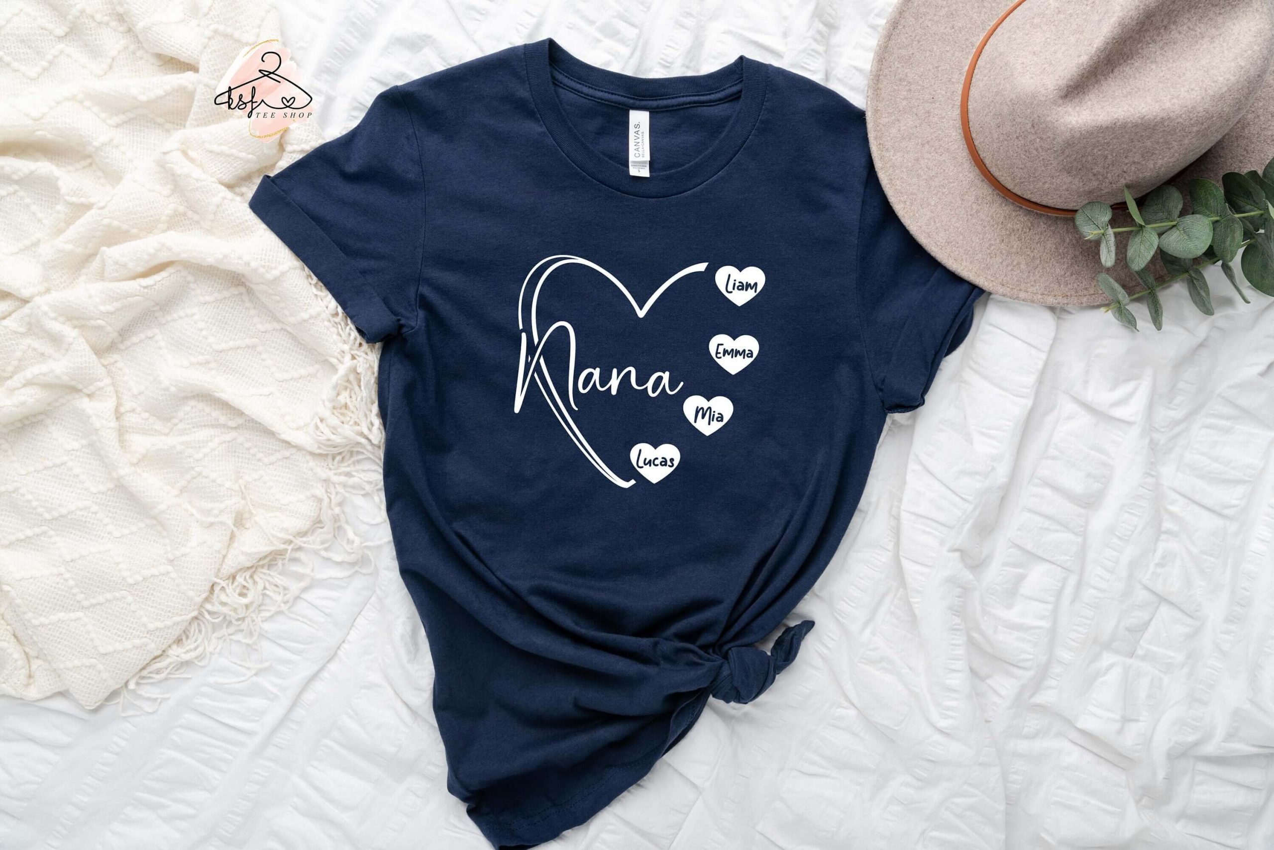 Custom Nana Heart Shirt with Kids’ Names – Personalized Grandma Tee – Nana Gift for New or Cool Grandmas