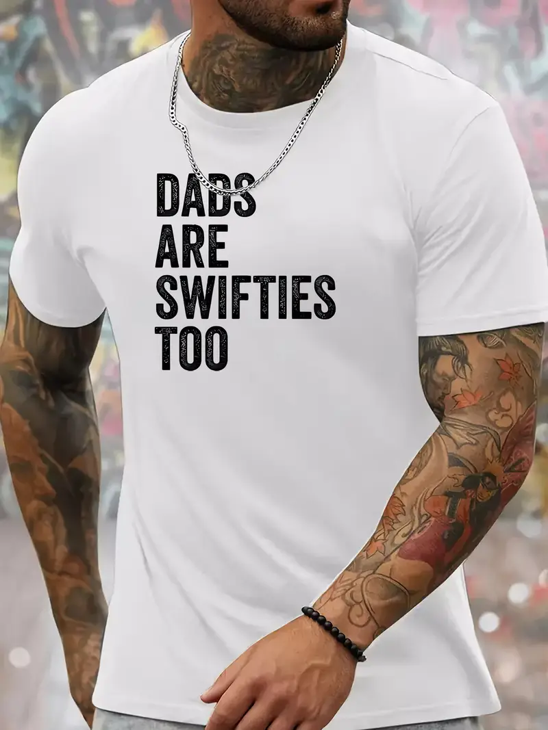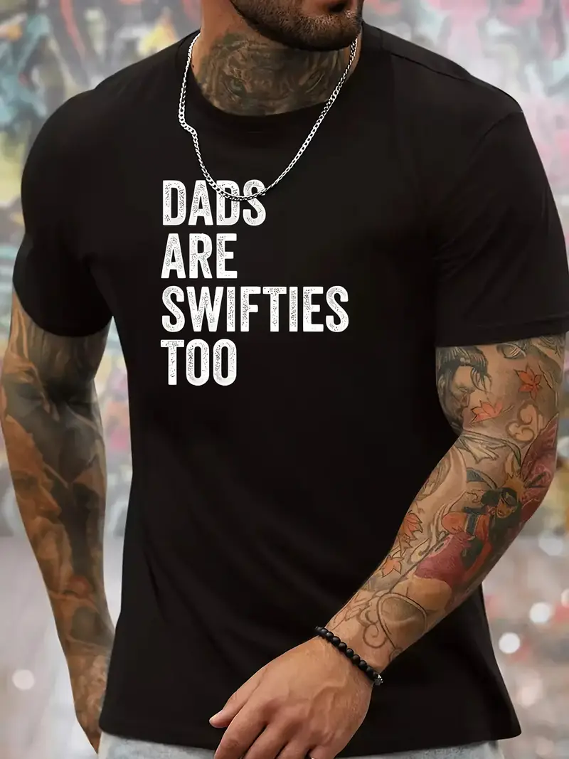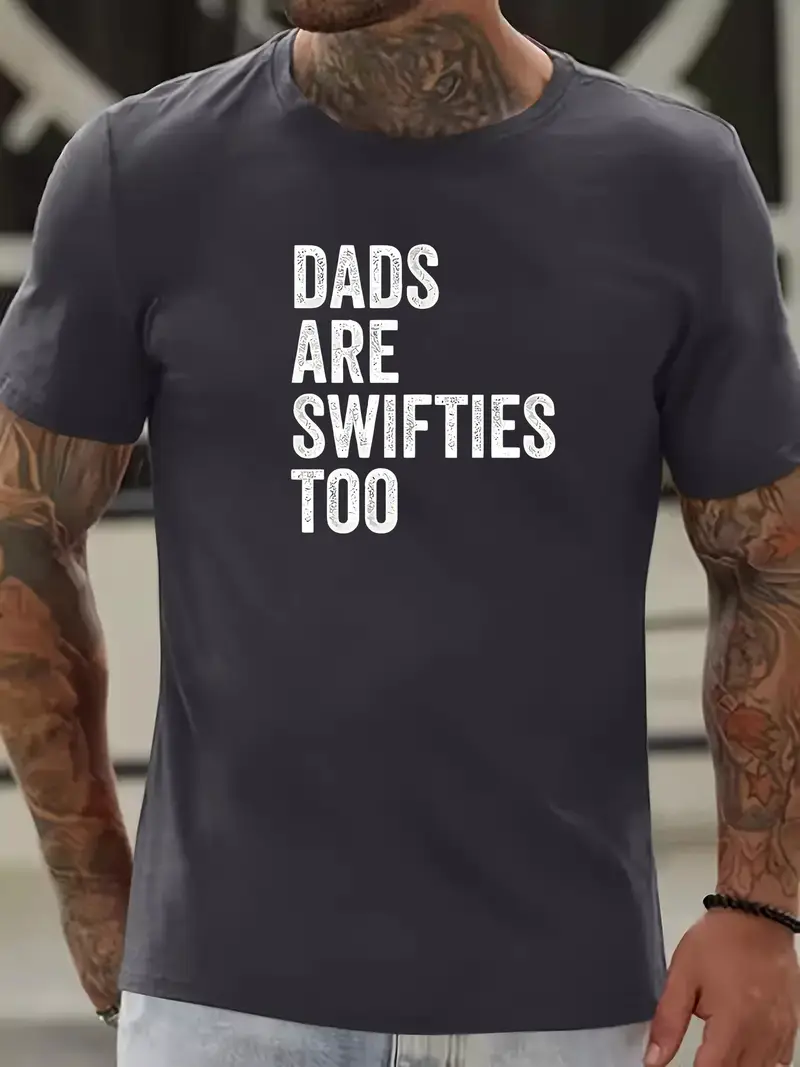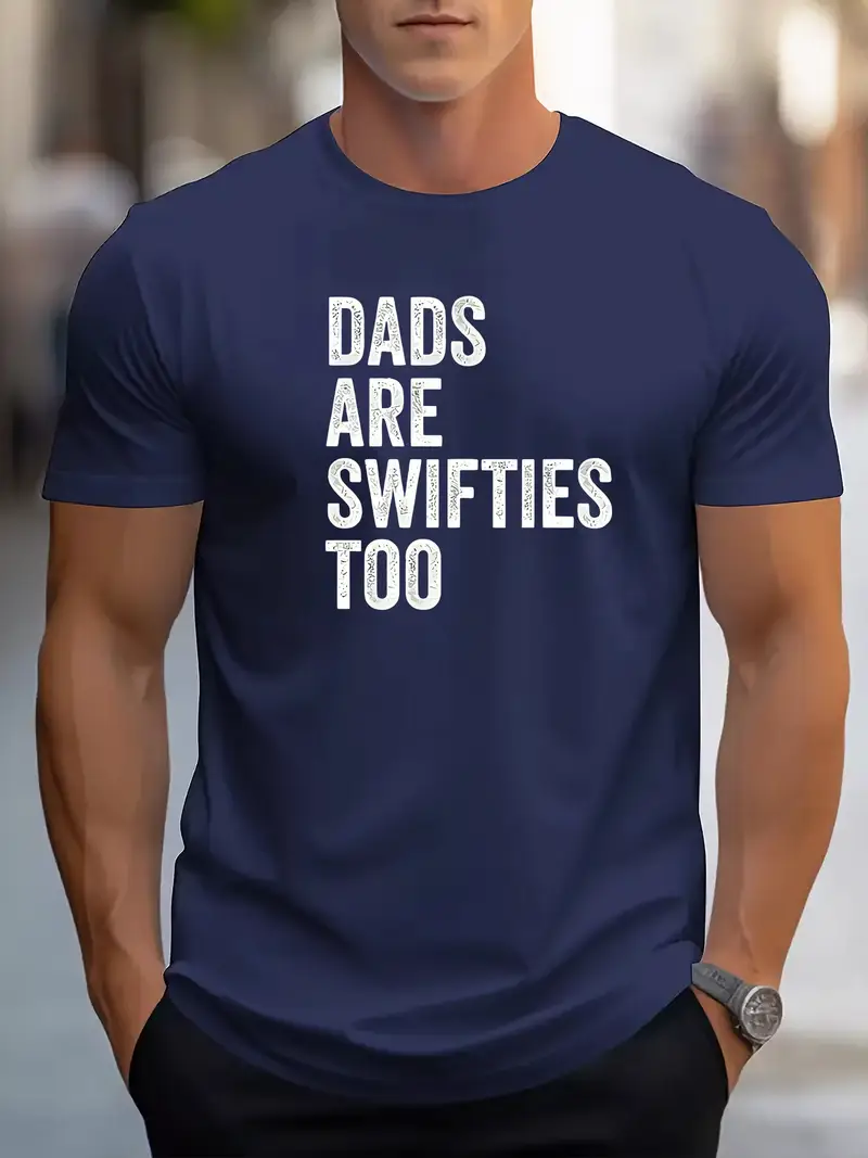 Dads Are Swifties Too Print, Men’s Crew Neck Short Sleeve T-shirt, Men’s Casual Comfy Top, Men’s Trendy T-shirt For Outdoor Activities & Daily Wear