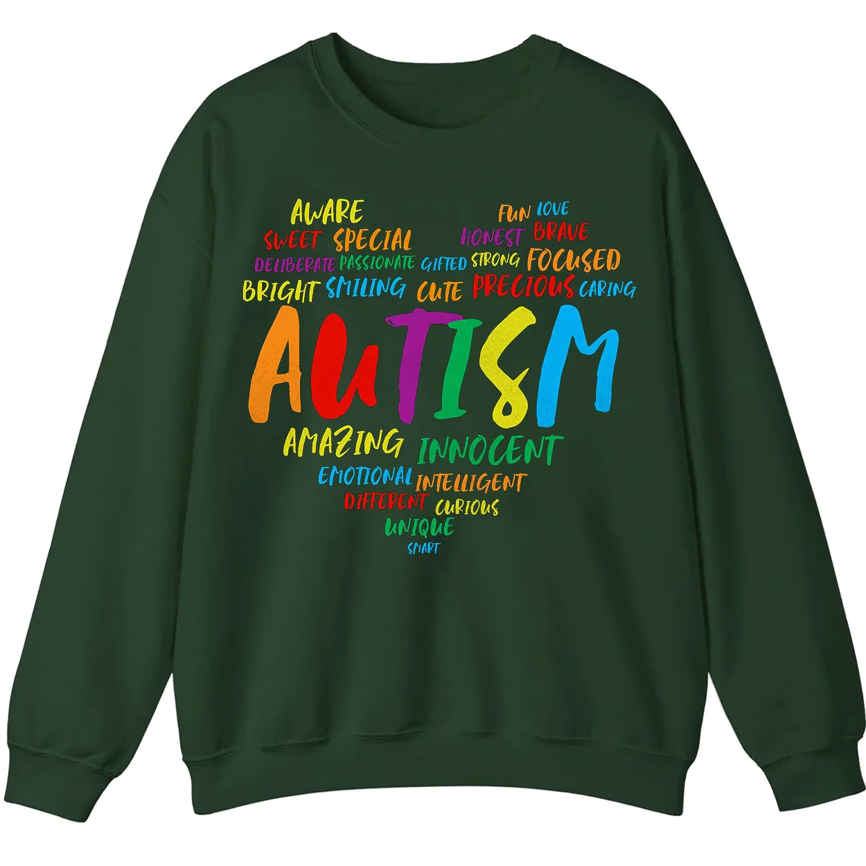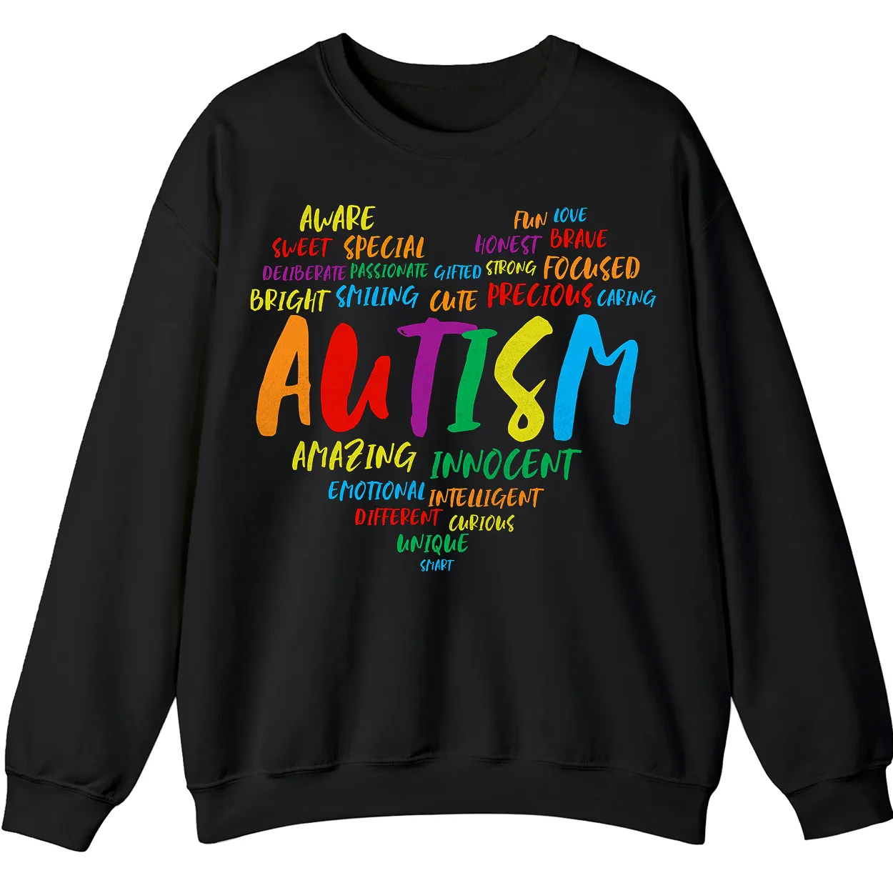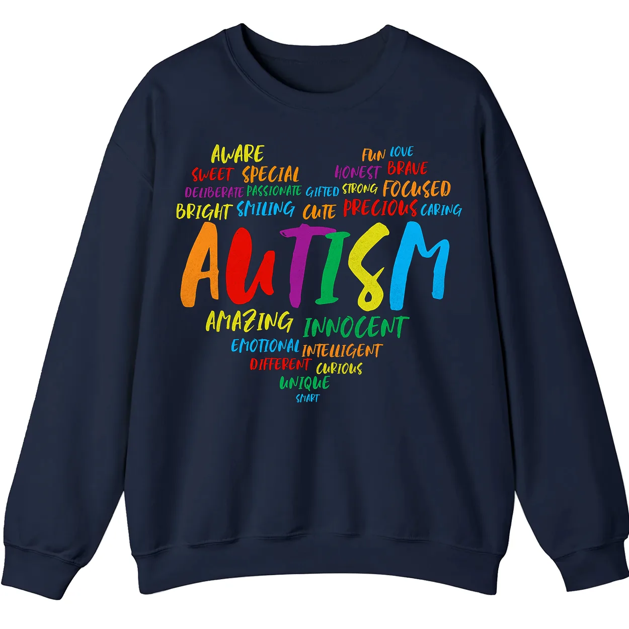 Empowering Autism Word Cloud Heart Sweatshirt, Unique Intelligent Positive Words Crewneck