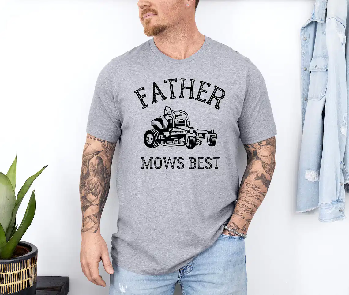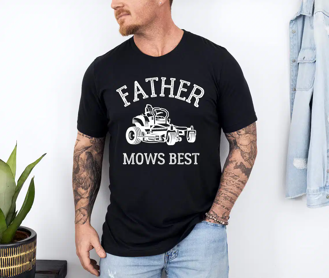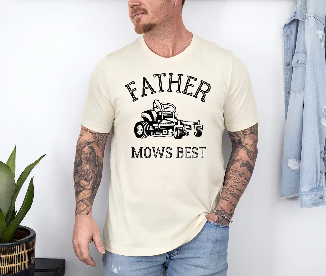 Father Mows Best Shirt, Funny Lawn Mowing Dad Tee, Yard Work Humor T-Shirt, The Best Father’s Day Gift