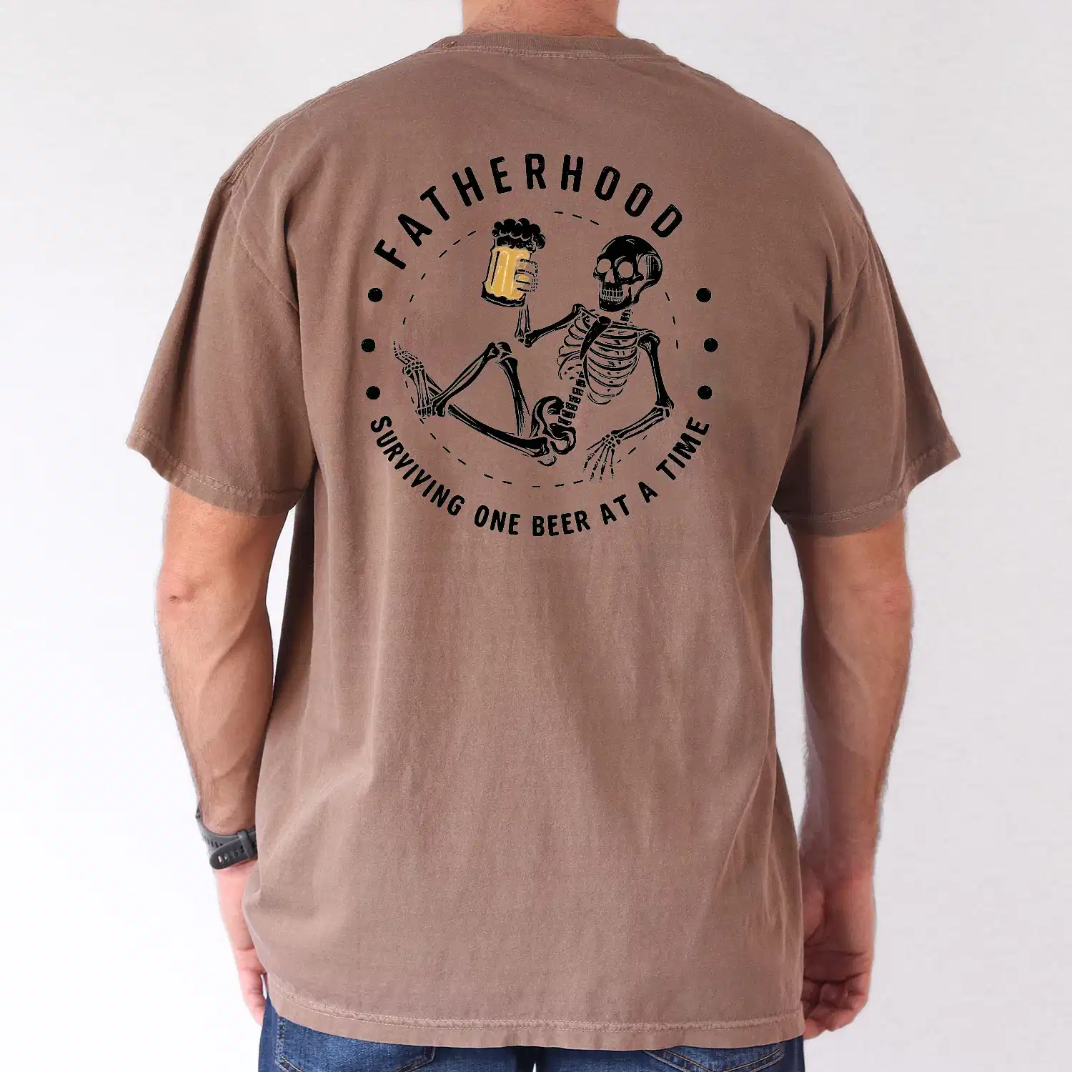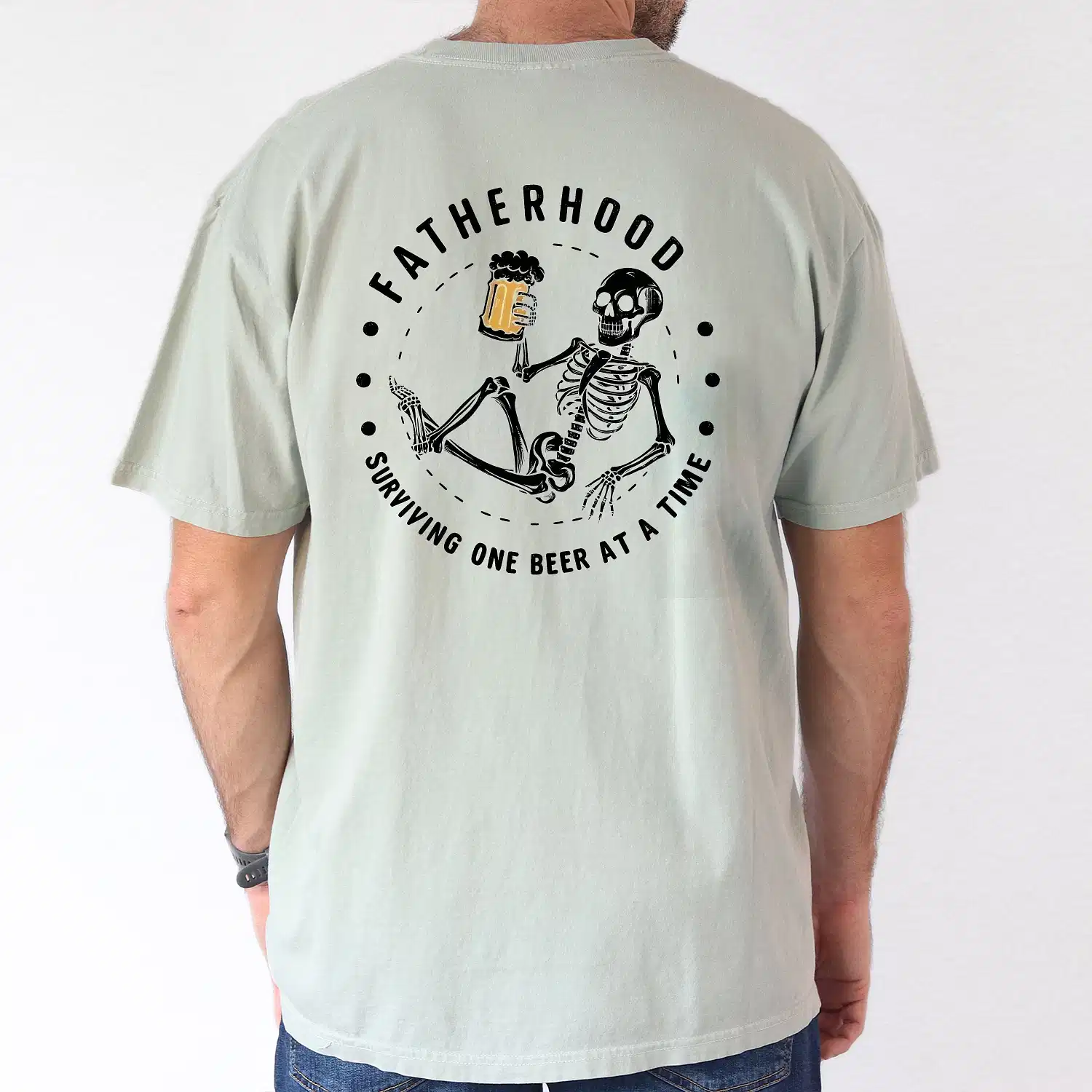 Fatherhood Graphic T-Shirt – One Beer at a Time Skeleton Design, The Best Father’s Day Gift