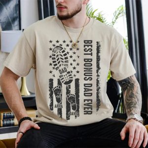 Fathers Day Gifts, Custom Shirt With Kids Name For Bonus Dad, Personalized Best Bonus Dad Ever T-shirt, Bonus Dad Shirt Gifts, Step Dad Gifts