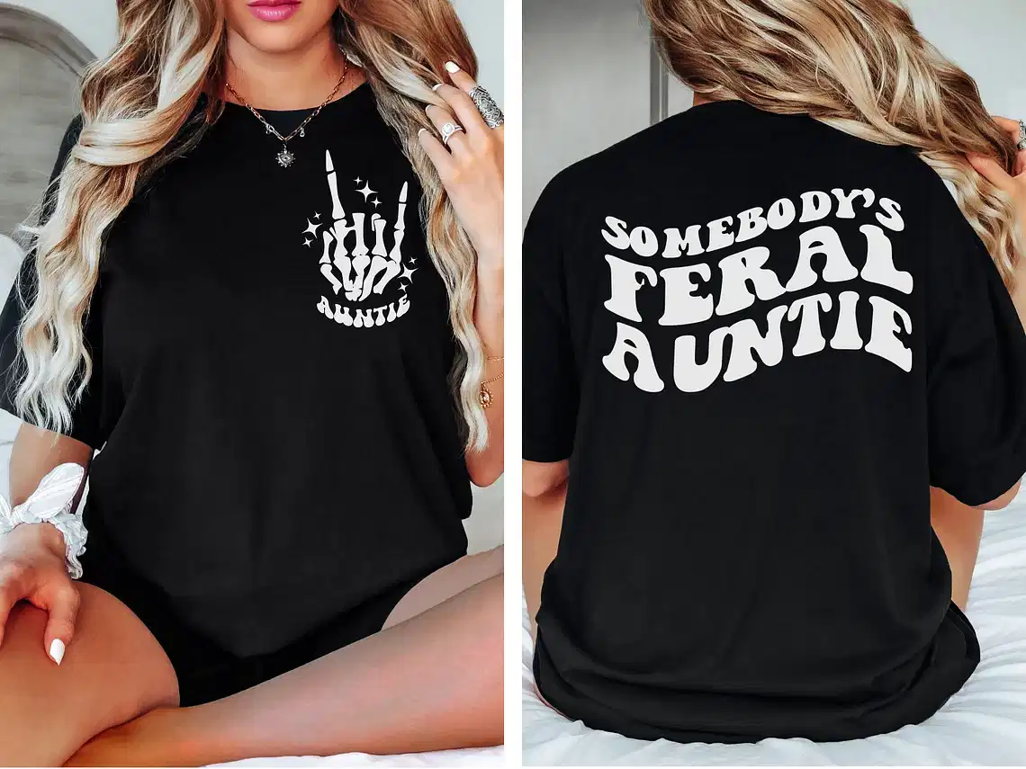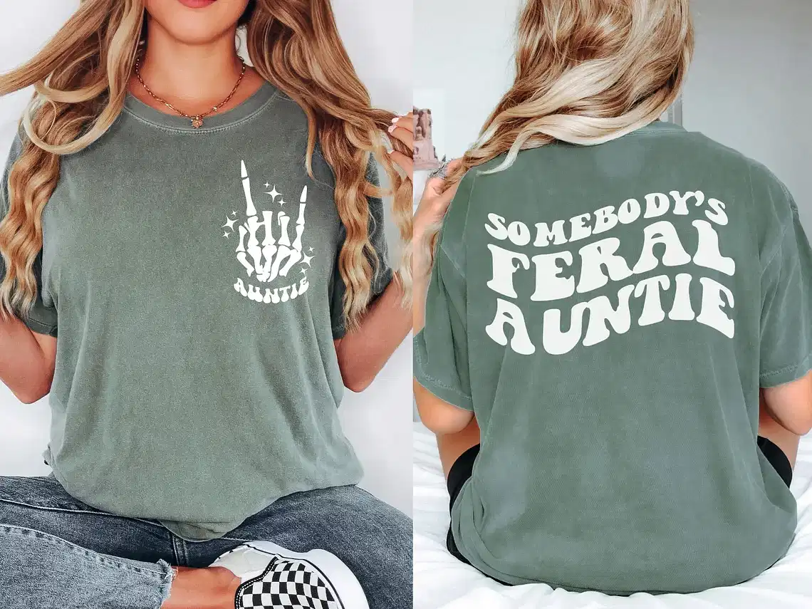 Feral Aunt T-Shirt, Trendy Women’s Shirts, Moss tshirt, With Sayings, Gift For New Aunt Reveal