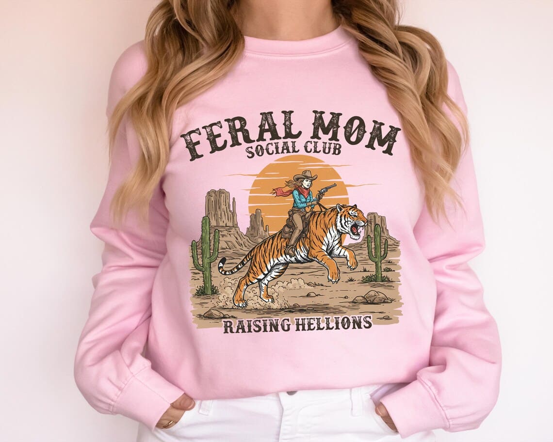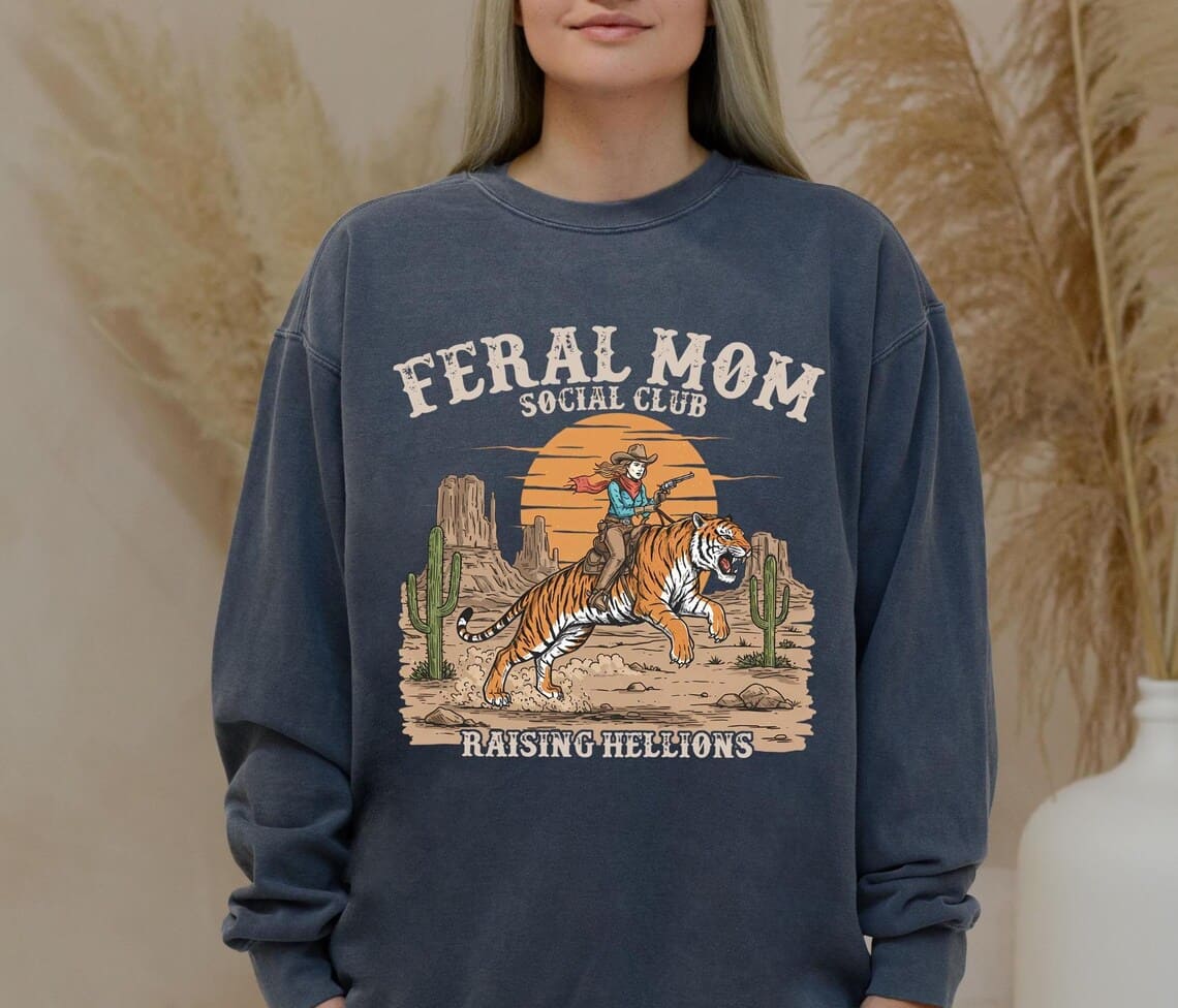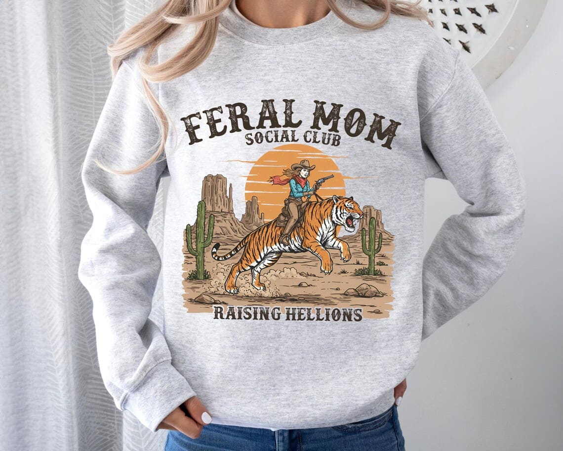 Feral Mom Social Club Retro, Raising Hellions Sweatshirt, Vintage Feral Mom Sweatshirt, The Best Idea for Mother’s Day Gift