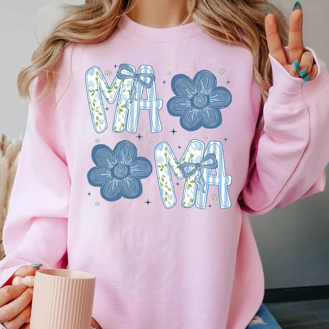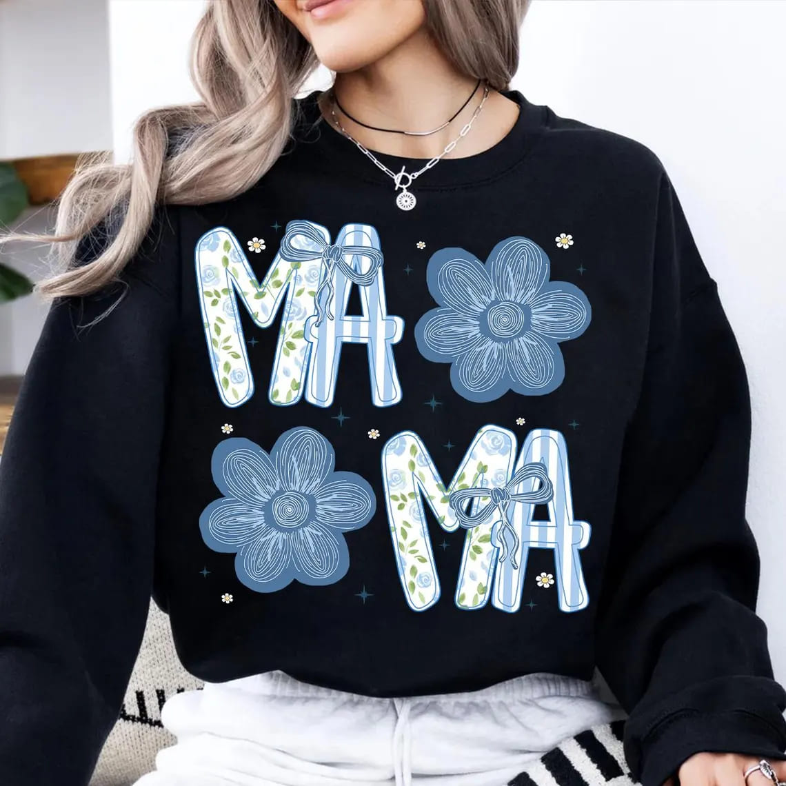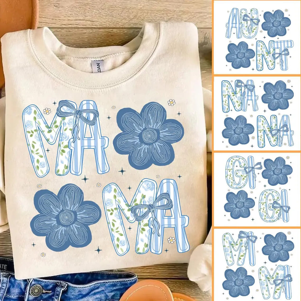 Floral Mama/ Mimi/NaNa/Gigi/ Aunt, Retro Coquette Bow – Preppy Flower Design for Mother’s Day