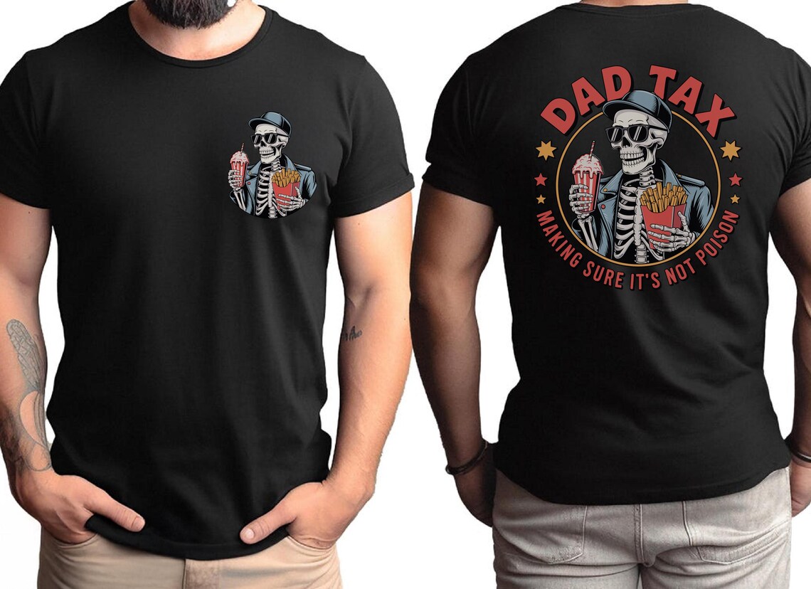 Funny Dad Tax – “Making Sure It’s Not Poison” Skeleton Tee – Dad Jokes T-Shirt – Birthday Gift for Dad, Father’s Day Shirt