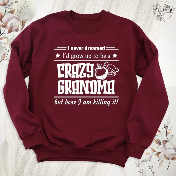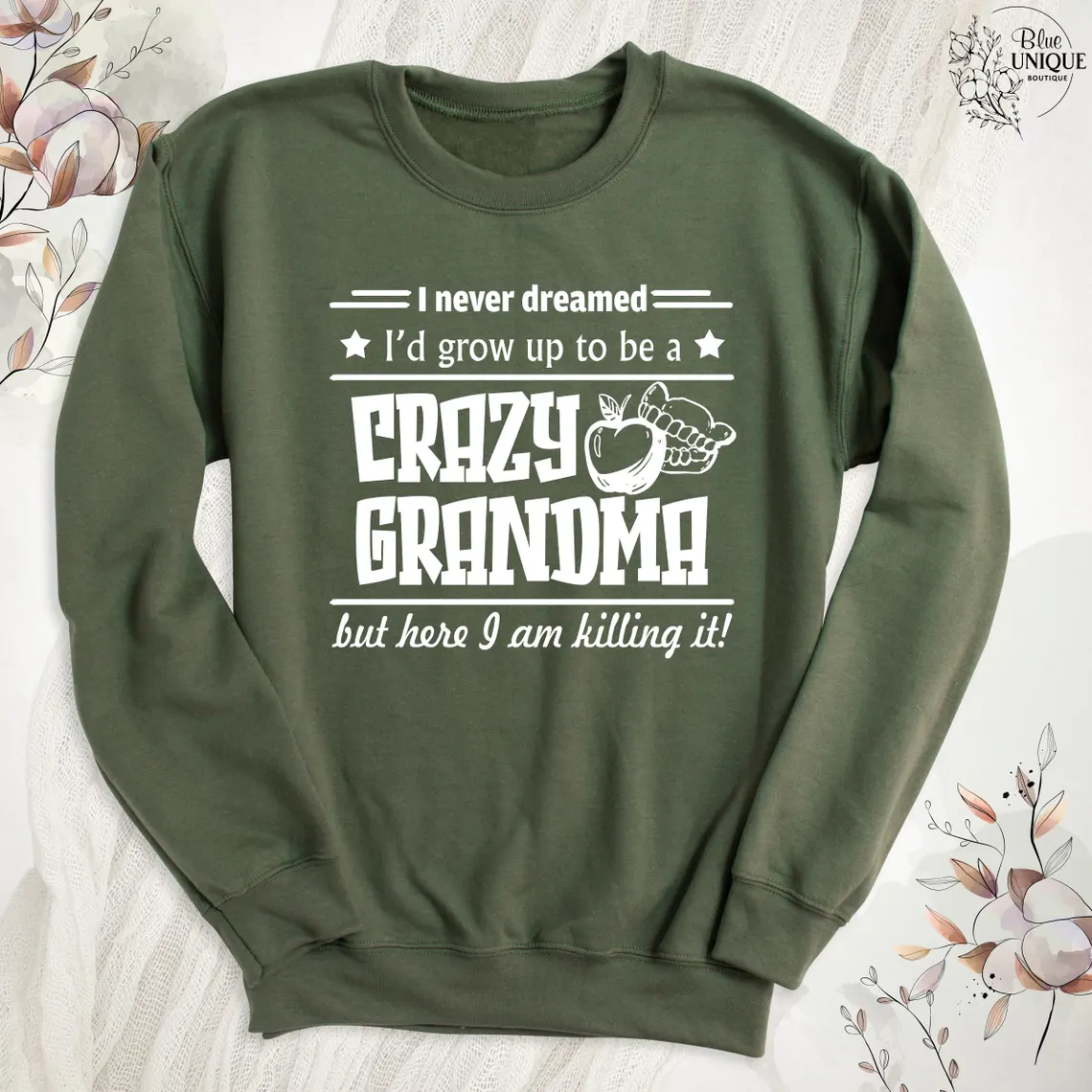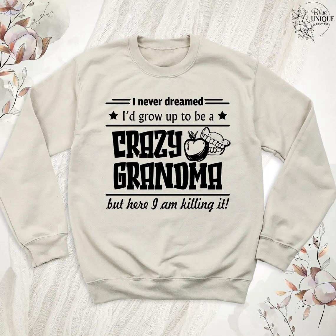 Funny Grandma Sweatshirt, I Never Dreamed I’d Grow Up To Be A Crazy Grandma, Grandma Crewneck, Funny Grandmother