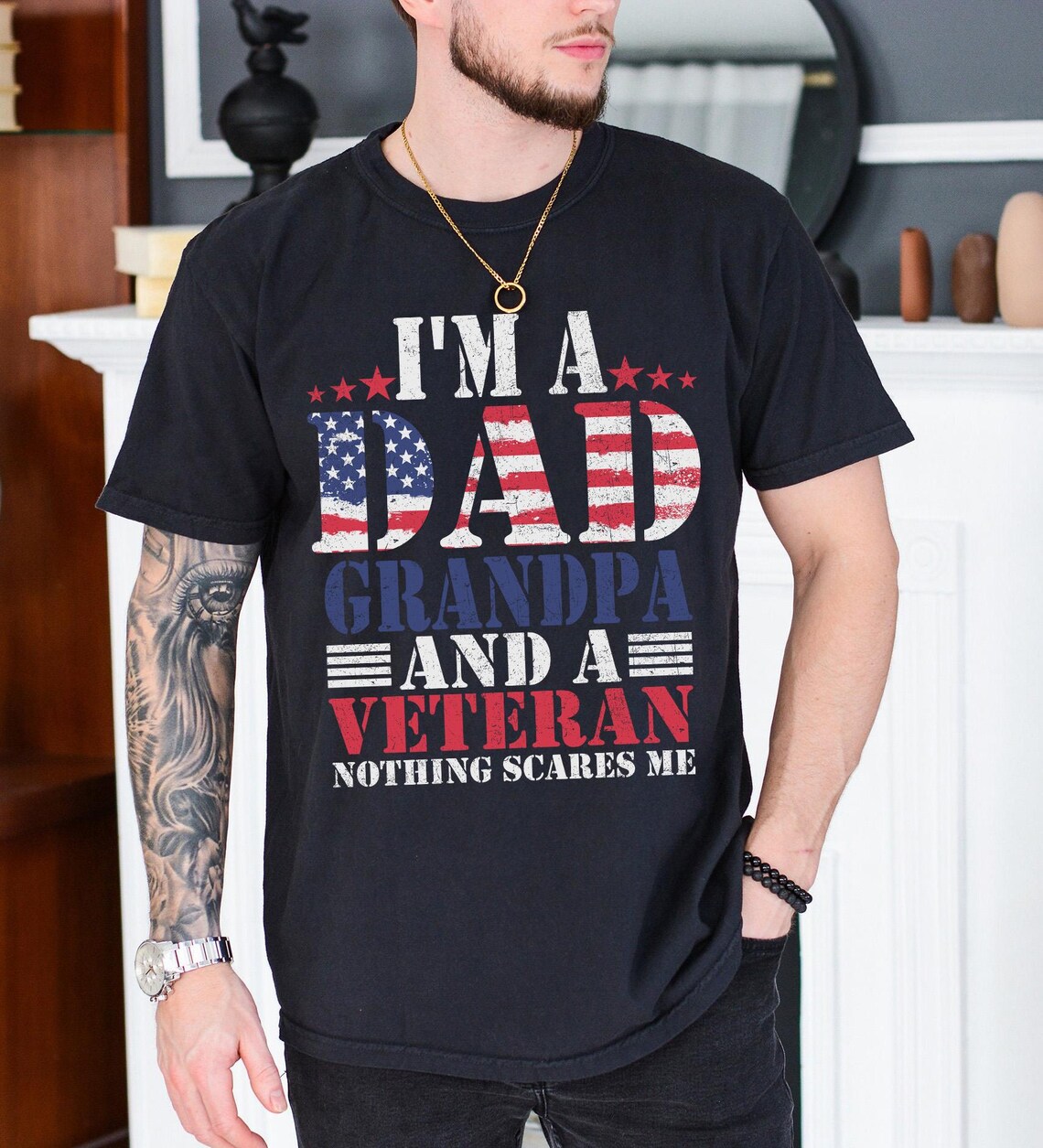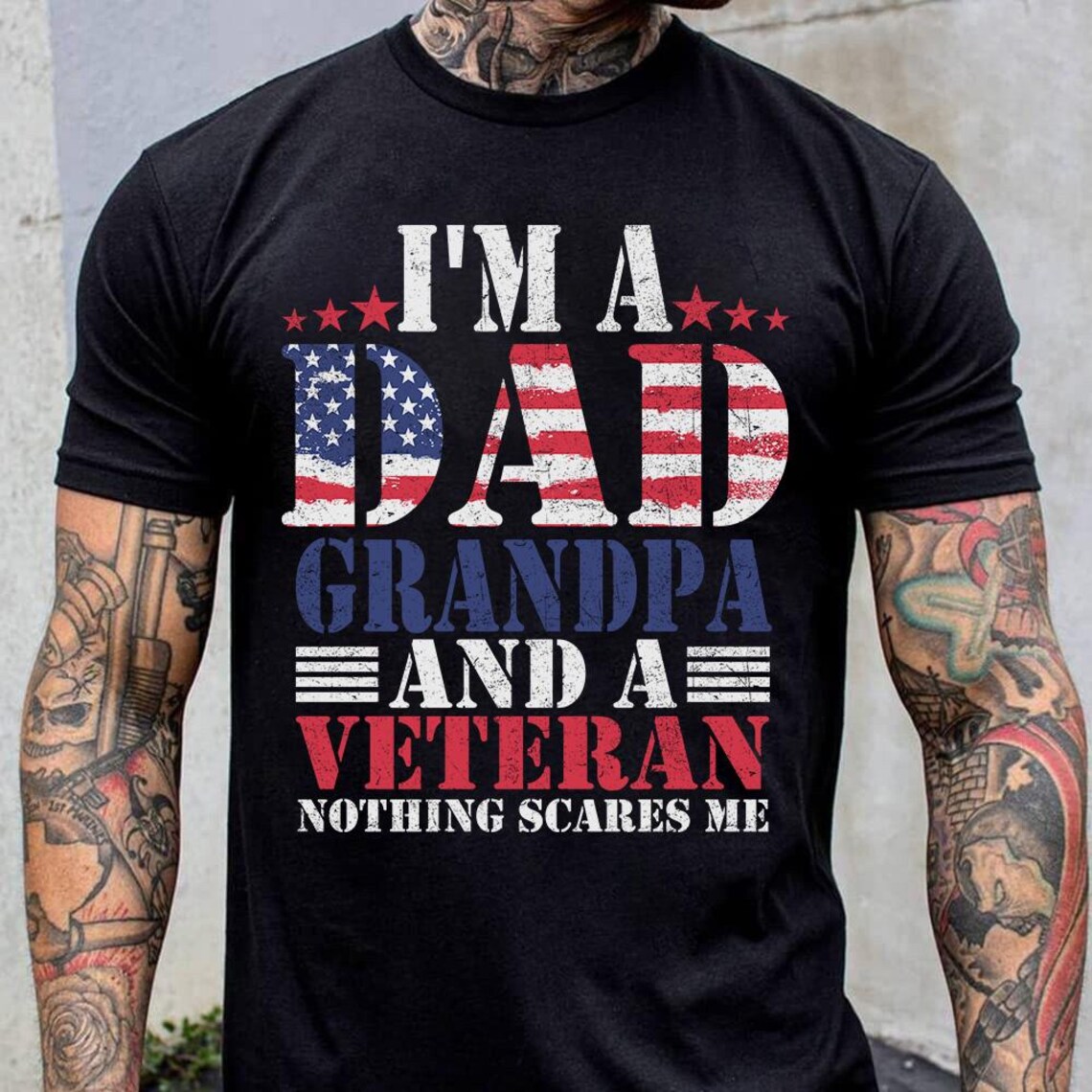I’m A Dad Grandpa And A Veteran Nothing Scares Me T-Shirt, Veteran Dad Tee, Dad 4th Of July Shirt, Dad Shirt, 4th Of July Shirt