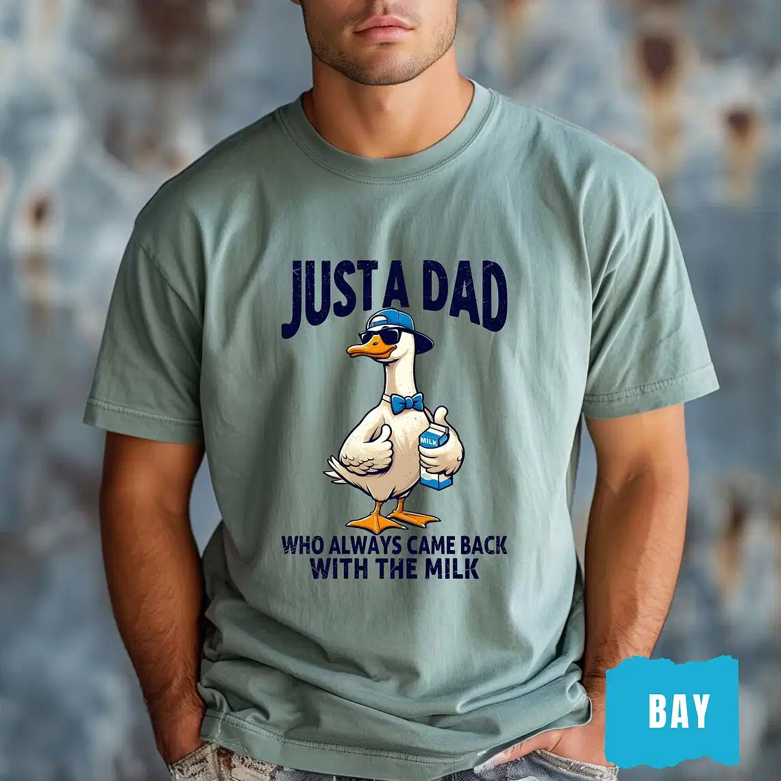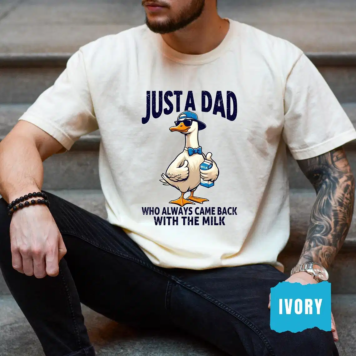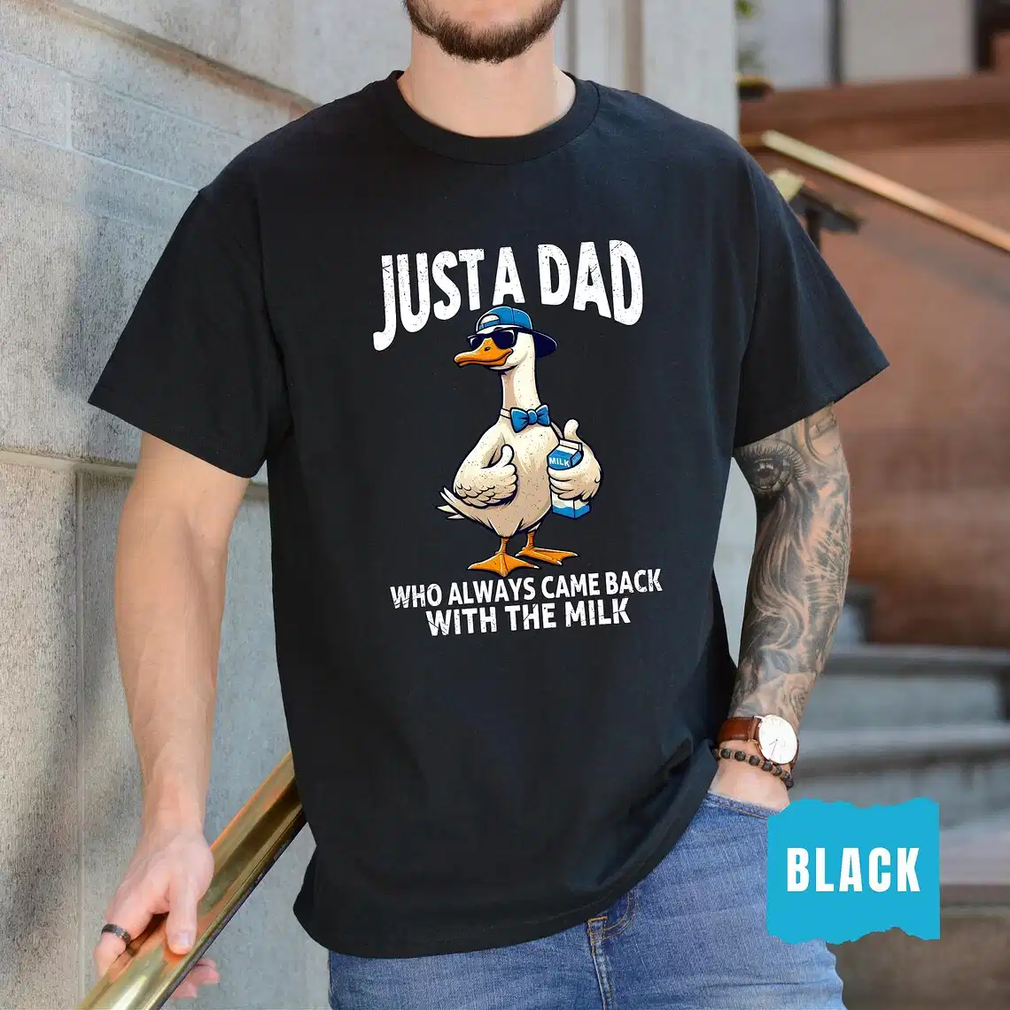 Just A Dad Who Always Came Back With The Milk Shirt, Funny Silly Goose Dad, Father?s Day T-Shirt, Fatherhood Pride Shirt
