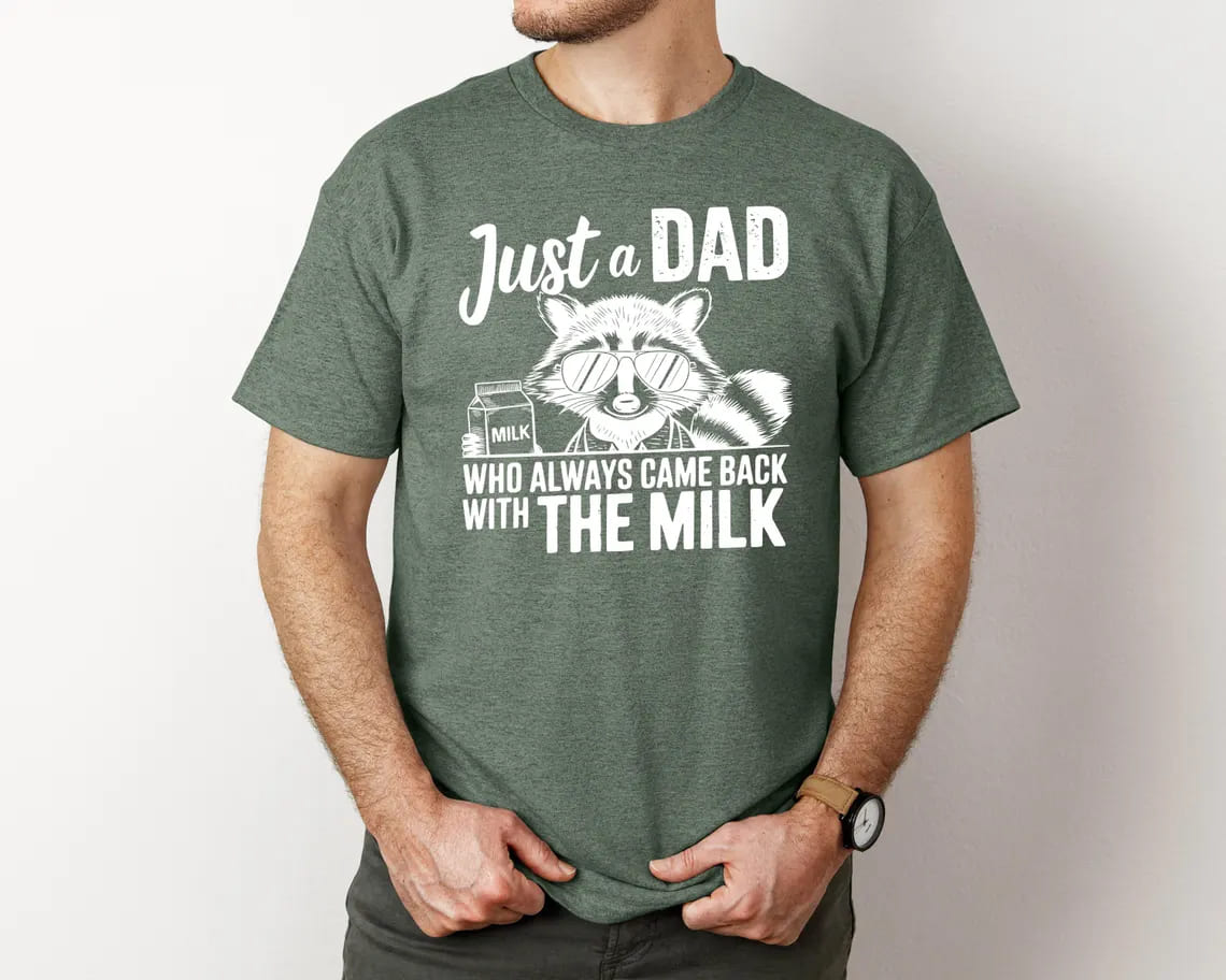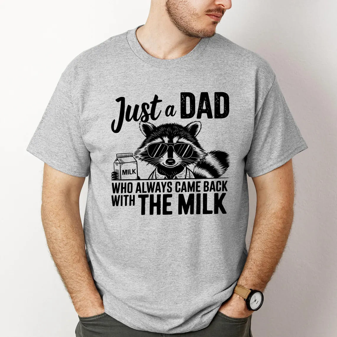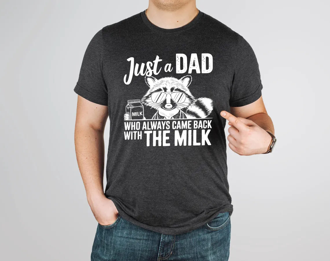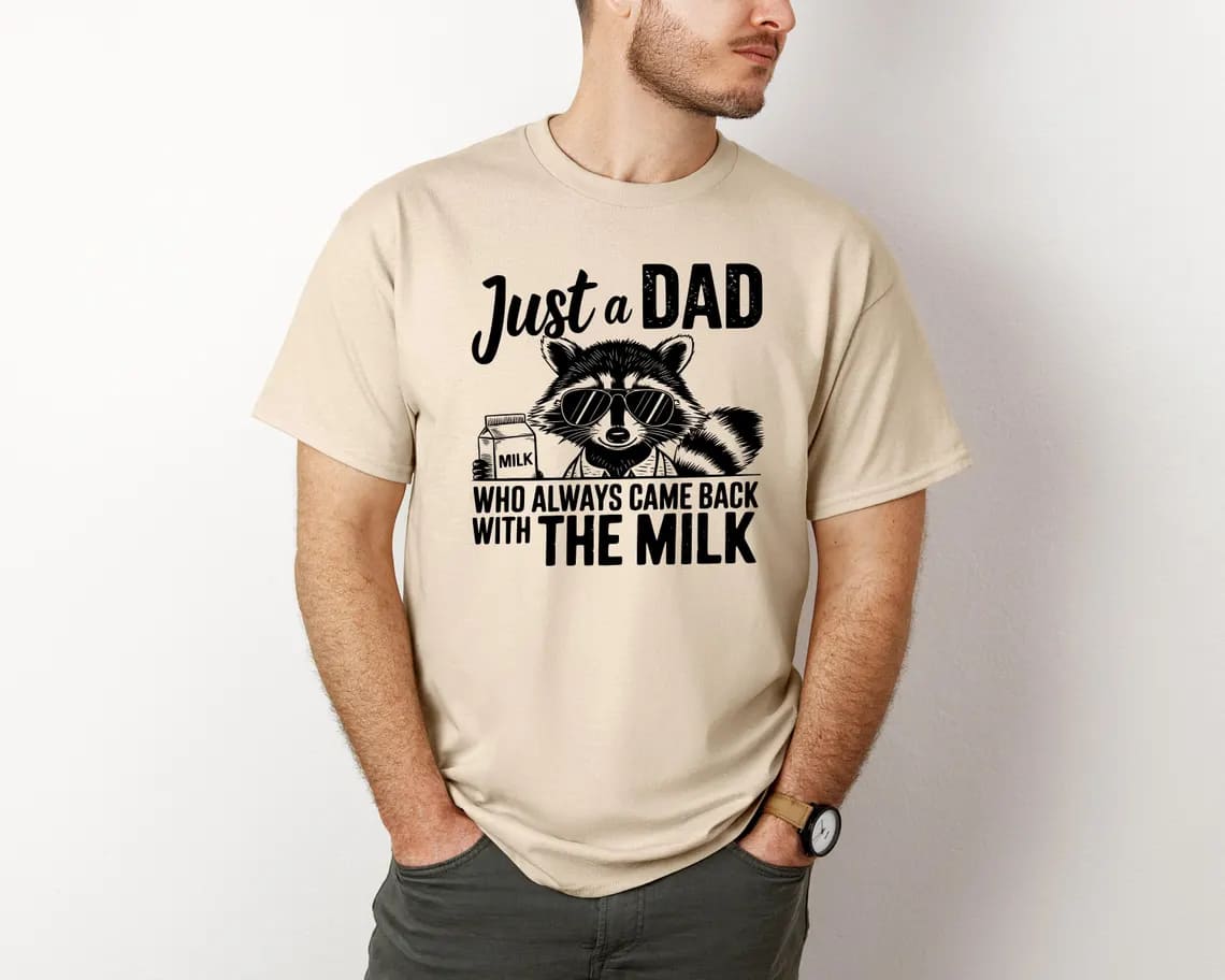 Just A Dad Who Always Comes Back Milk Raccoon Dad Shirt, Sarcastic Dad Shirt, Dad Shirt Milk, Came Back with Milk, Father Milk Shirt