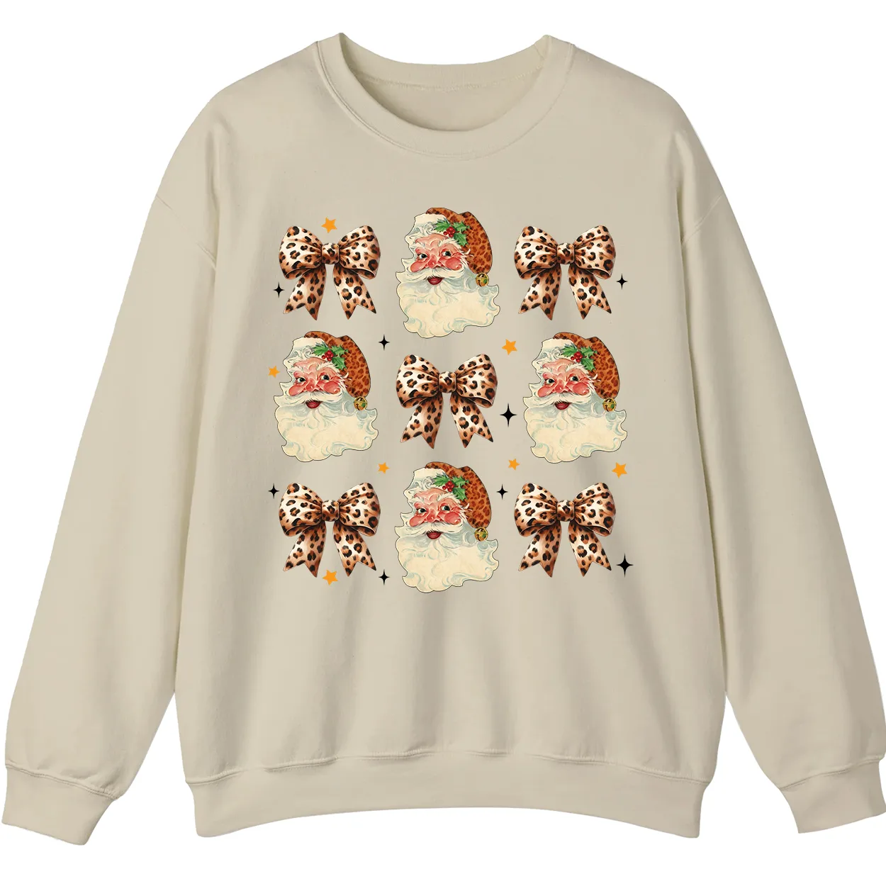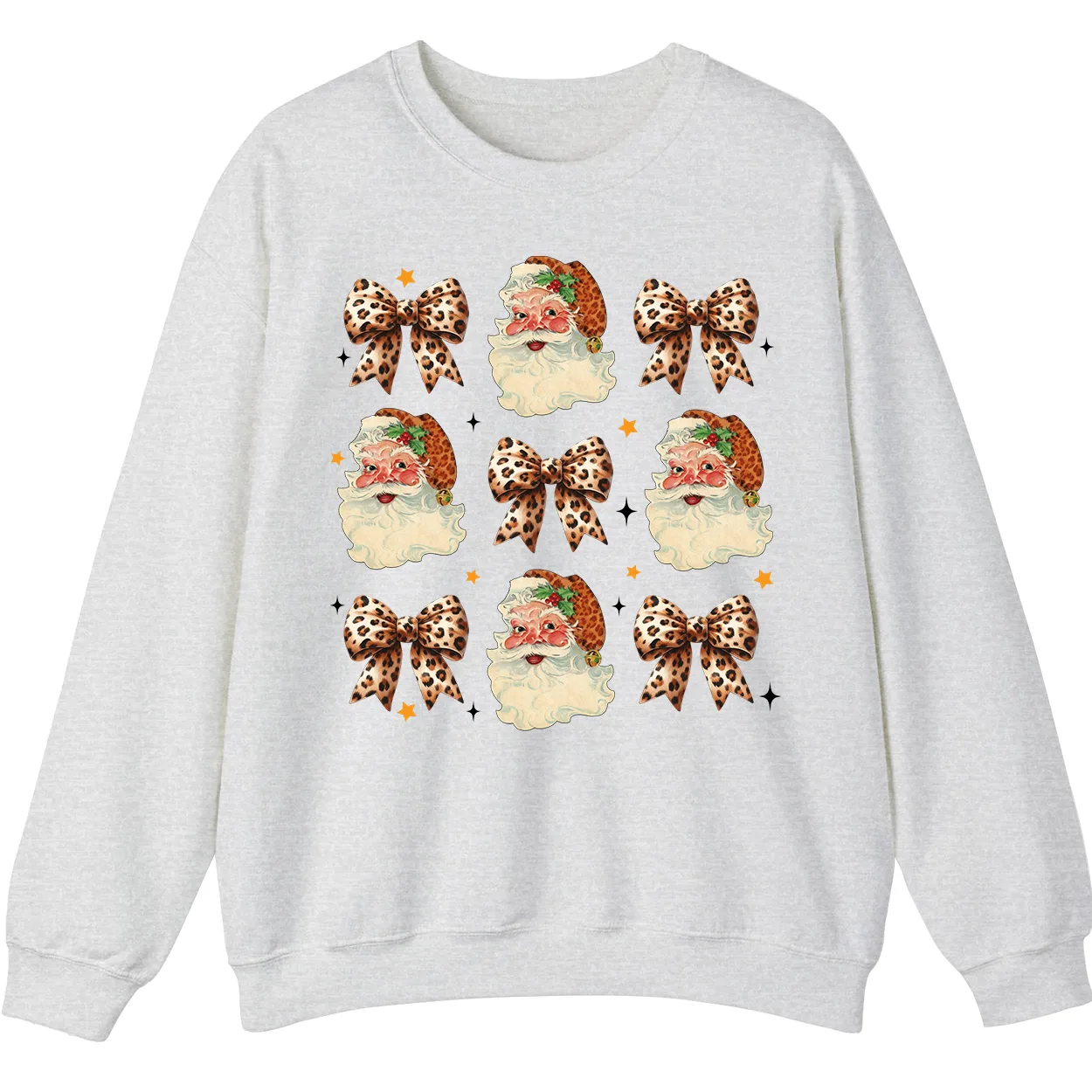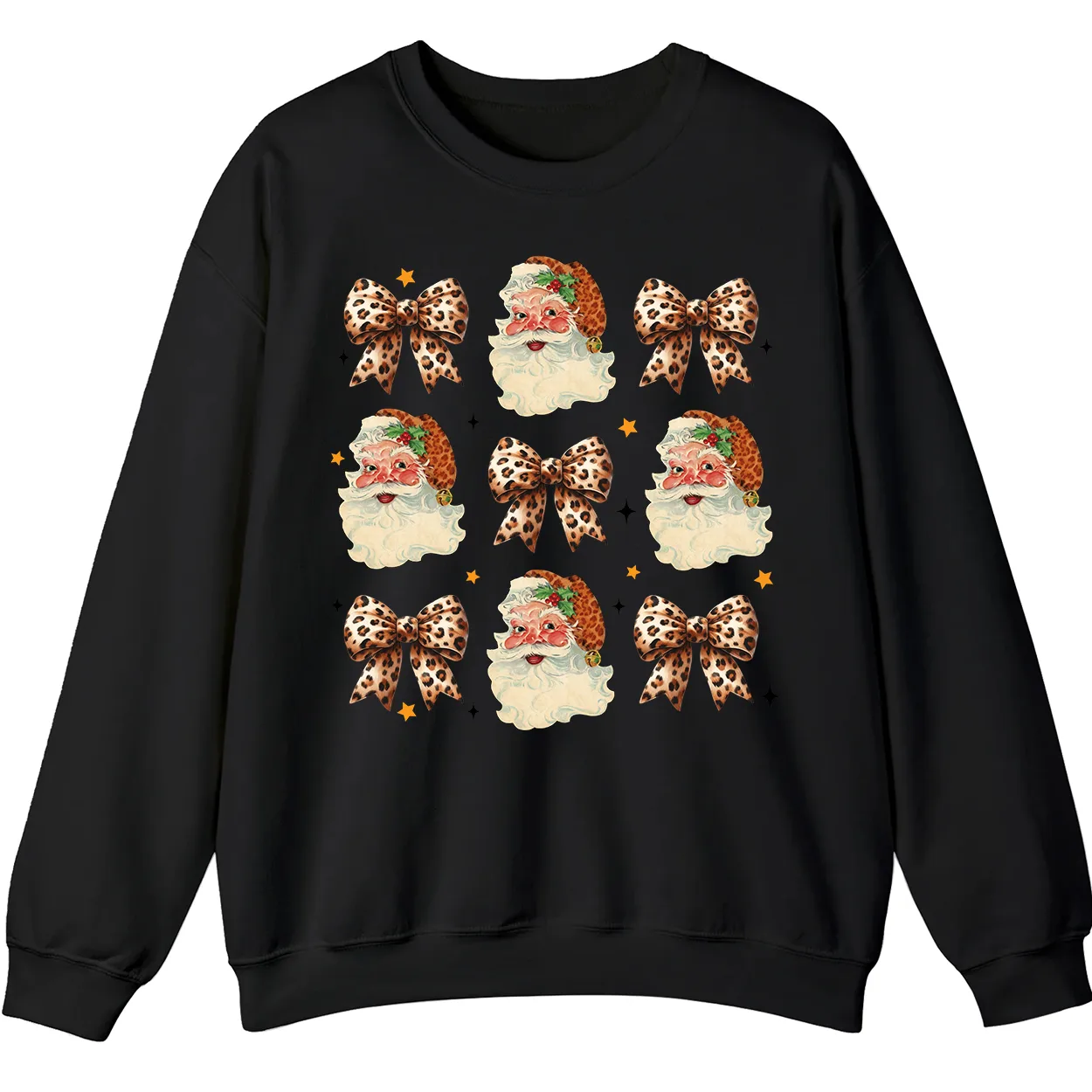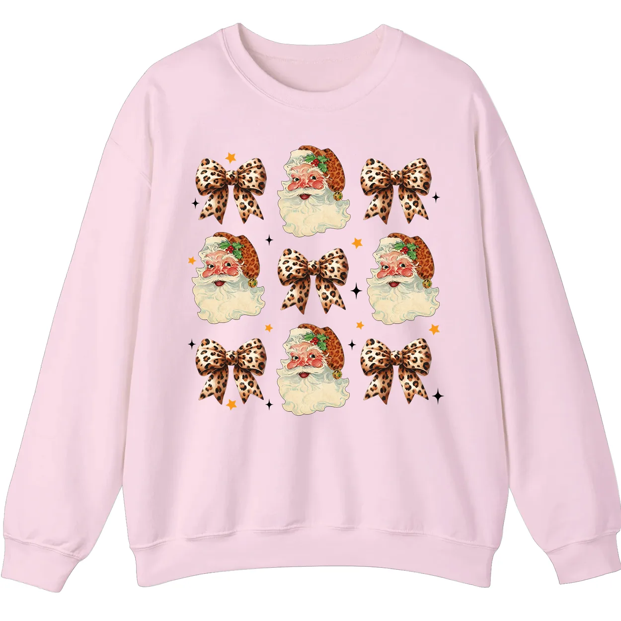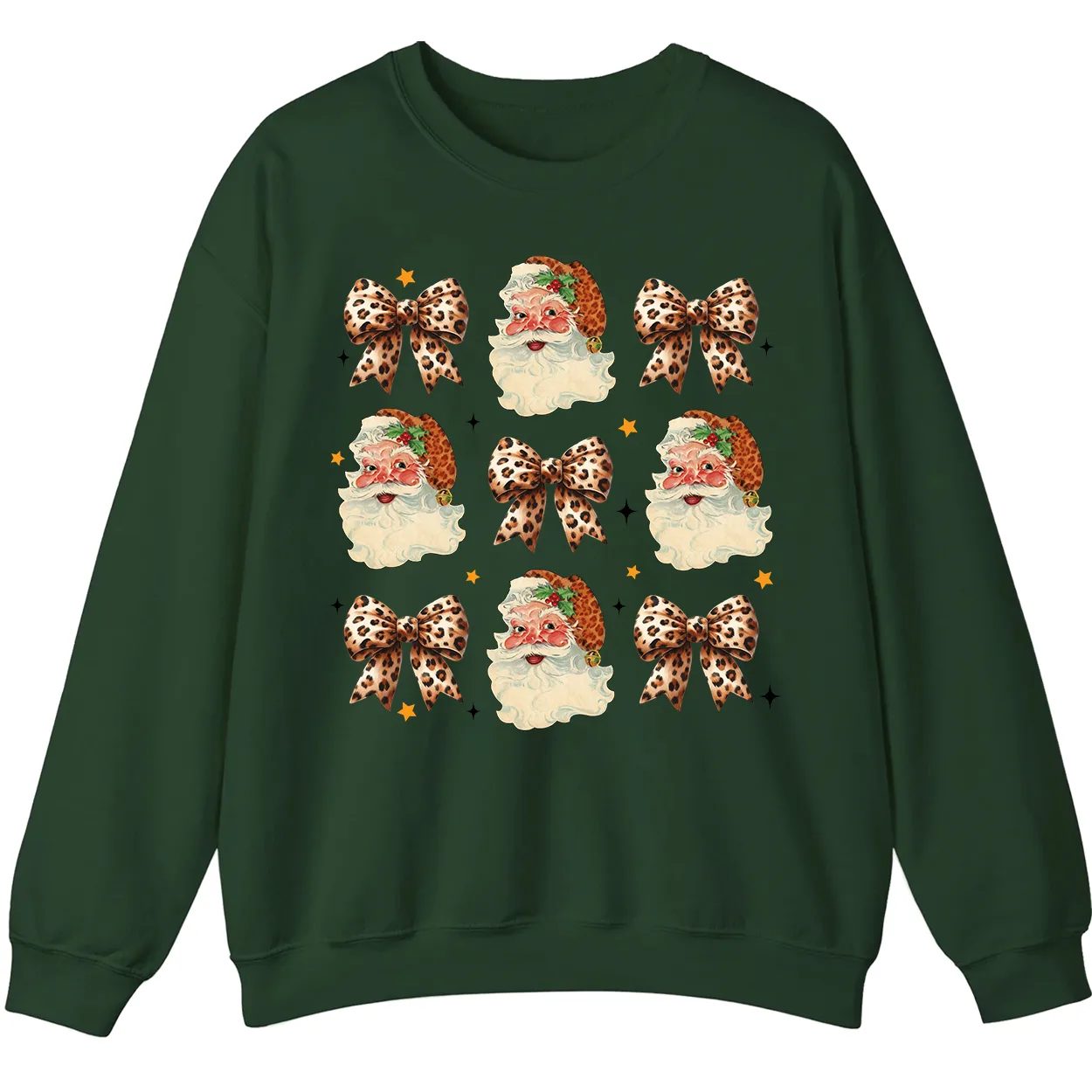 Leopard Print Bows & Santa Christmas Sweatshirt