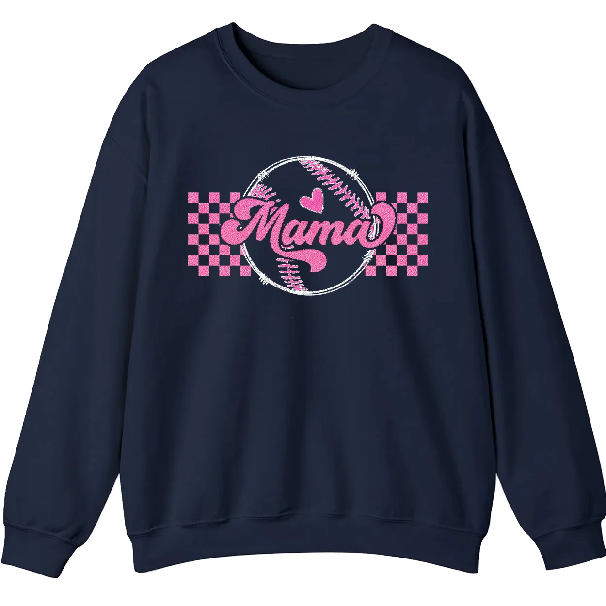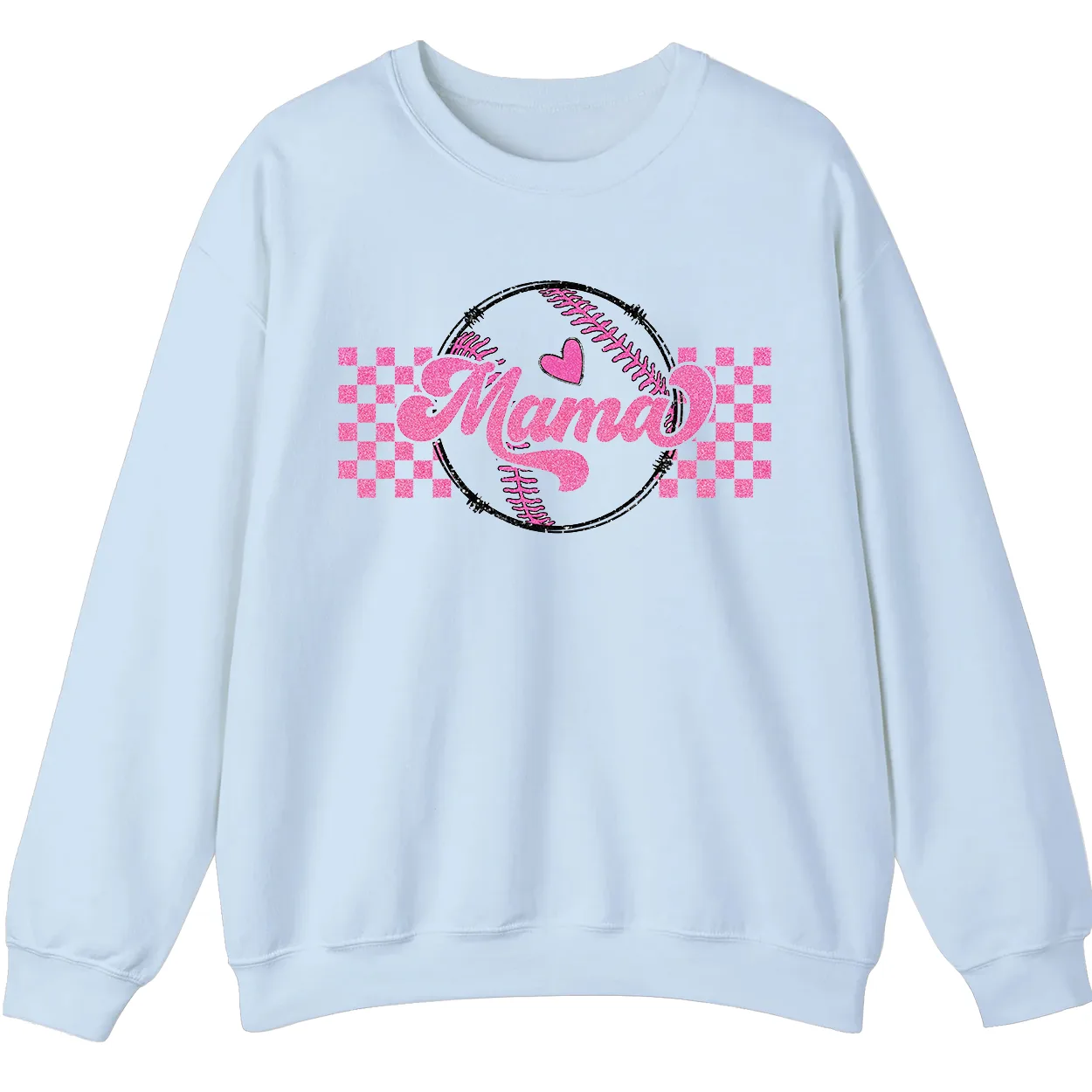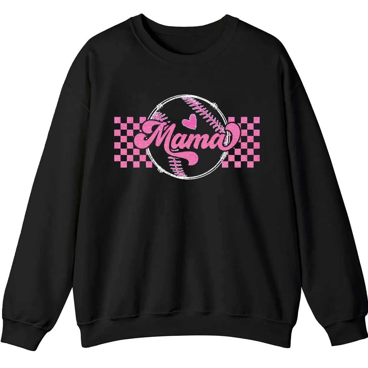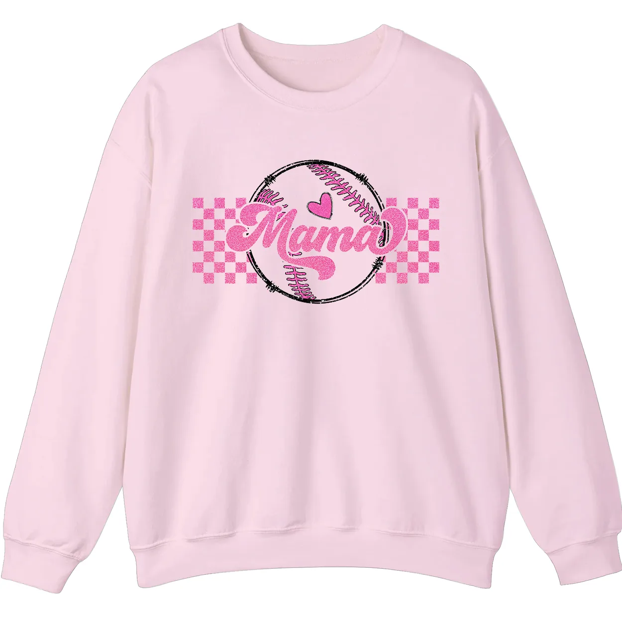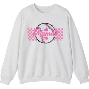 Mama Pink Glitter Softball Sweatshirt, Checkered Game Day Crewneck, Baseball Mom Pullover, Cute Sports Mom Gift