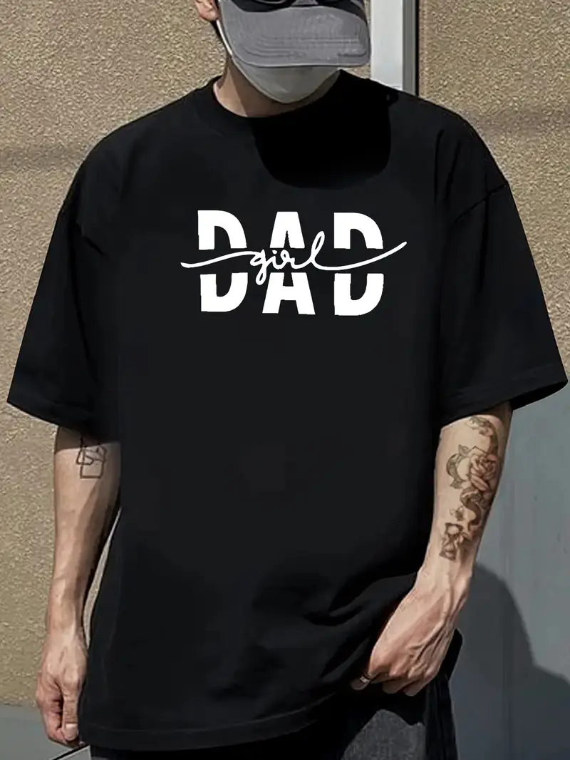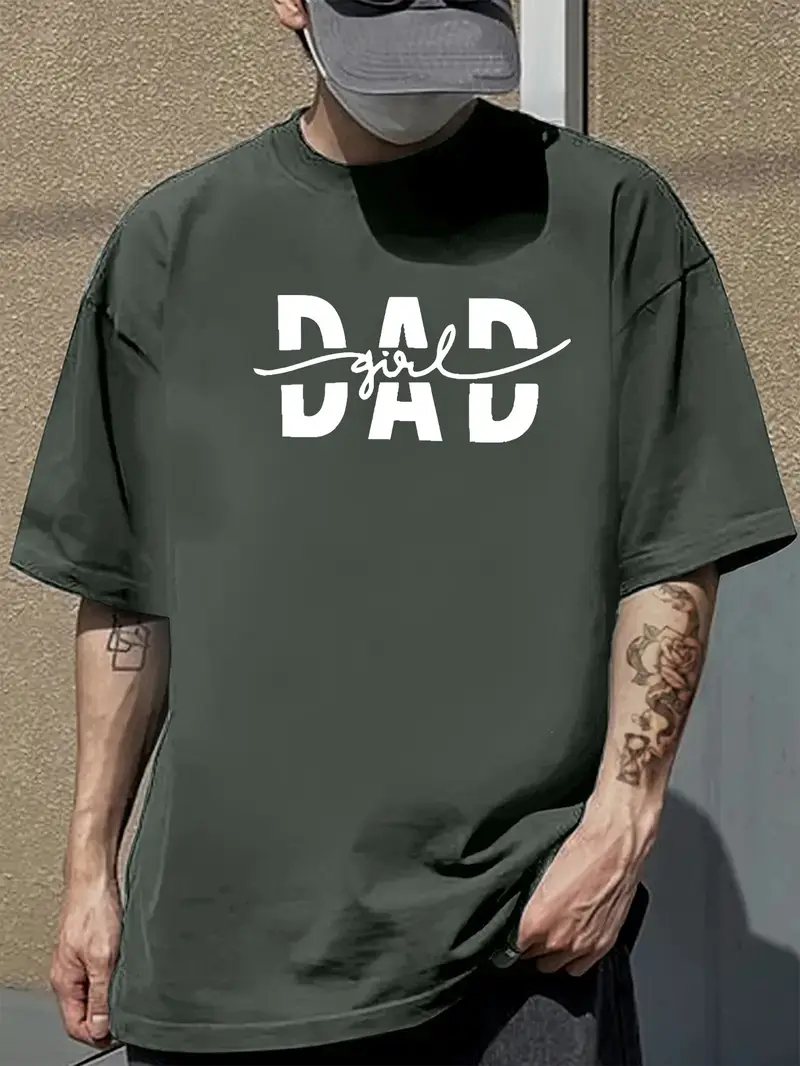 Men’s Casual Short Sleeve T-Shirt, DAD Graphic Print, Summer Streetwear & Everyday Essential, Machine Washable, Everyday Casual