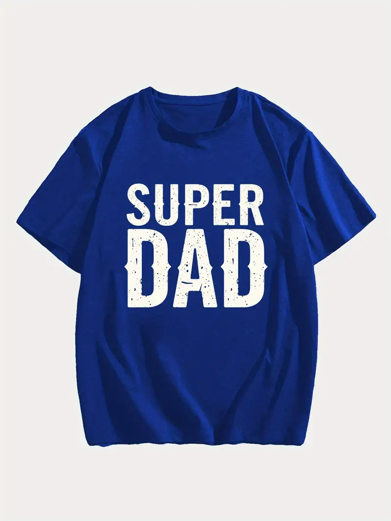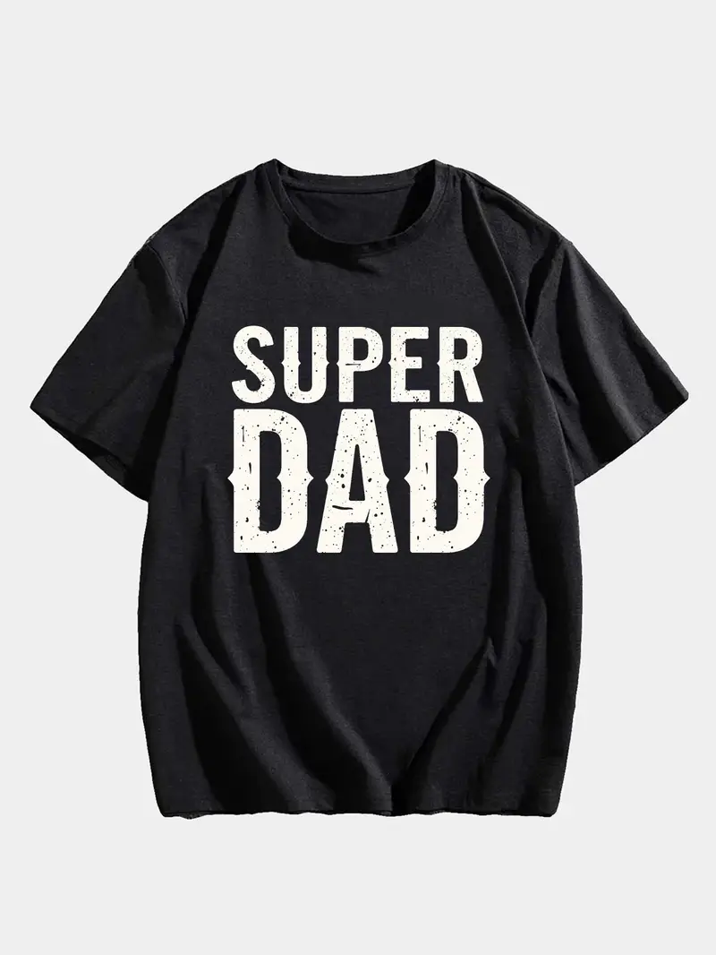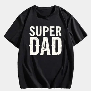 Men’s SUPER DAD Graphic Tee – Casual Black Short Sleeve T-Shirt with White Text, Perfect for Summer, Everyday T-Shirt