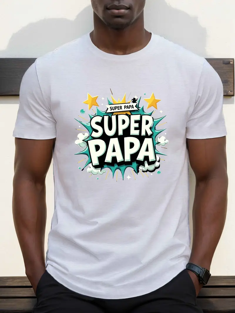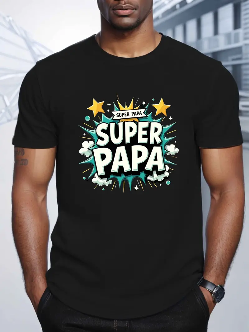 Men’s Super Papa Graphic T-Shirt – Casual Summer Short Sleeve Tee with Bold Colorful Print, Fathers Day