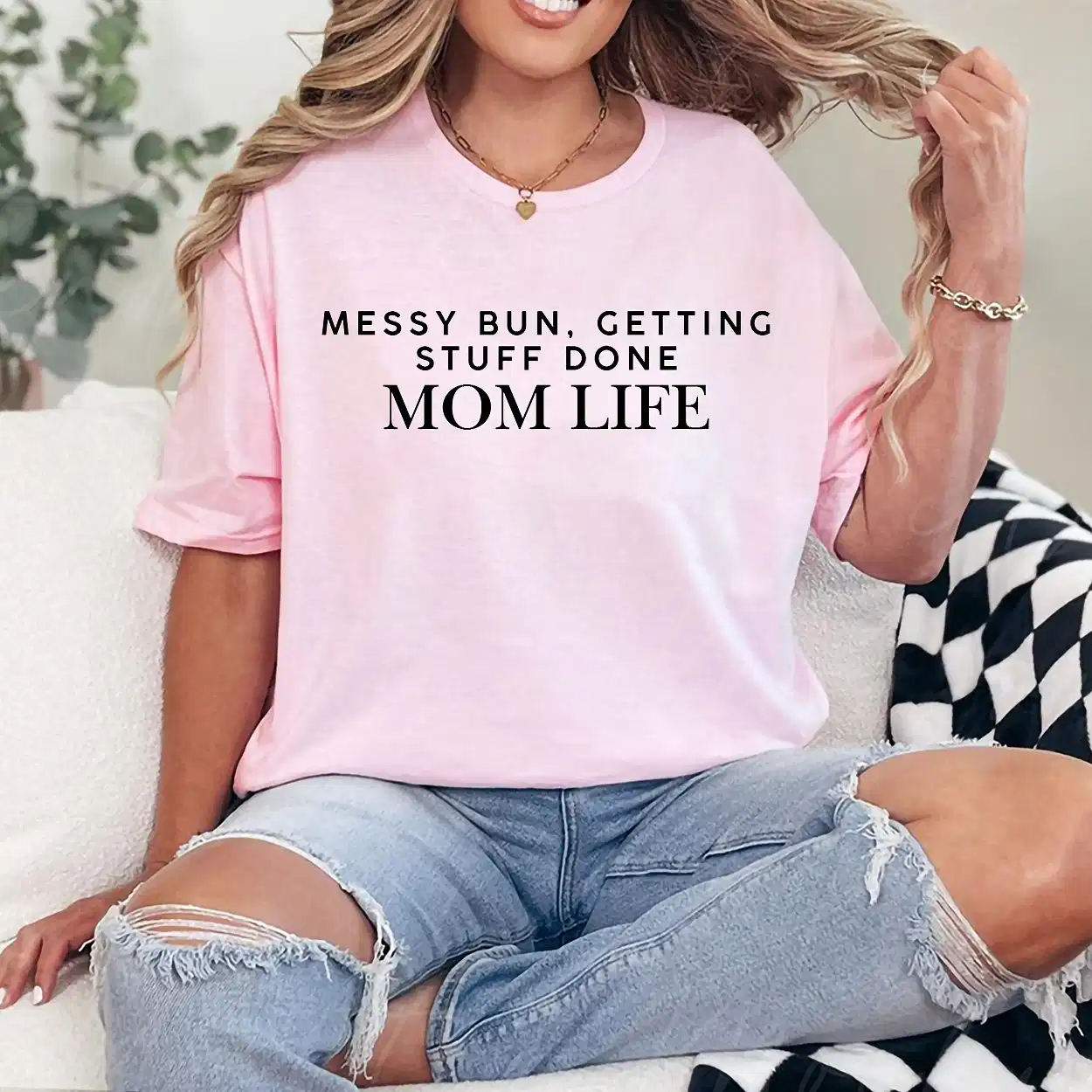 Messy Bun Getting Stuff Done Mom Life Shirt – Funny Cute Mom T-Shirt, Mother’s Day Gift for Busy Mama, Casual Tee for Moms