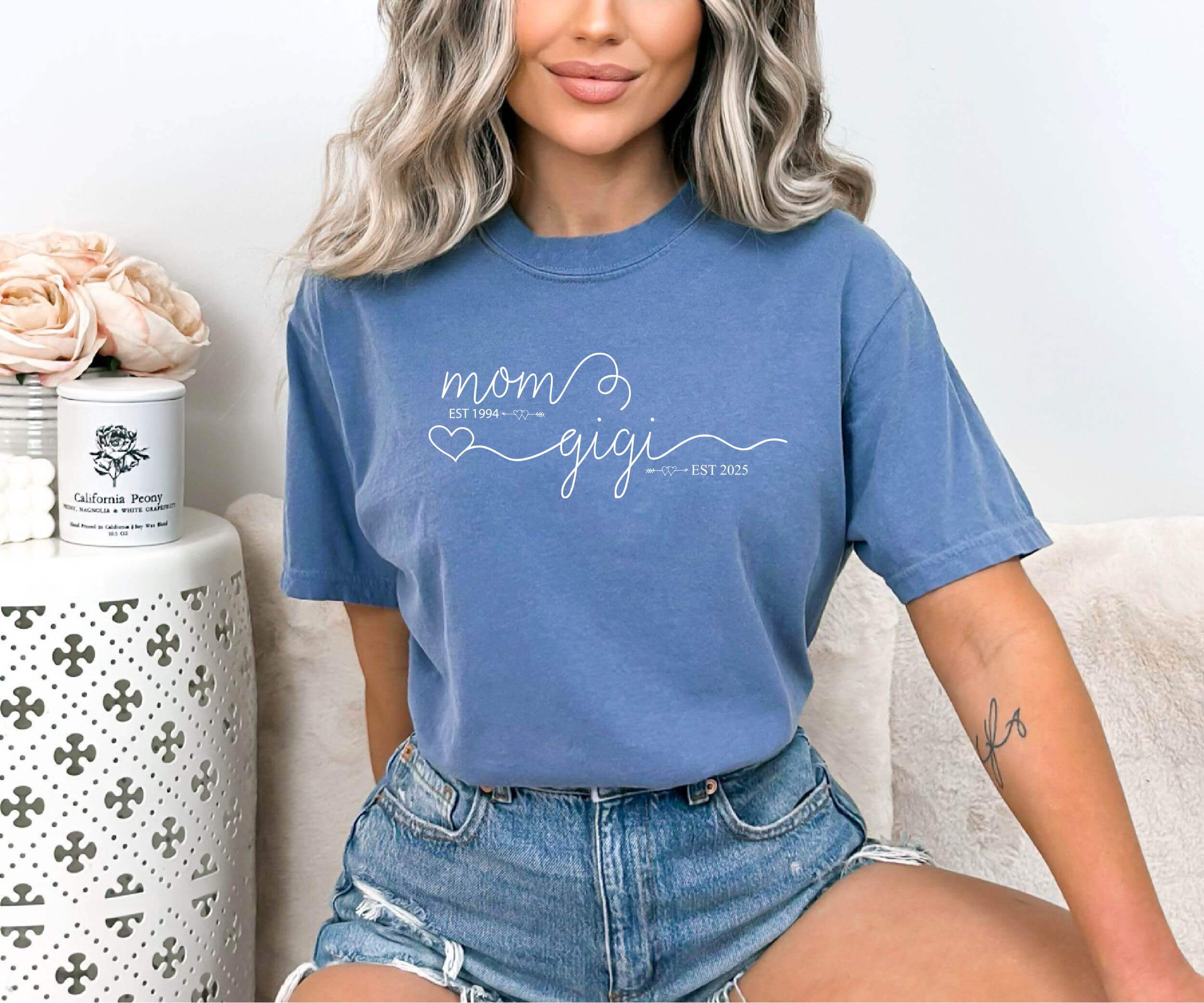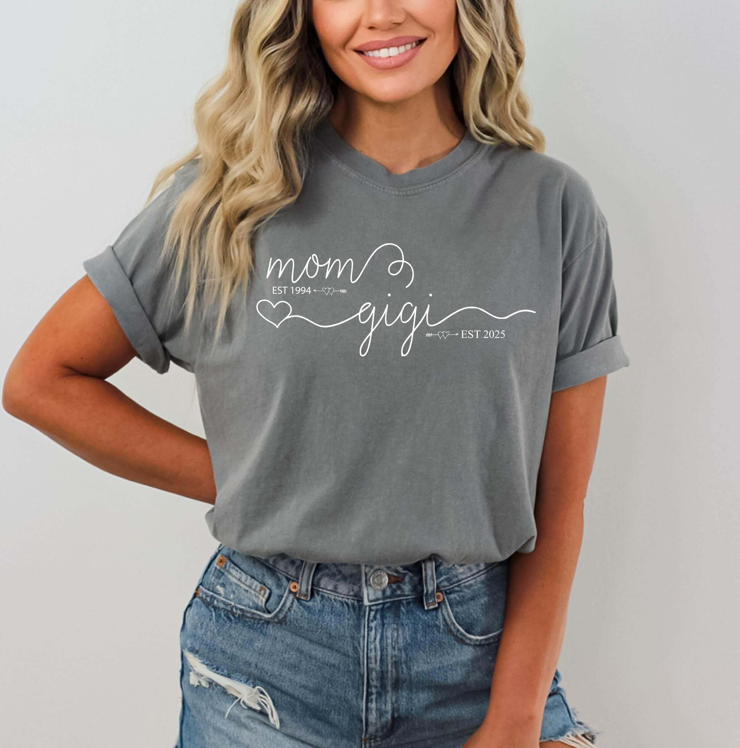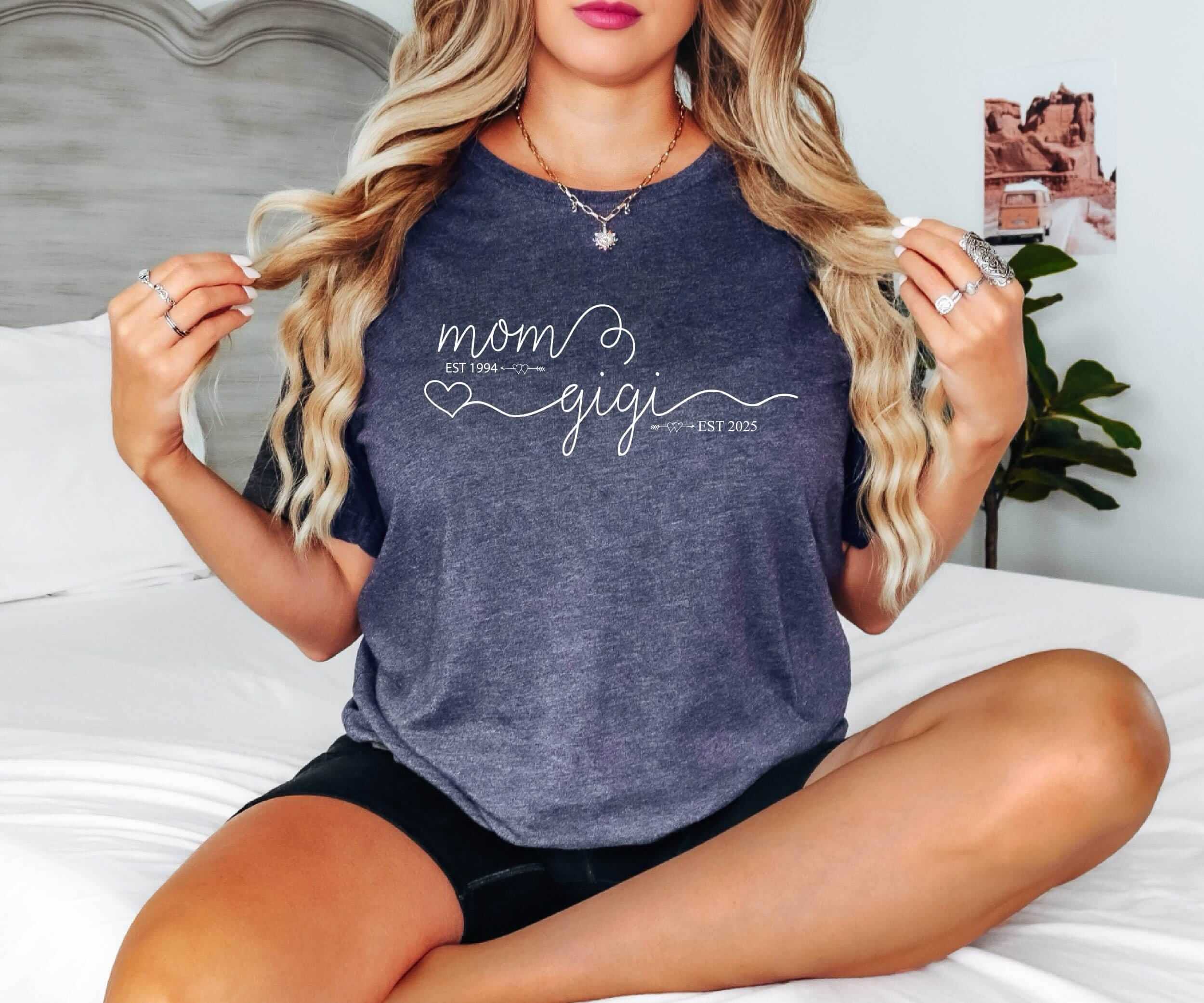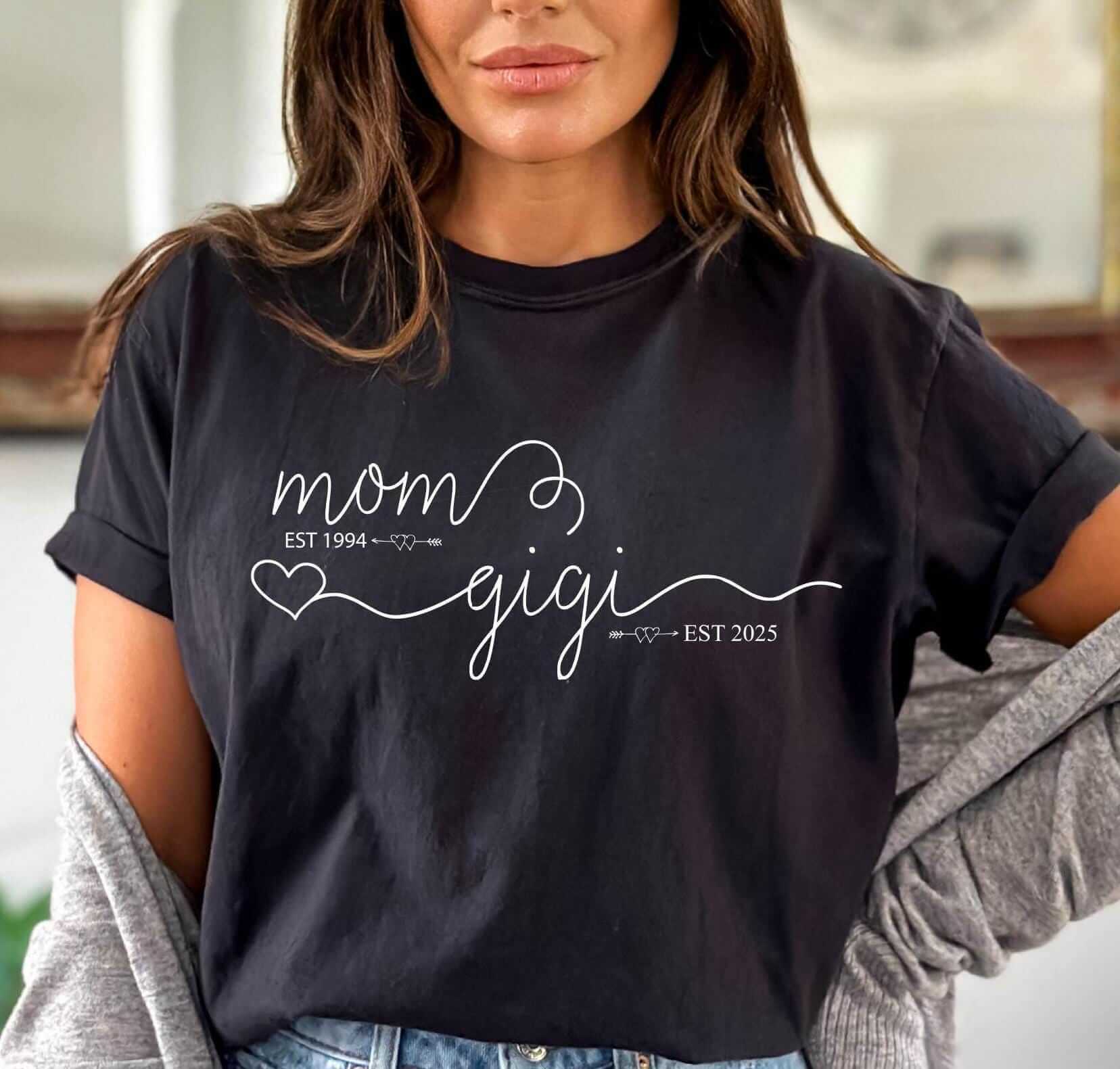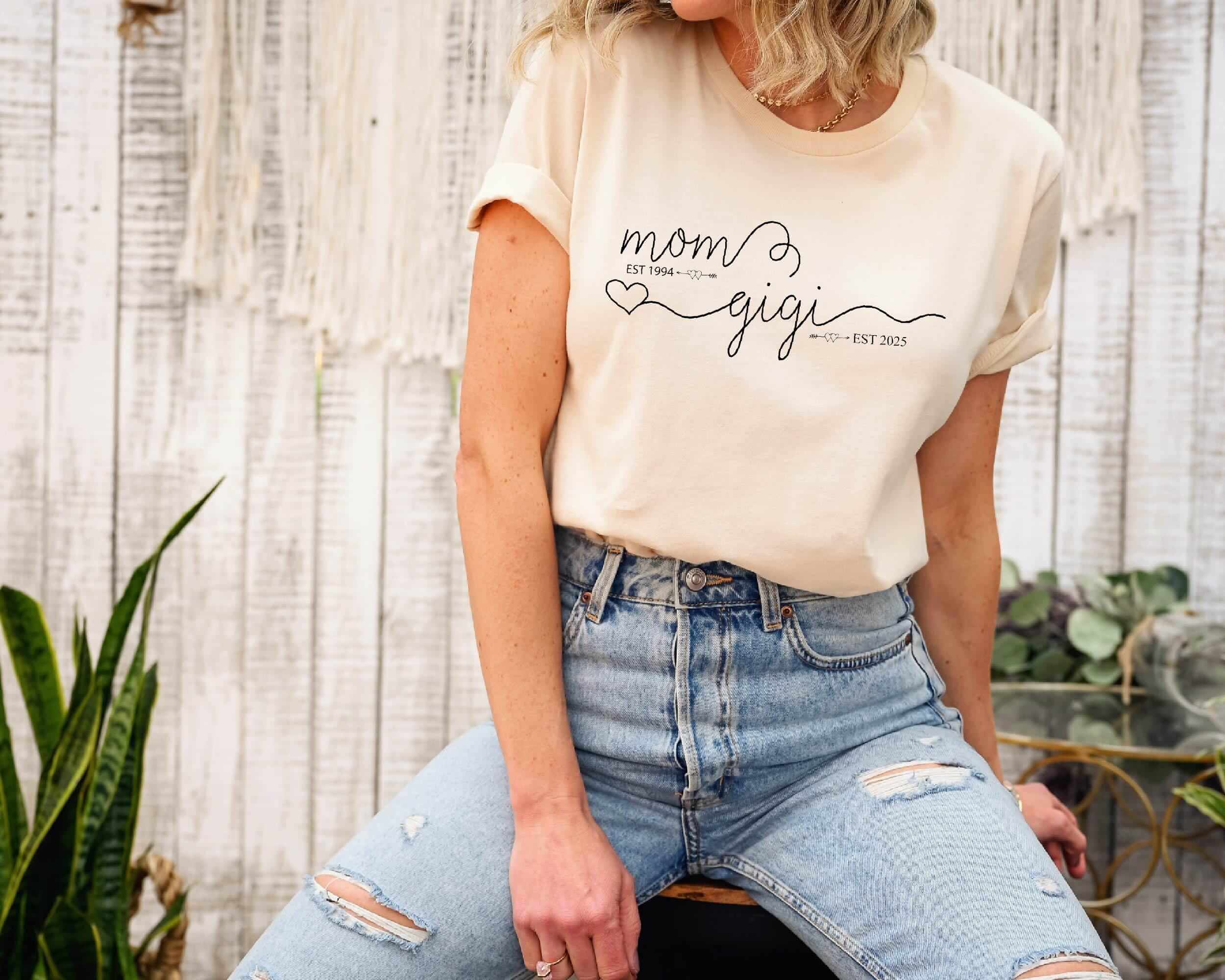Mom Est Gigi Est Custom Shirt – Pregnancy Announcement Gift – Gigi T-Shirt – New Grandma Shirt – Pregnancy Reveal Gift for Mother’s Day