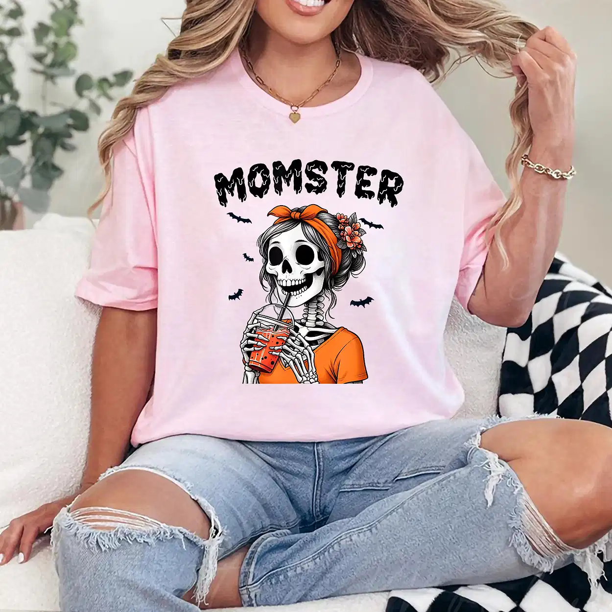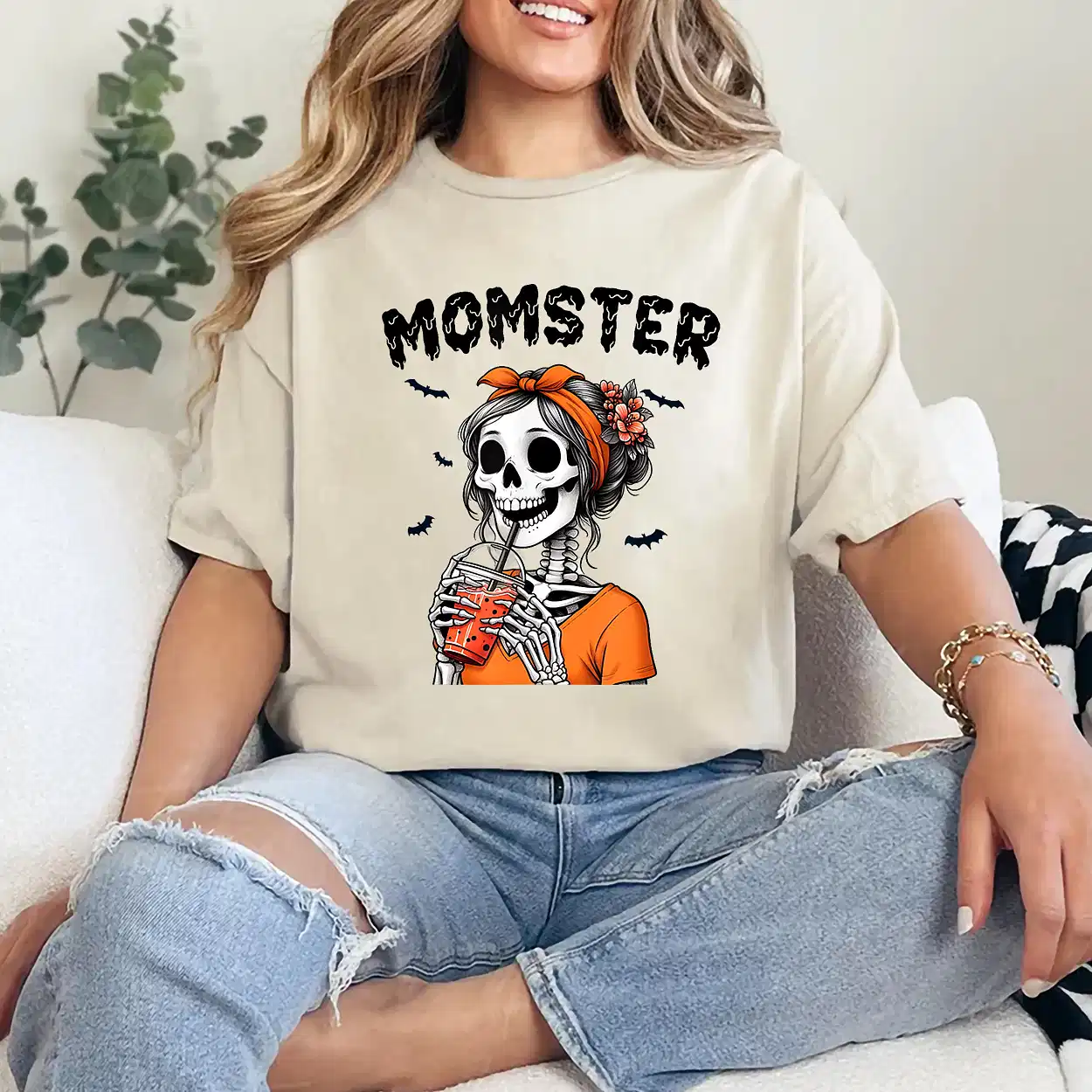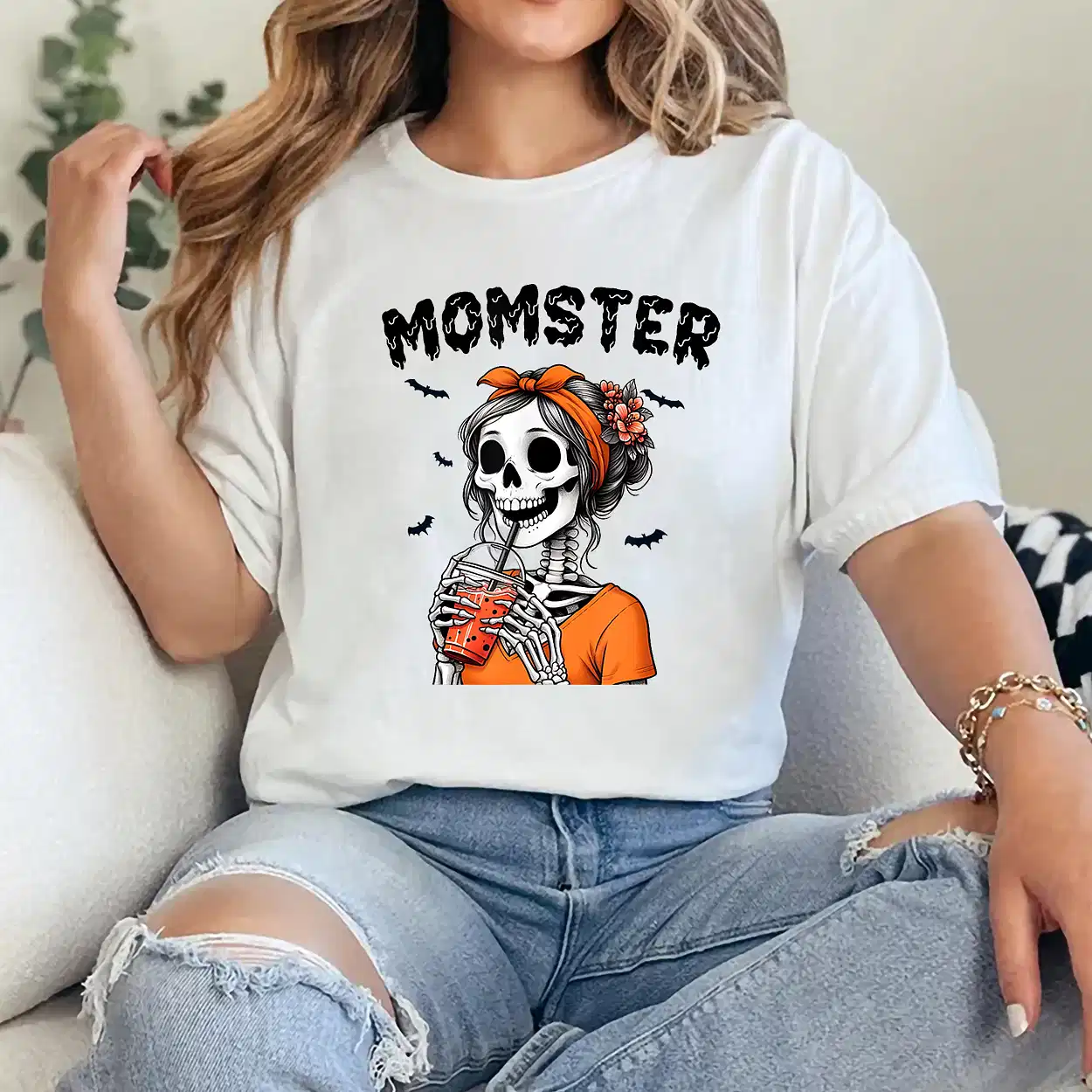 Momster Skeleton Woman Coffee Funny Halloween Mom Mama T-Shirt – Unisex, Gift for Halloween Day, Gift for Mama