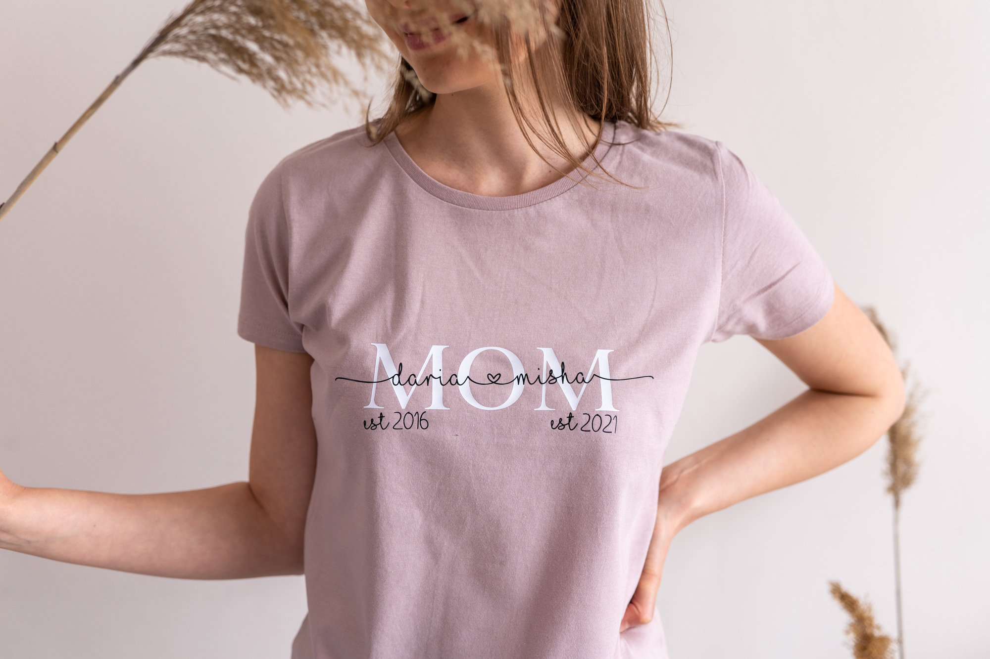 Personalised MOM t-shirt, Mama t-shirt with children’s names and year, Mother’s Day Gift