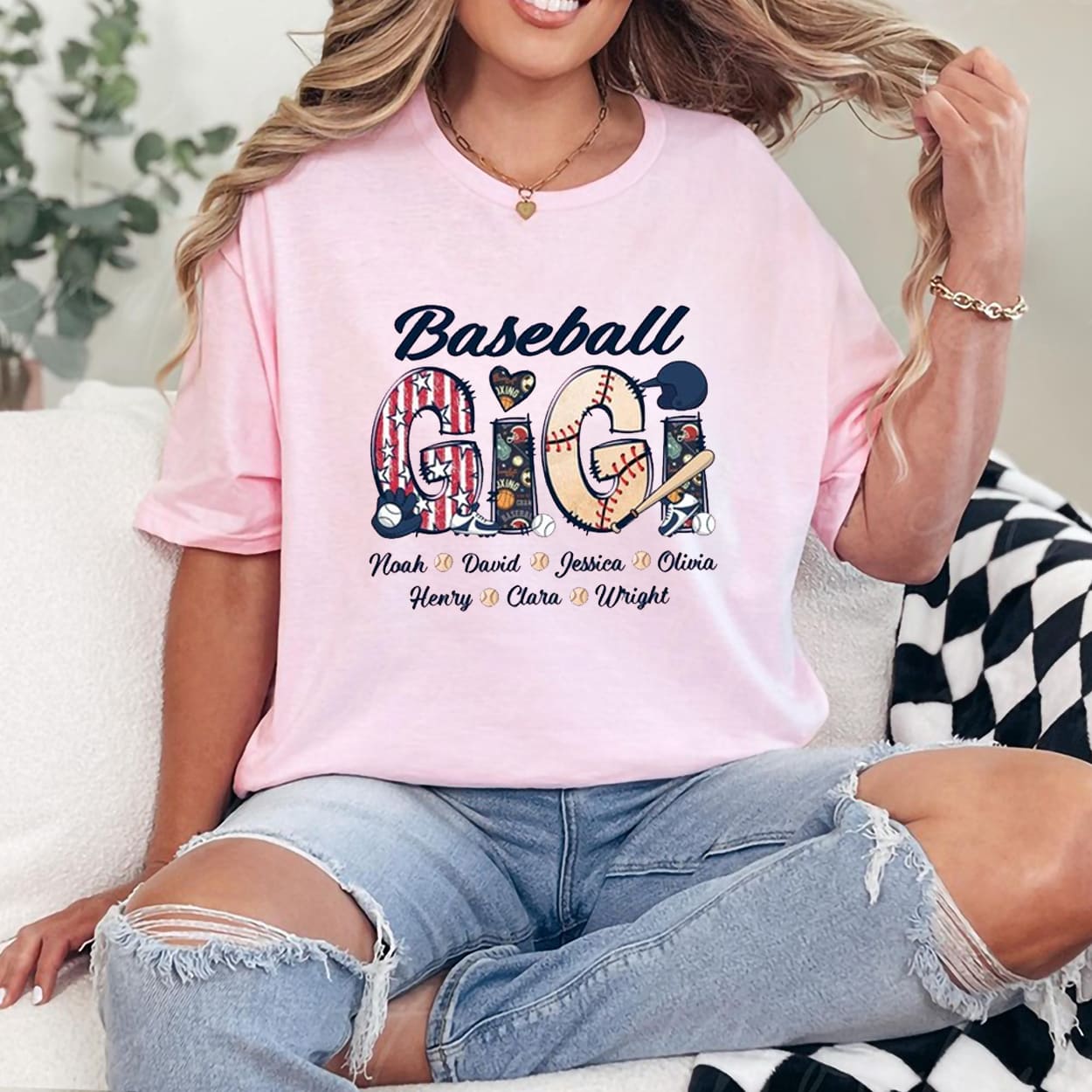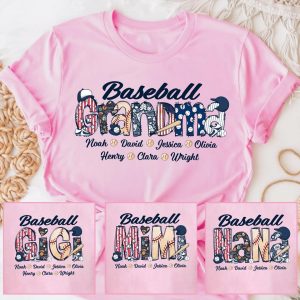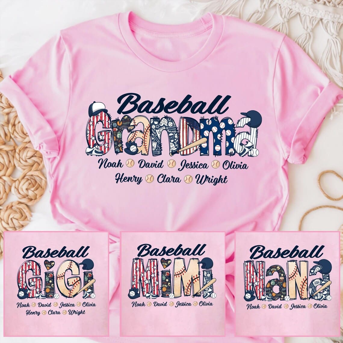 Personalized Baseball Grandma T-Shirt, Custom Baseball Mom with Kid’s Name Shirt, Baseball Mimi Nana Tee – The Best Mothers Day Gift