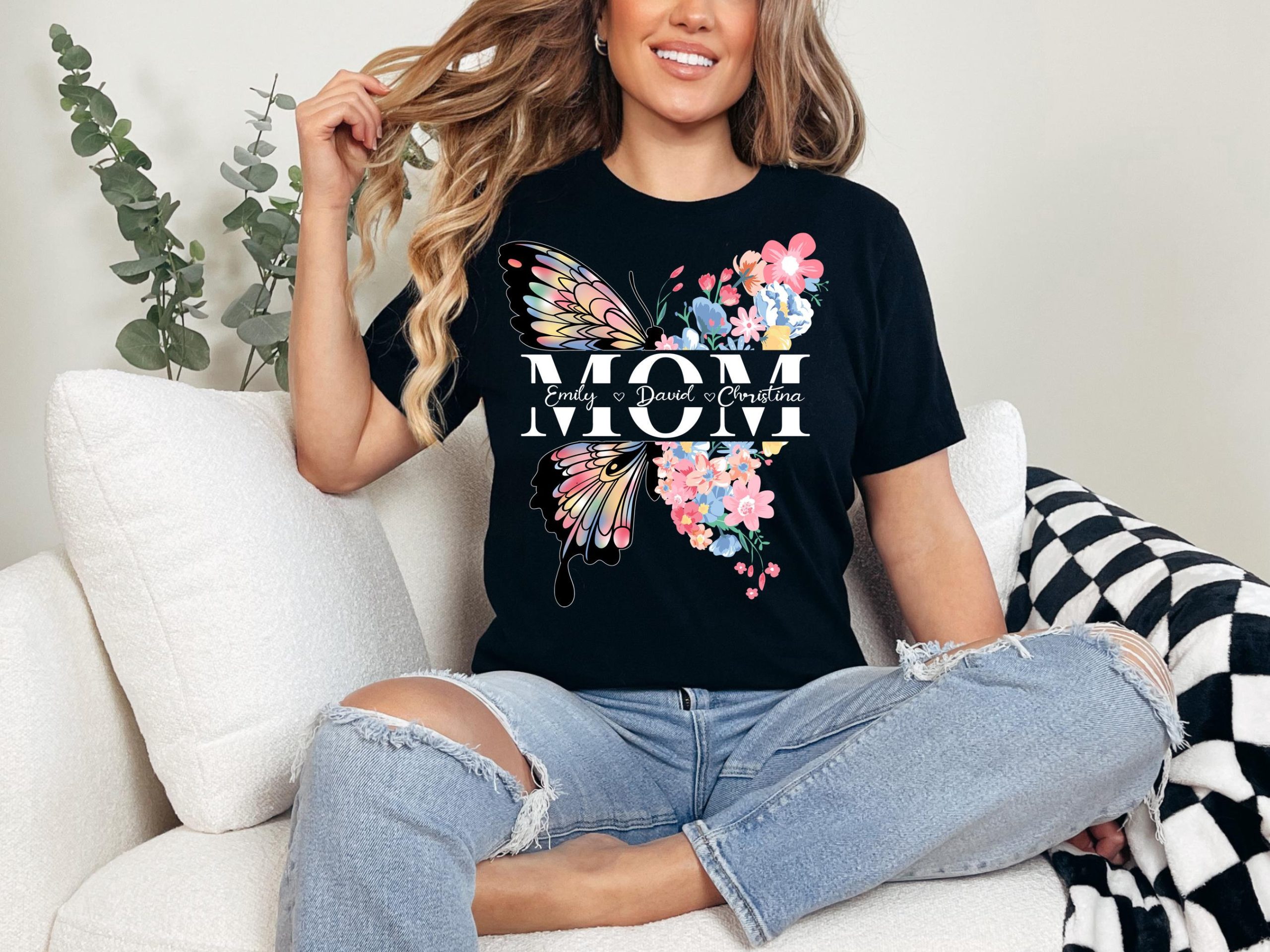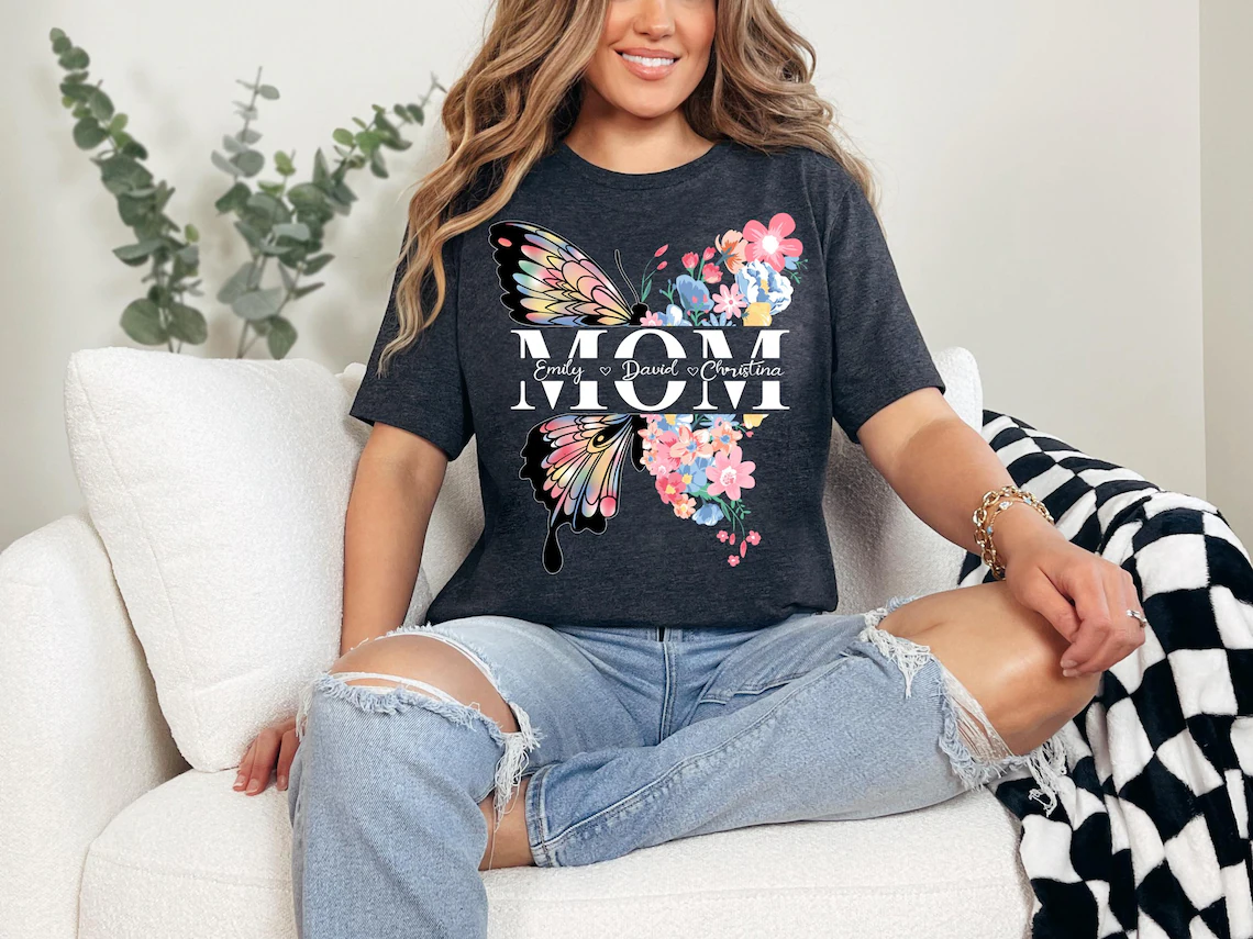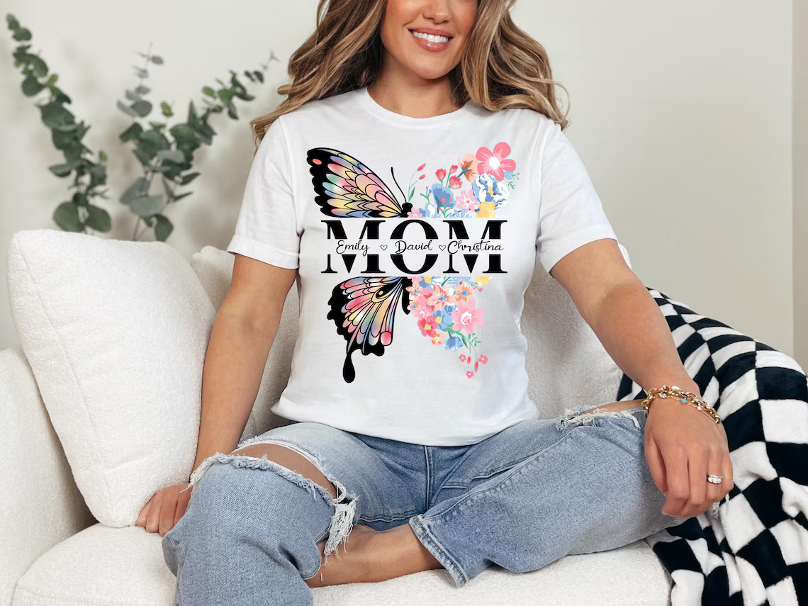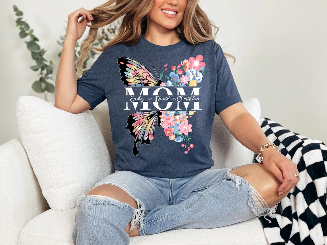 Personalized Butterfly Mom Shirt, Floral Mama Tee, Mothers Day T-shirt, Mama Shirt