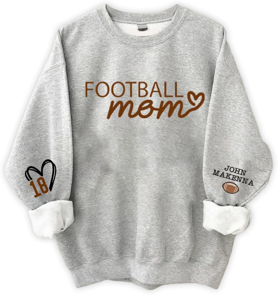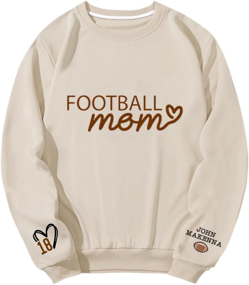 Personalized Football Mom Sweatshirt, Football Mama, Custom Name and Number On Sleeve