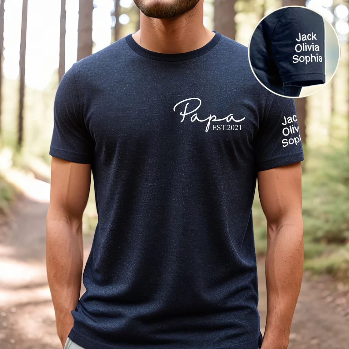 Personalized Papa Navy T-Shirt, Custom Father’s Day Shirt With Kids Names, Funny Gift For Husband, Gift For Dad